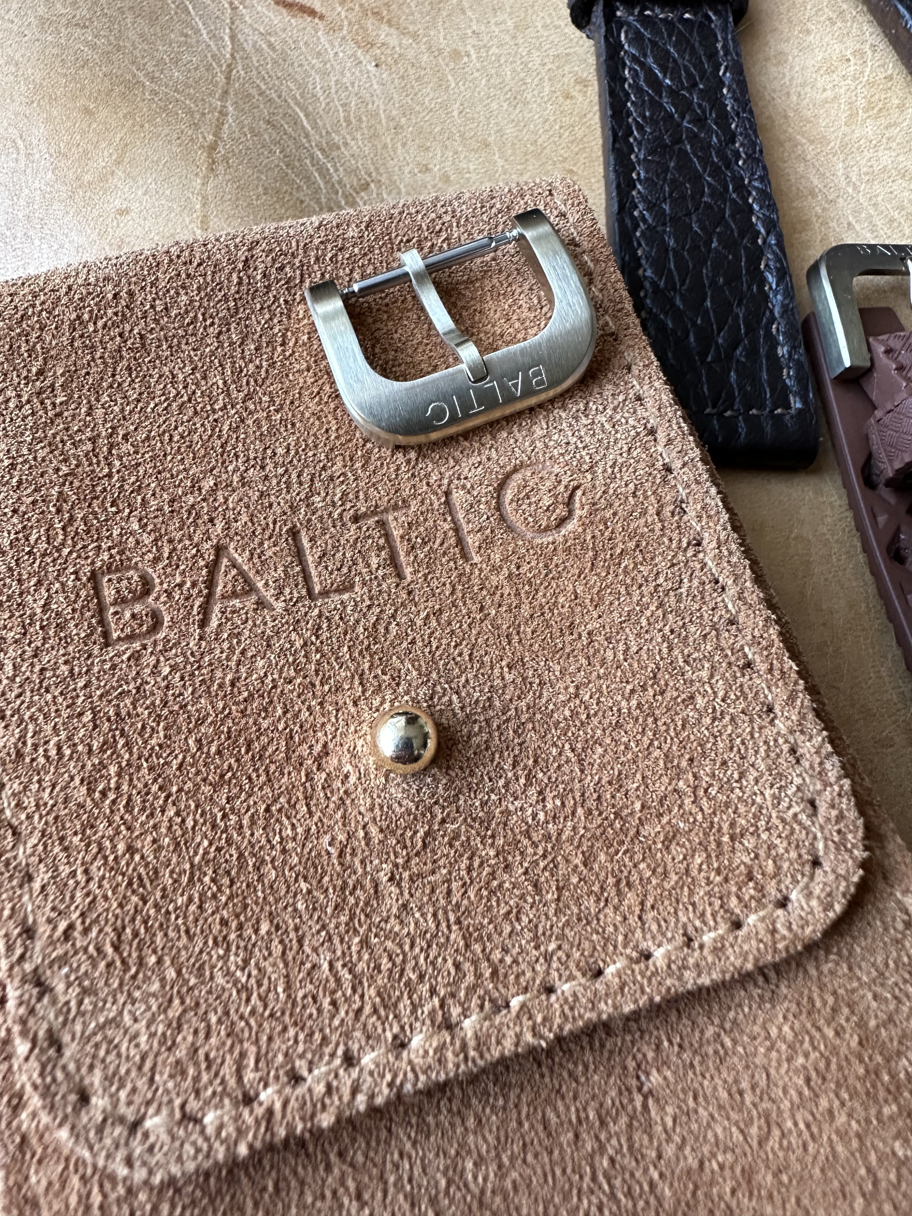They replied almost immediately and advised that they were sending me a new and improved buckle, free of charge. It arrived from France in four days. Plus, they included a suede travel pouch. Thank you Baltic and also thanks to several members of this Forum who introduced me to Baltic. Notably @Larry S @Spruce and the (or one of the) very first photos of a bronze Baltic on OF courtesy of @dougiedude So… forget about the jerk who cut you off today and cherish the nice gestures.