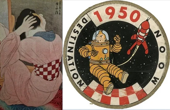 It might have been that Belgian comic books artist Hergé (1907-1983) was inspired by a 1921 artwork by Japanese Ito Shunshi (1898-1972) for his 1950 Tintin " Explorers On The Moon comic books ?
