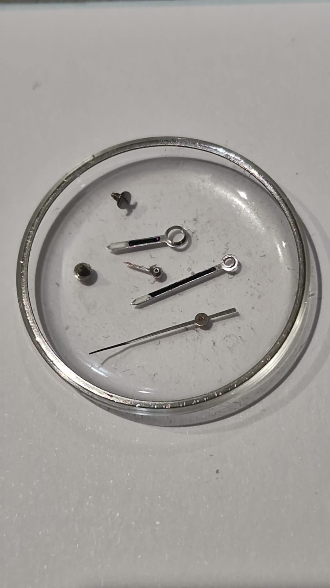 The glass was a casualty but has been recovered, and the only actually lost items are a couple of the needle dials and metal time indicators that have come off the actual watch face.