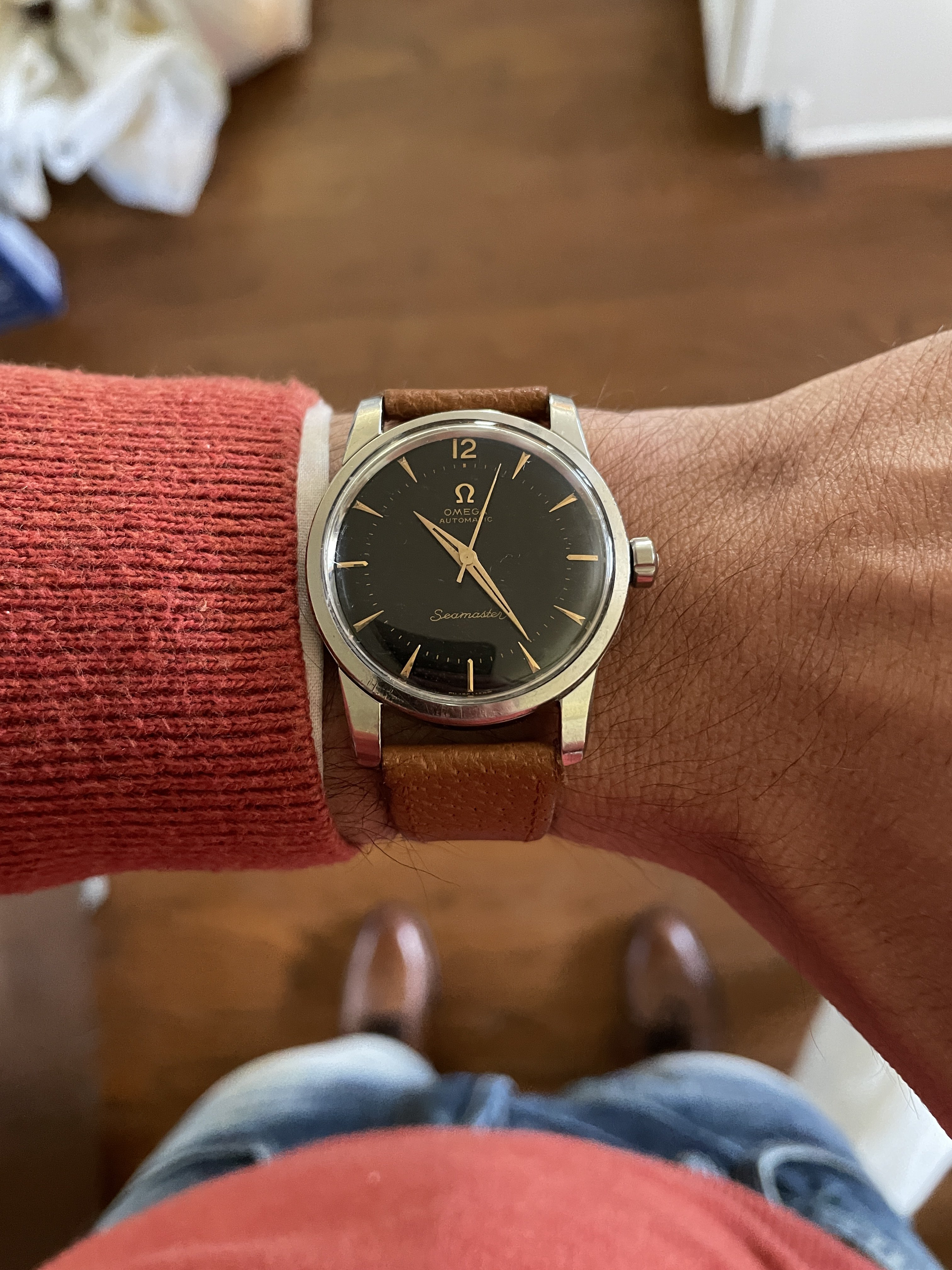 CASE: The stainless steel 34mm case is very strong. The original bevels on all four lugs can still be appreciated. The case sports a snap back caseback and original omega crown. The case presents with minimal to moderate wear depending on the location commensurate with its age. The crystal is unsigned.