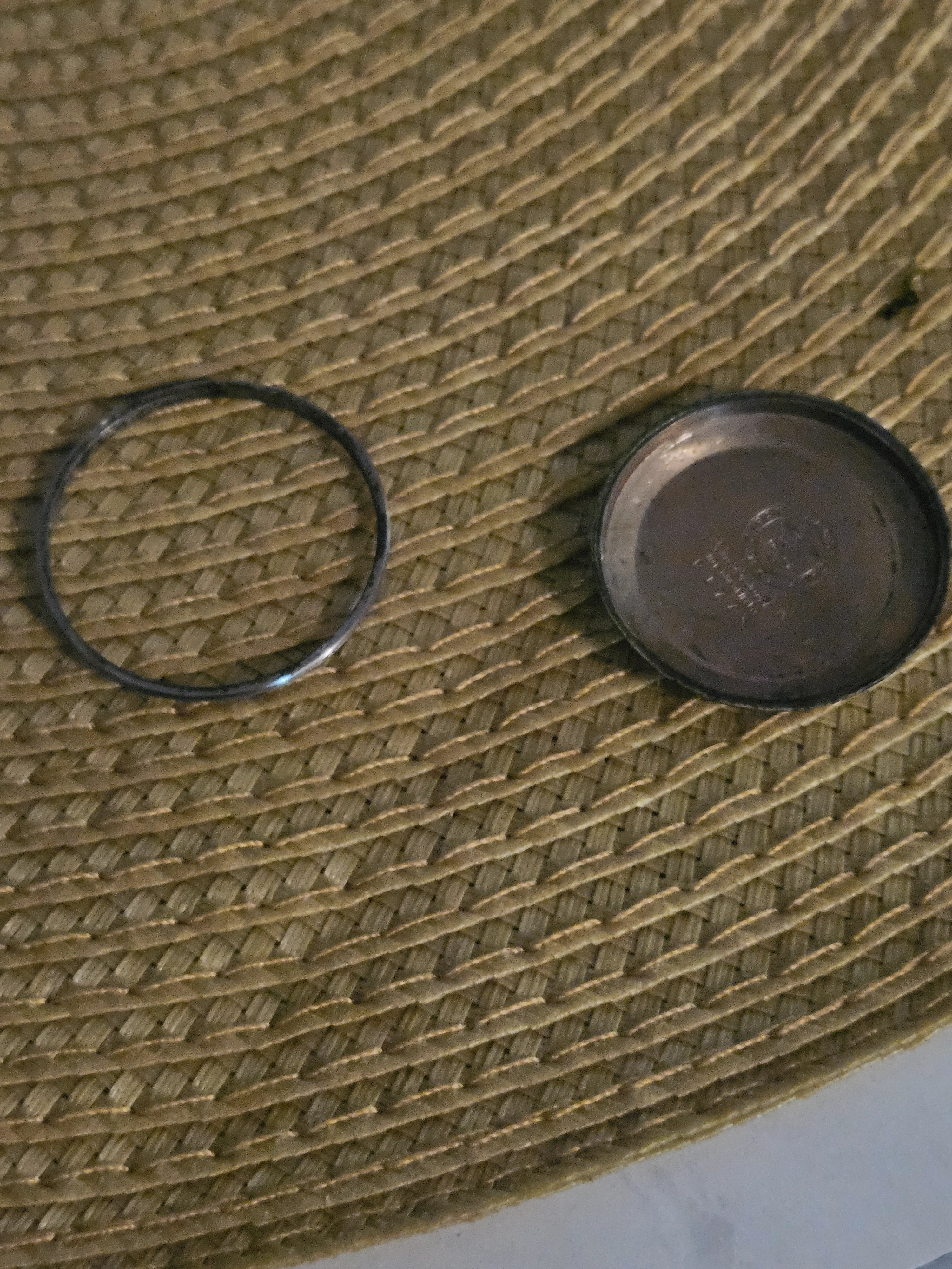 ·Bought this watch at an auction..Pretty cheap and runs, but certainly needs service.However, the metal O ring in the back which screws and holds the case is pretty damaged and tends to fall out.I don't know if this can be fixed or if I have to find a new one.And I don't even know if that's possible with such an old watch.I'll take it to my watchmaker, but any suggestions would be helpful.I looked on ebay and was not able to find something compatible. By the way, a definite redial, as I am sure you have all noted, but I think this redial was probably done decades ago..you can tell by the lettering.It's not crisp like you see with a truly original dial.But I think the rest of the watch is probably authentic