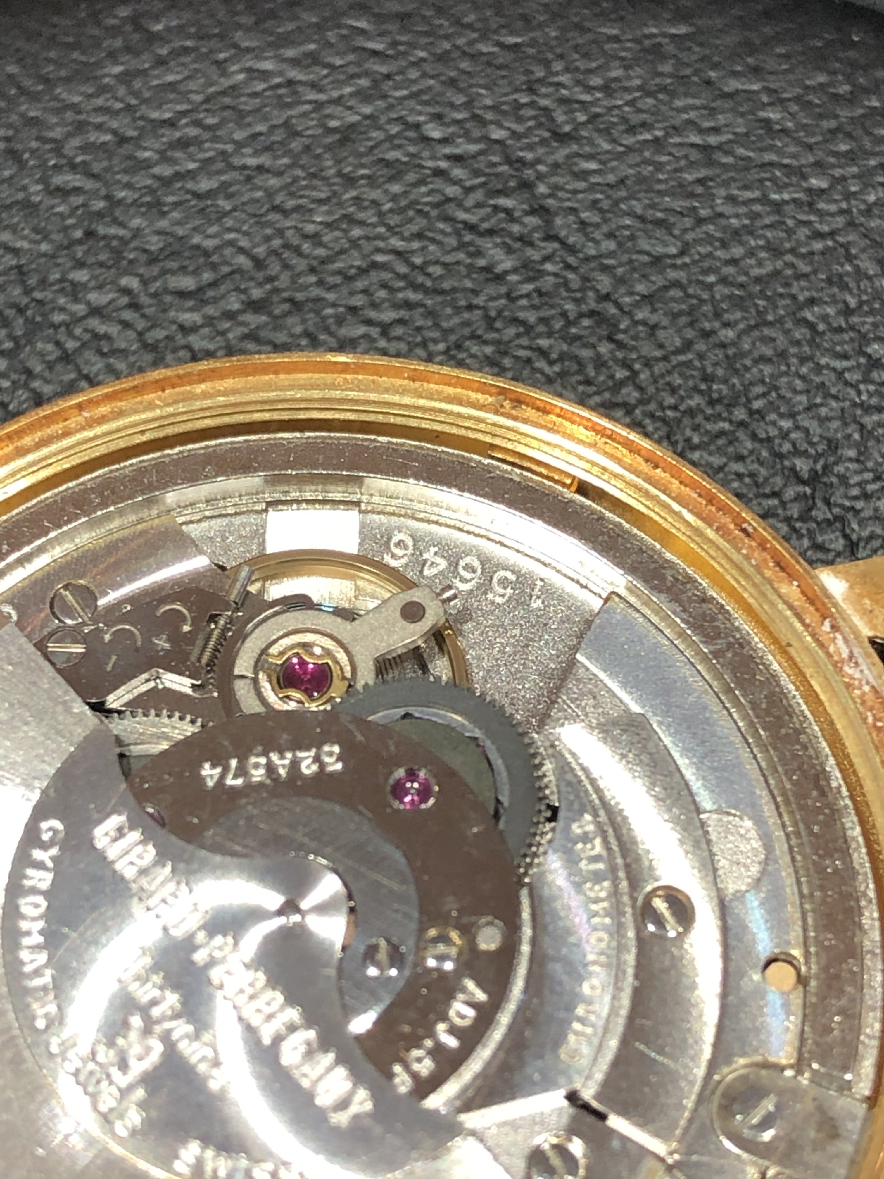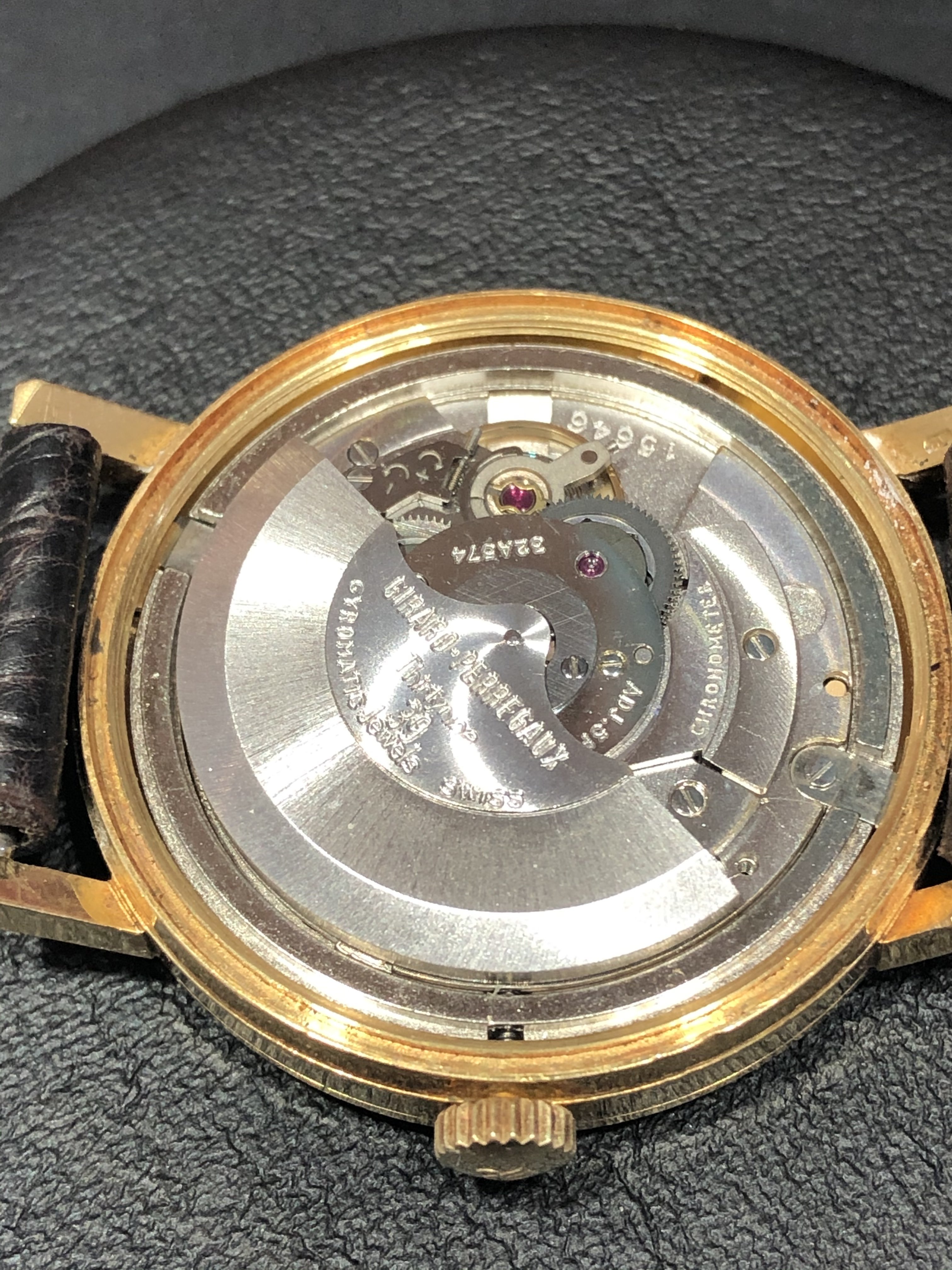 This all changed in 1966-67 when Girard-Perregaux submitted an entire production run (662) of a new caliber, the high frequency 32A, for the Neuchatel Observatory for testing. This is where the data and research gets a little iffy because the records don't delineate which movements received the B.O. (Bureaux officiels de contrôle de la marche des montres) certification which was a less stringent 15 day test for wrist chronometers versus the ones that went through the 45 day trials to become an Observatory Chronometer.