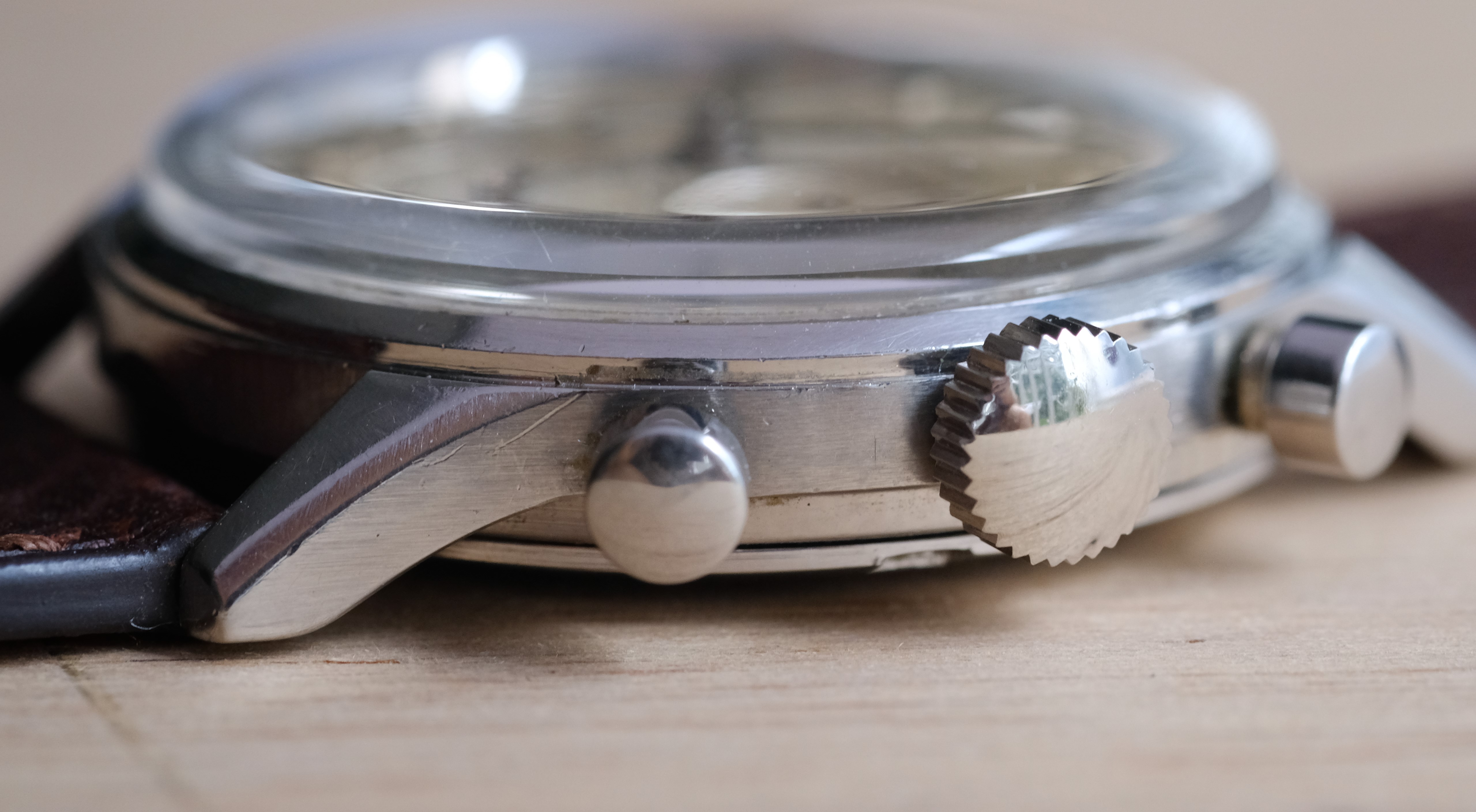 - When I first purchased the watch it came with an pretty ugly chrome crown and cracked crystal. I've had the crown replaced with one from a donor Gallet case I found on eBay and replaced the crystal too