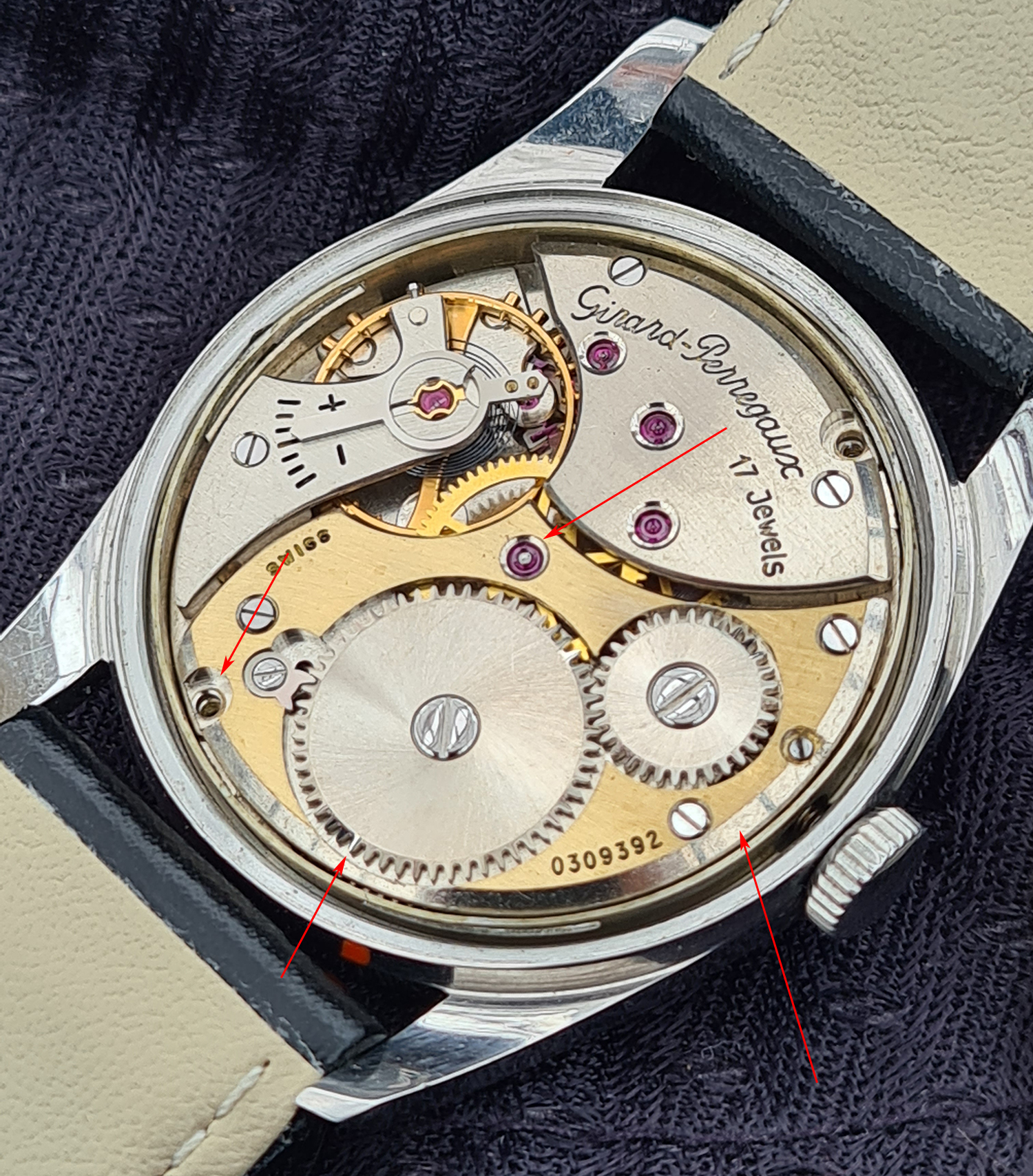 My thought is that the part was from another, similar movement, where the bridge was harshly cleaned. The nickel plating looks damaged, showing the brass underneath.