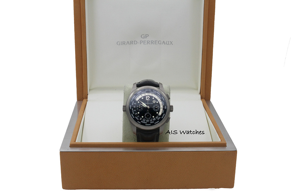 Up for sale is a Girard Perregaux WW.TC Chronograph 49805-11-650-BA6A43MM Titanium - Blue Dial. The timepiece comes without papers and overall is in clean condition.