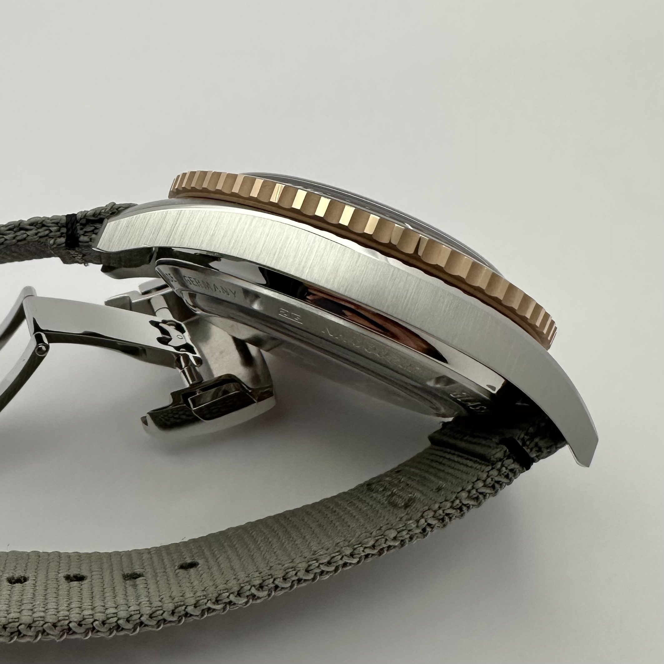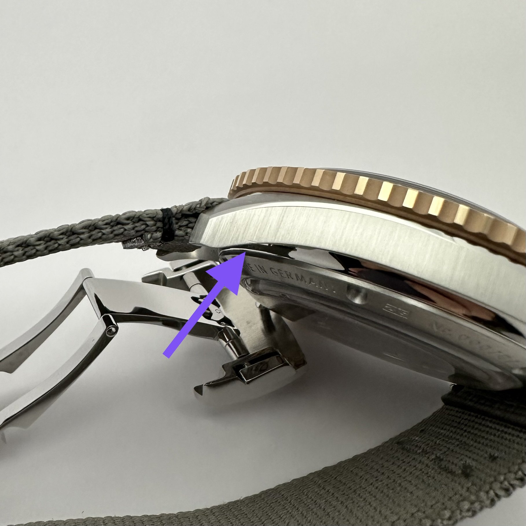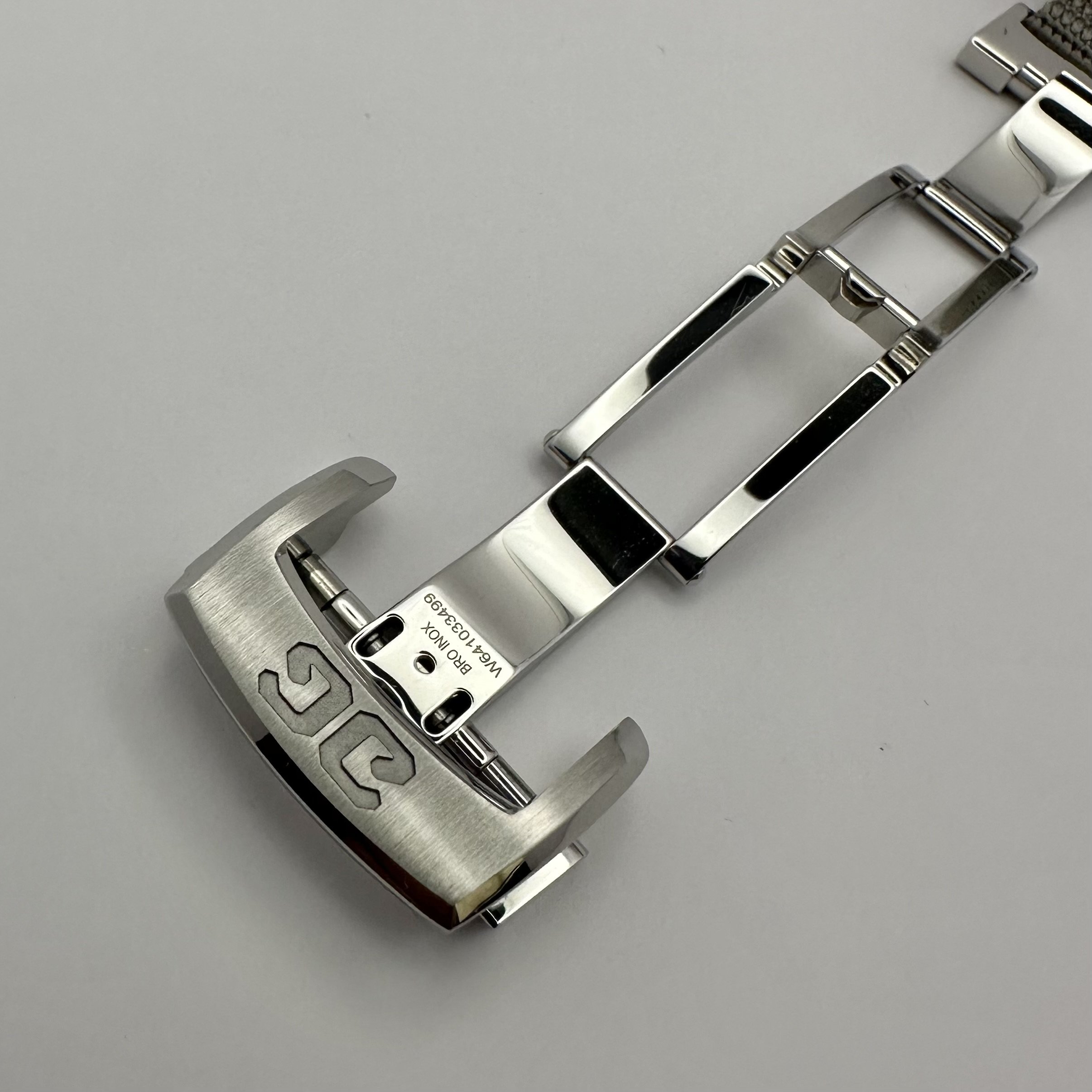Cosmetic Condition: Case has a sand grain sized mark that is only visible at certain angles. Highlighted in pictures. Couple of fine hairlines on the back side lugs from strap changes. No nicks or dents anywhere. Overall condition is excellent!