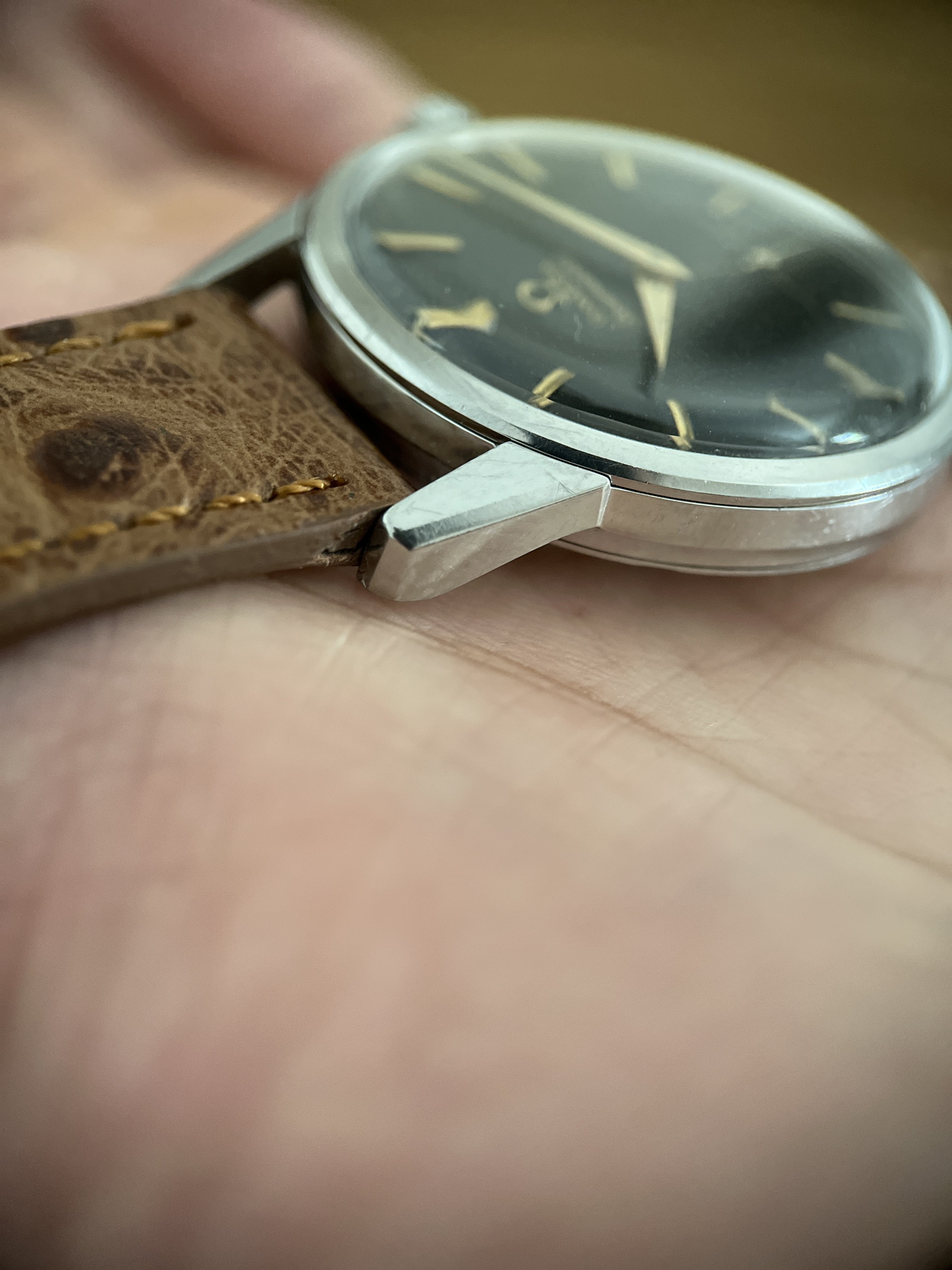 Case: Stainless steel case worn, but in good condition, thick and sharp lugs.
