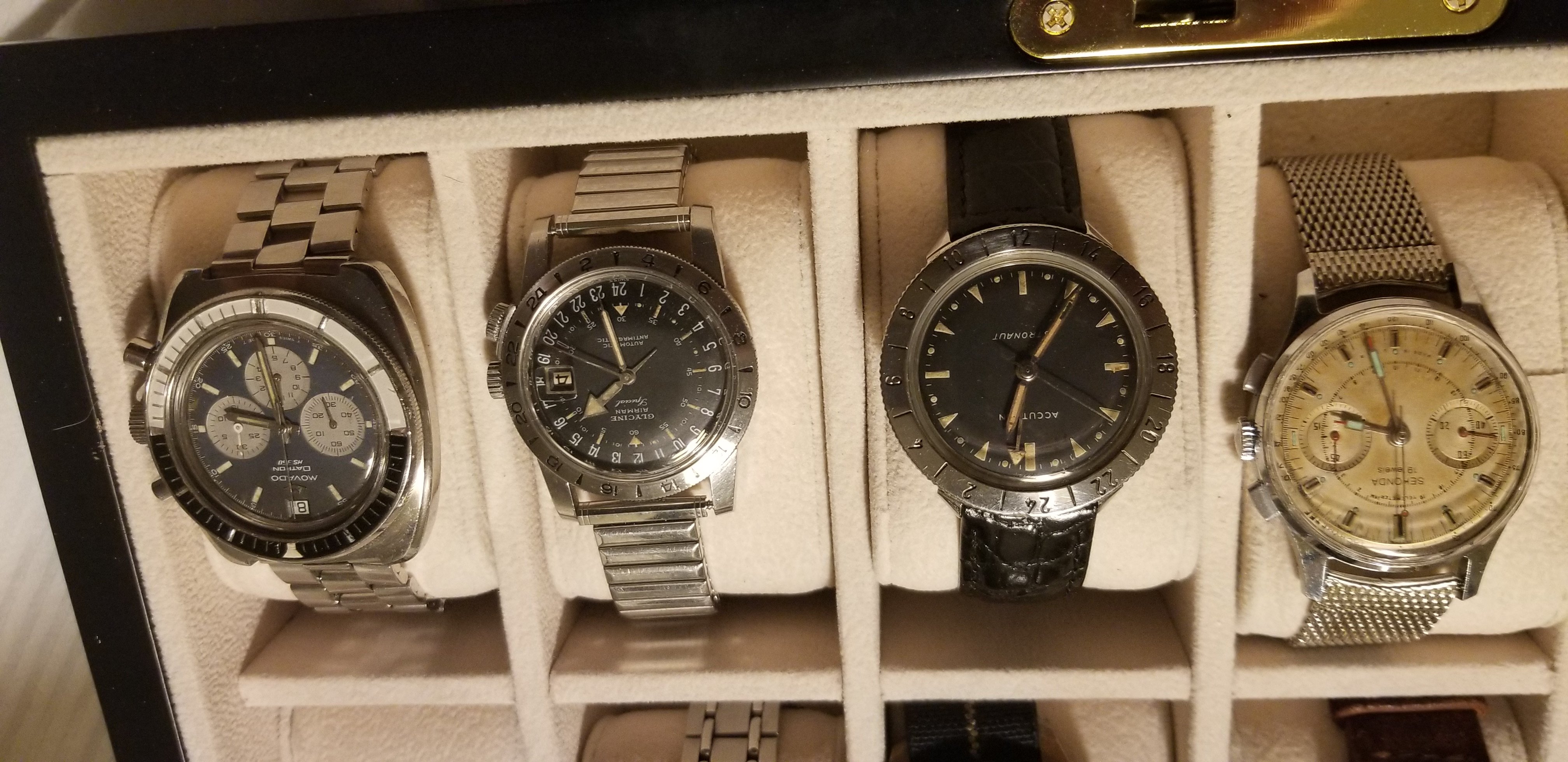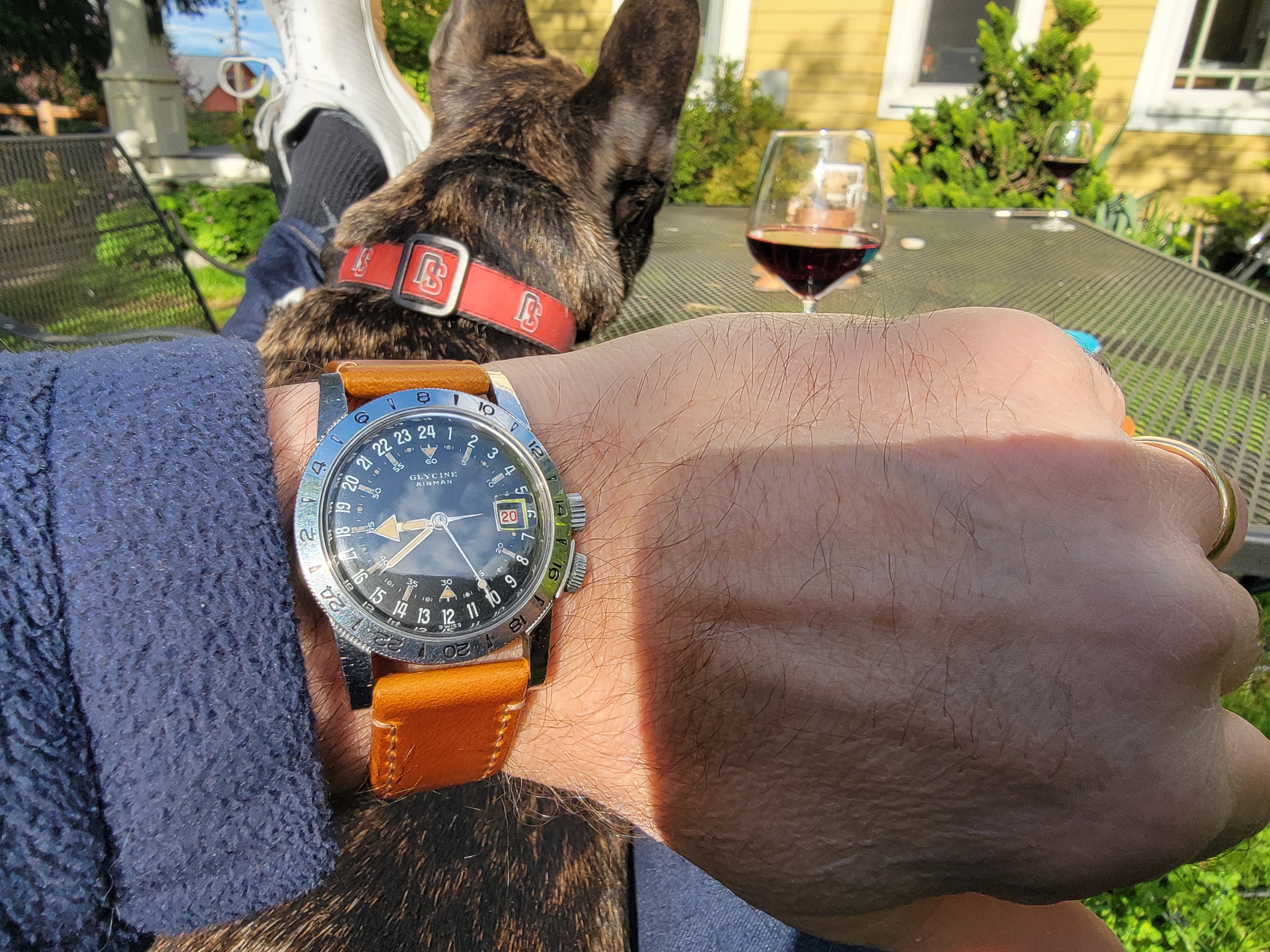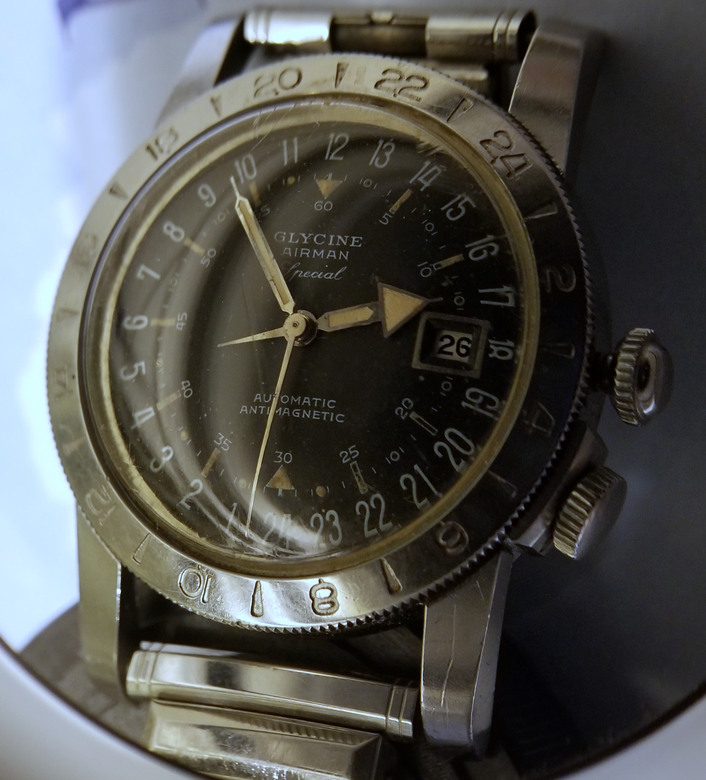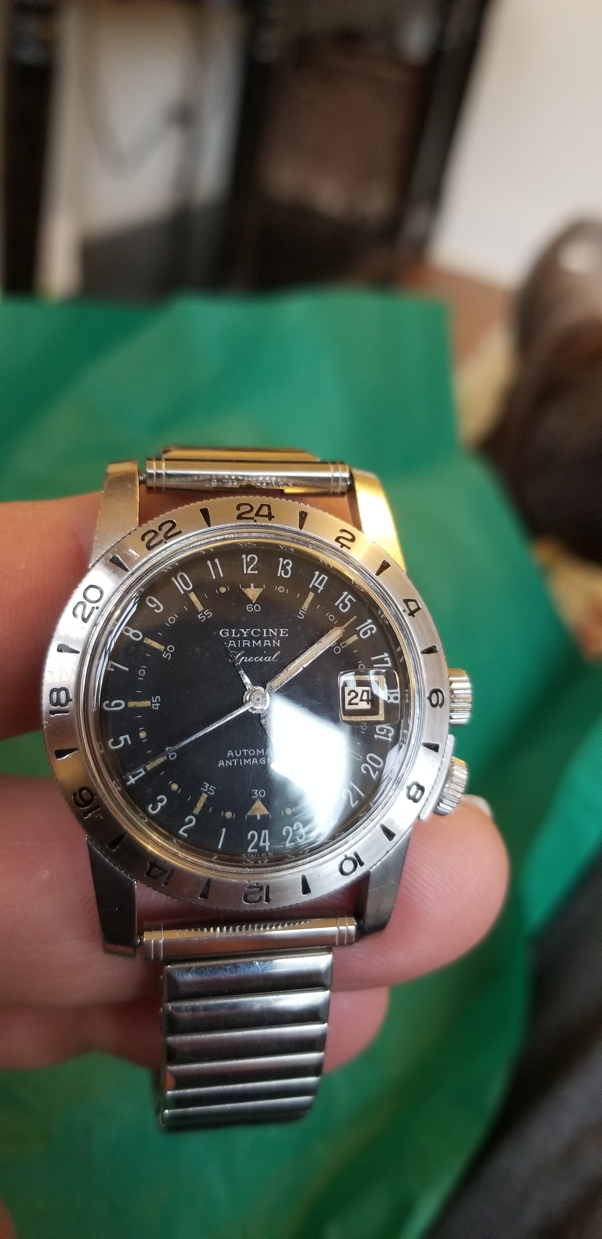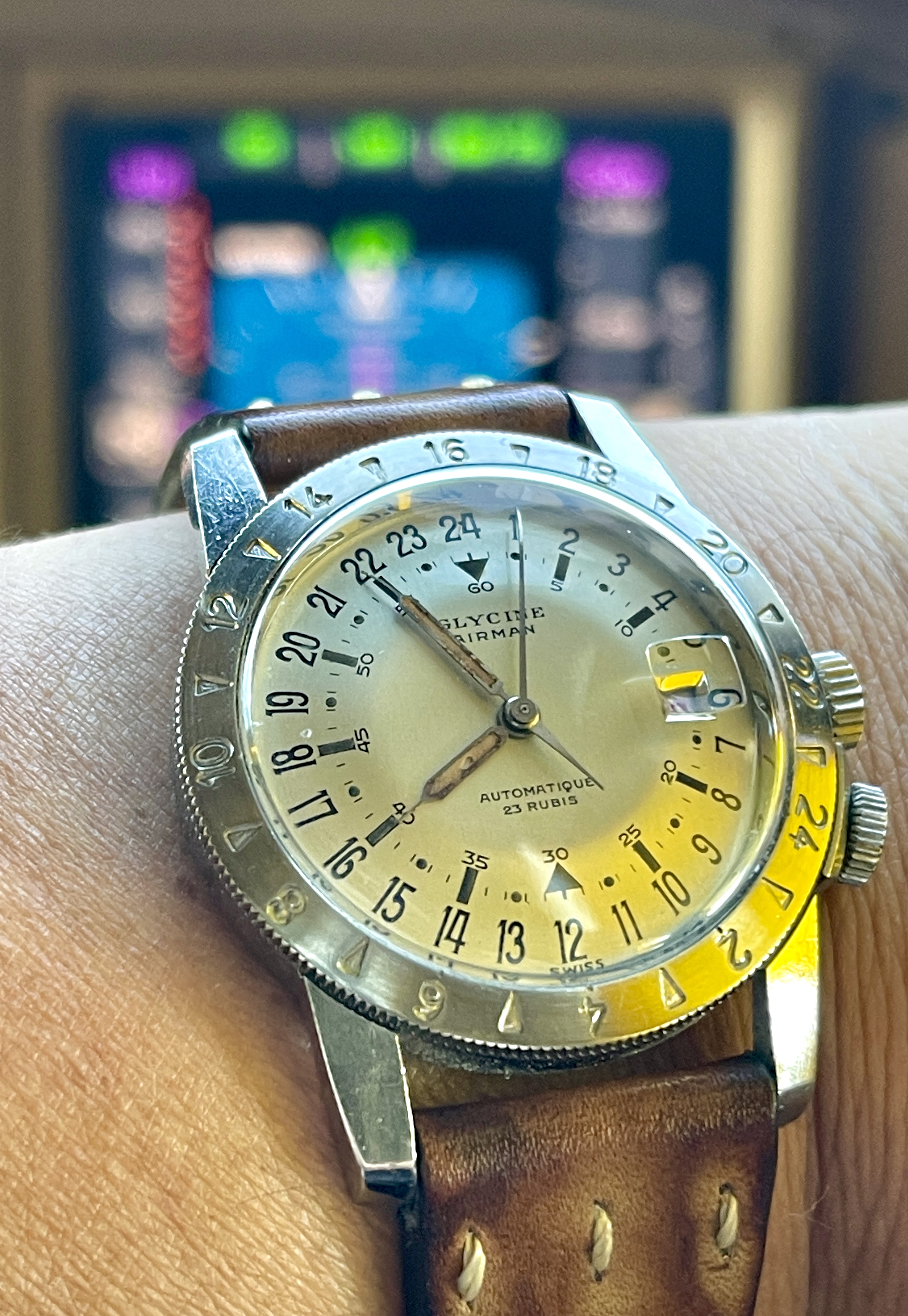 It's a fun and attractive watch. The sweeping small lollipop is mesmerizing. I also like the pre-Glycine crown dials. This particular watch is a bit unusual as it does not include the automatic writing on the dial and has a nice splash of red in the date, along with the metal surrounding the window. It's in great condition, having been serviced by @James Sadilek.
