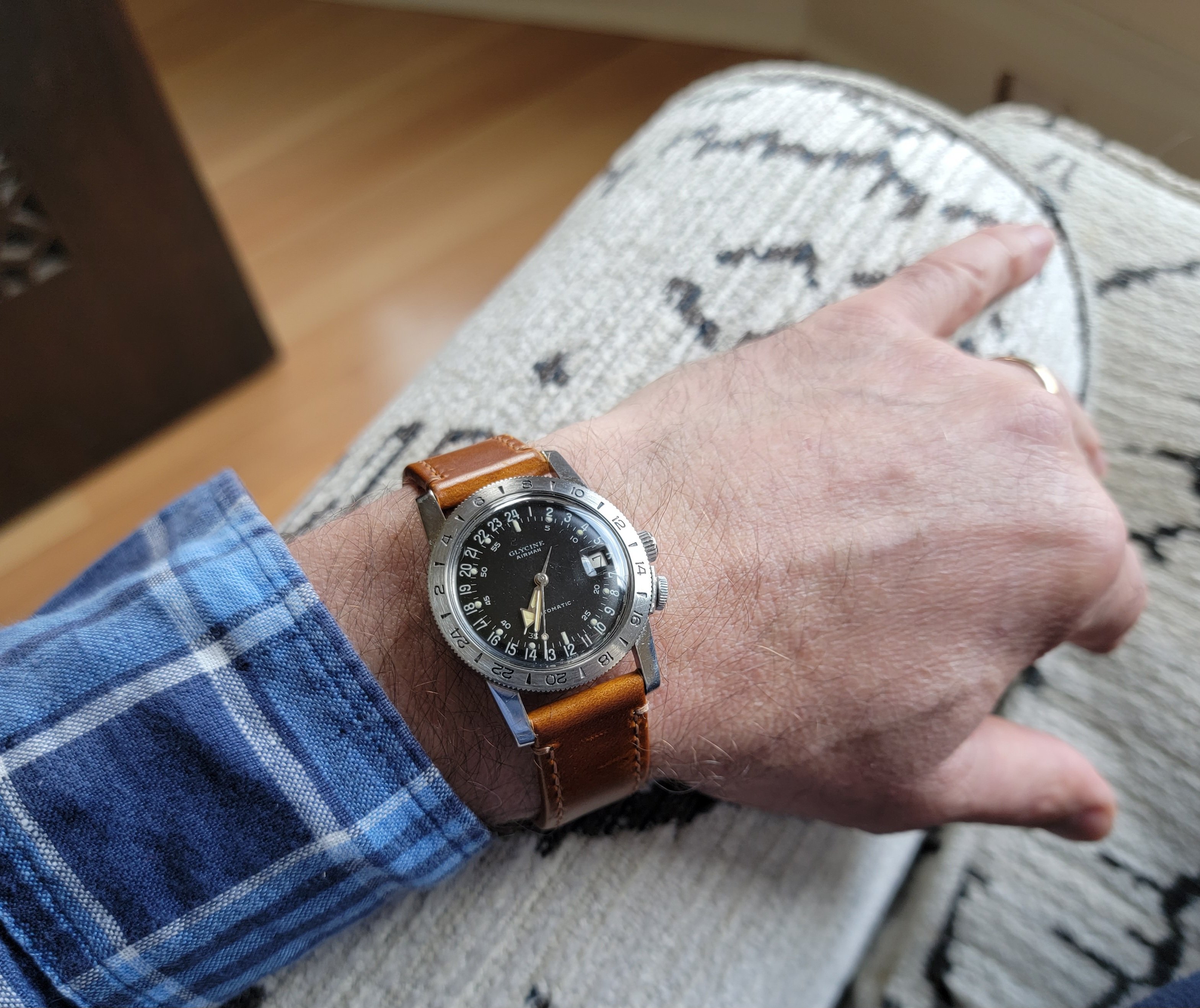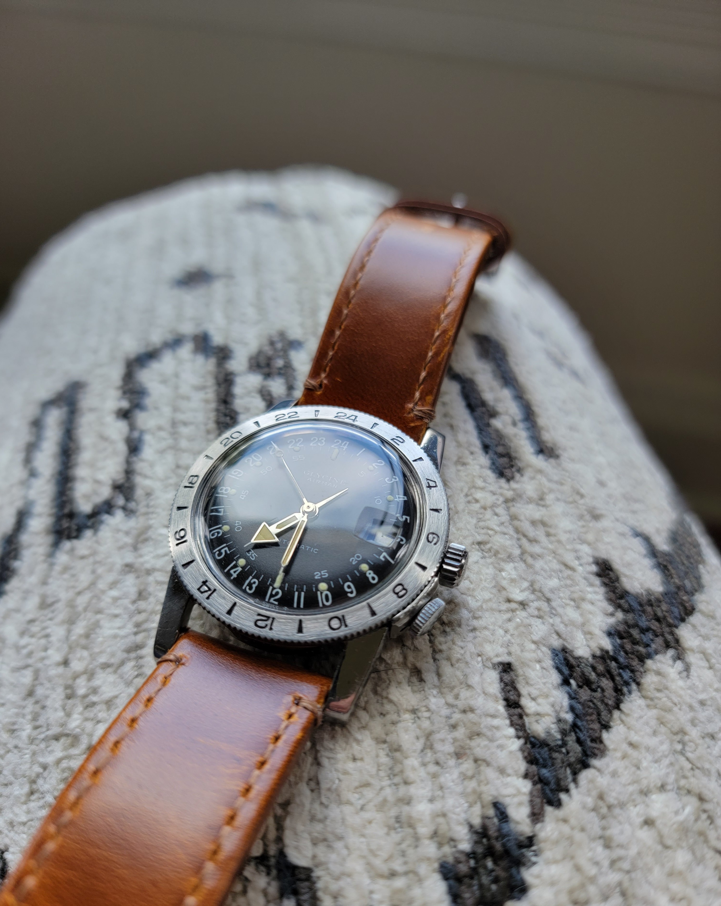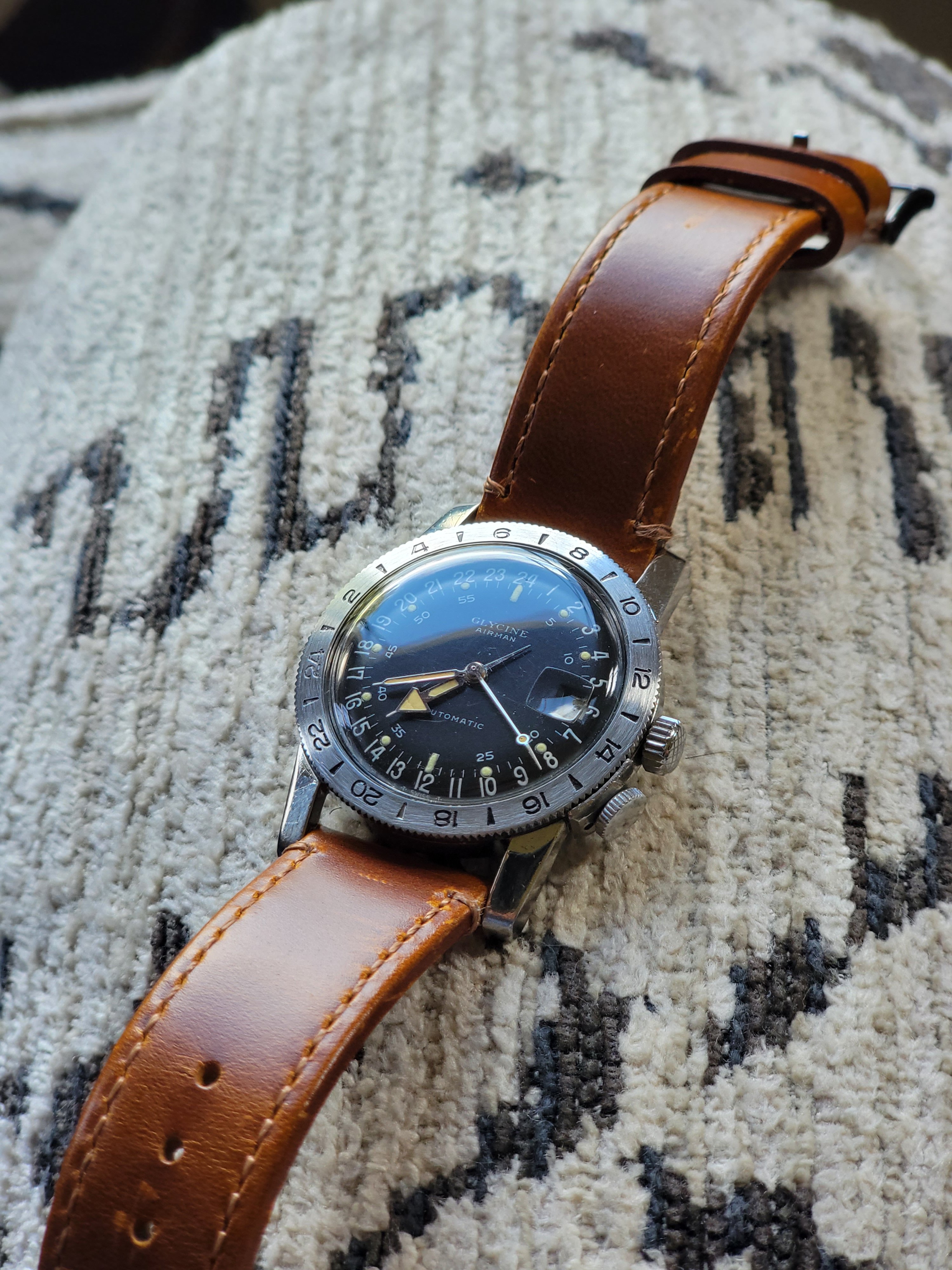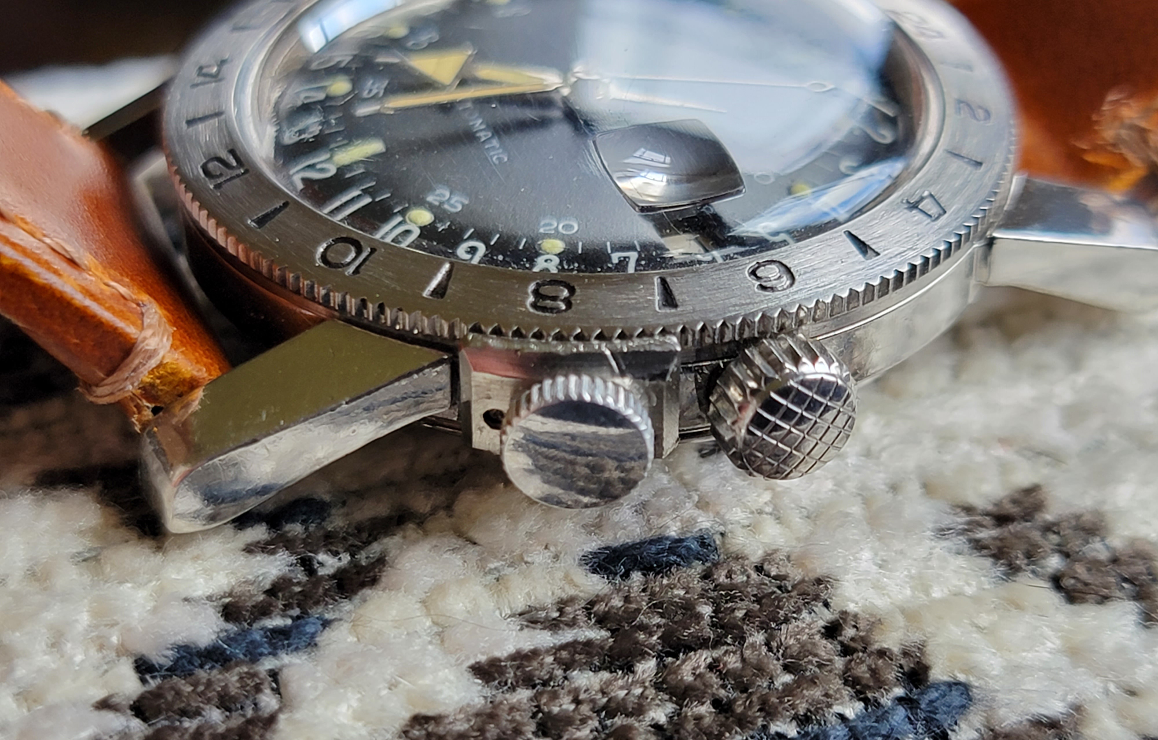 One last thing to note. The pilot who owned this watch may have traded his old one for this. What makes me think this is that the serial number of the watch is different from the one written on the box. He also has a letter he wrote to Glycine asking for service with "trade in offer" noted on it. The watch here has a circa 1965 serial number so is the correct era. It's not clear if this was his original watch or one he traded for later. But he clearly wore and was attached to Glycine Airman based on the service history. I can't imagine finding a better vintage Glycine Airman.