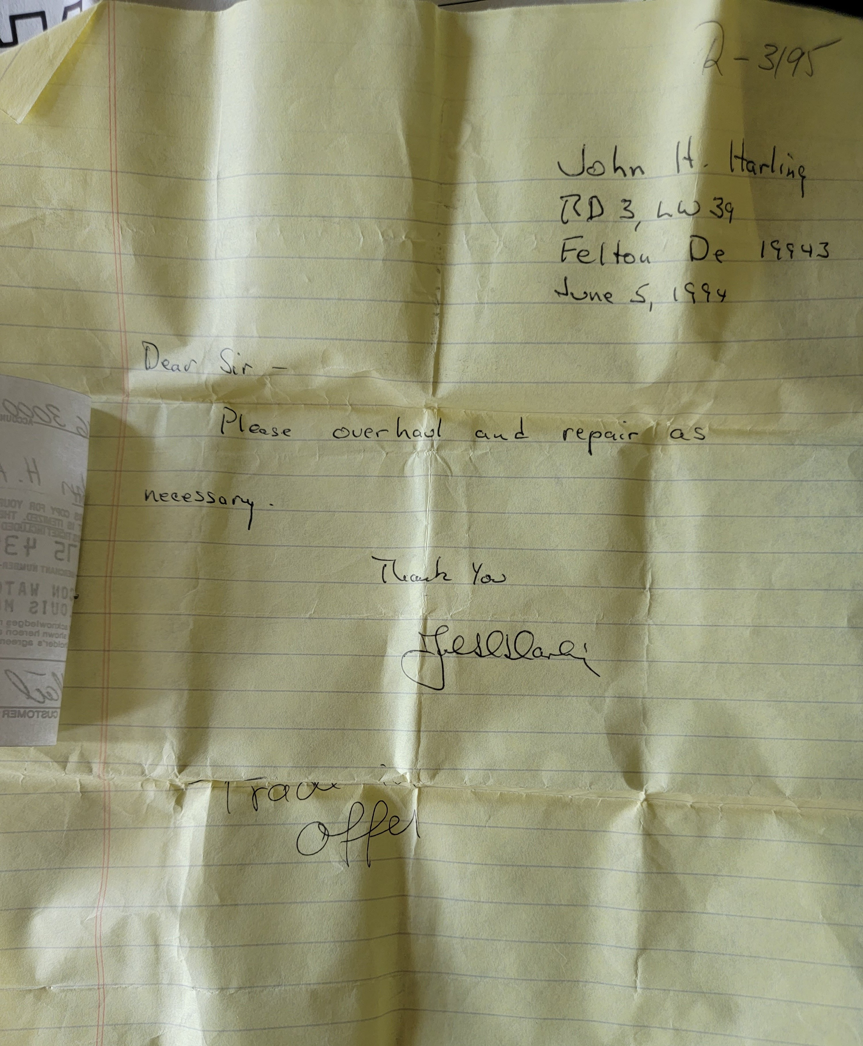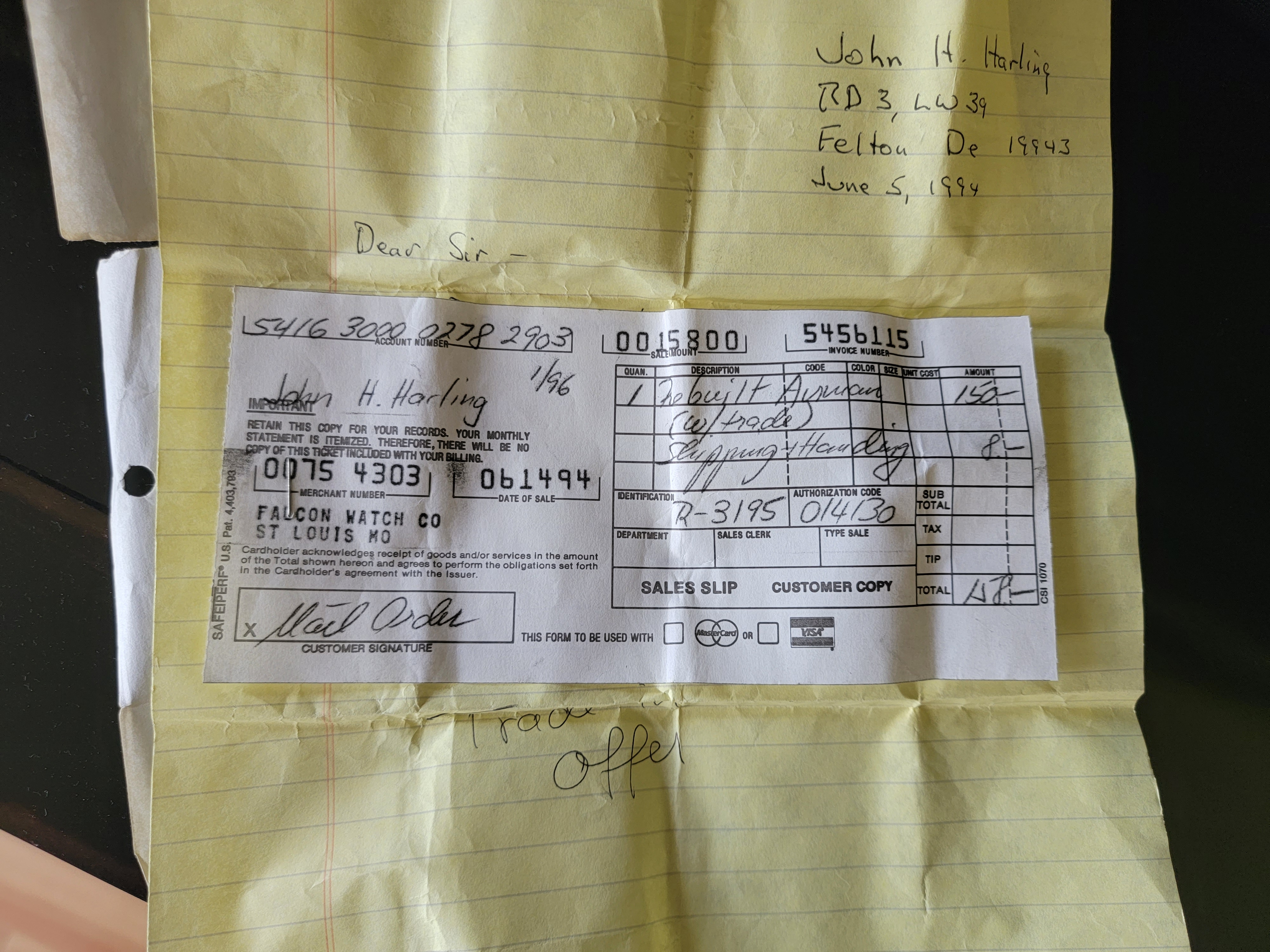 Provenance: Box includes owner's name with several service dates written inside. Also service paperwork from 1990 when he sent it to Glycine.