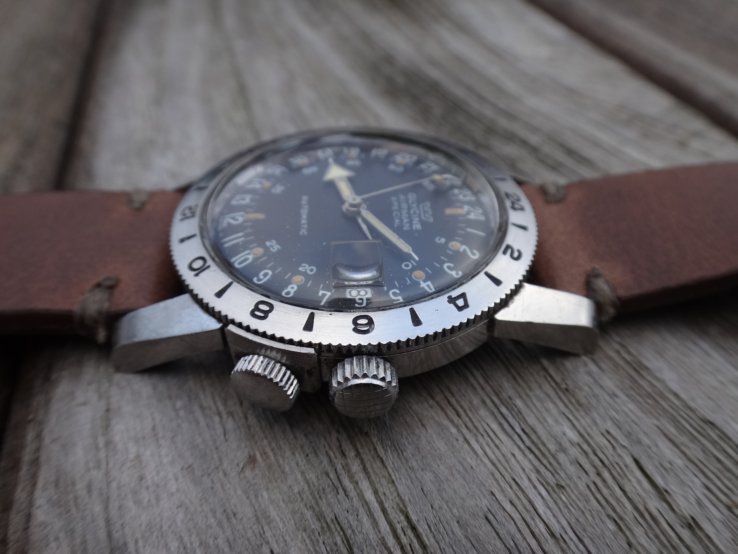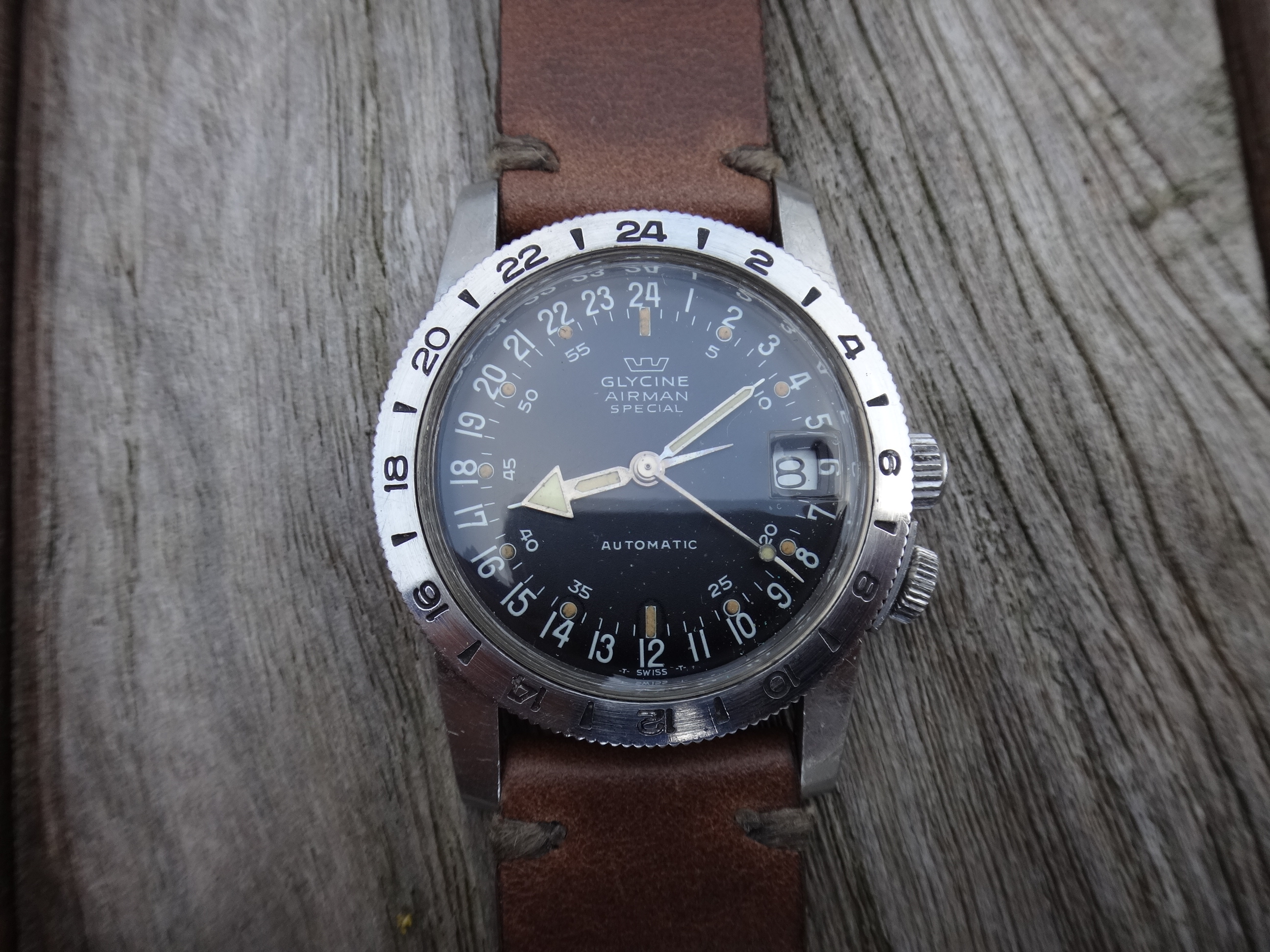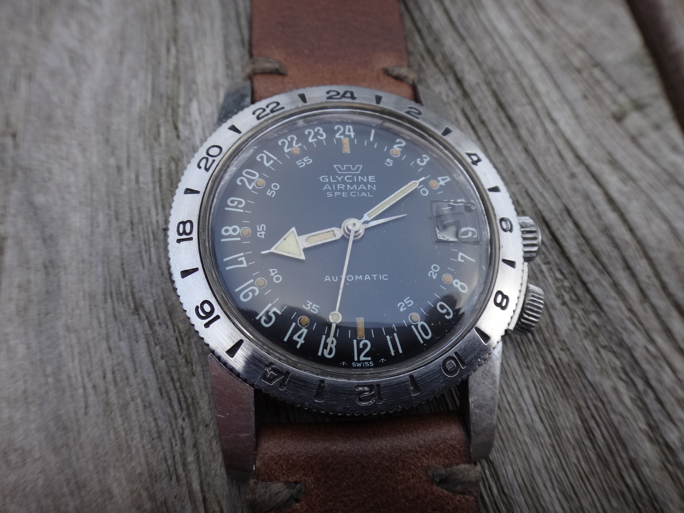 Glycine Airman 24 hour dial Pilot watch and lockable 24-hr bezel (timeline.watch)