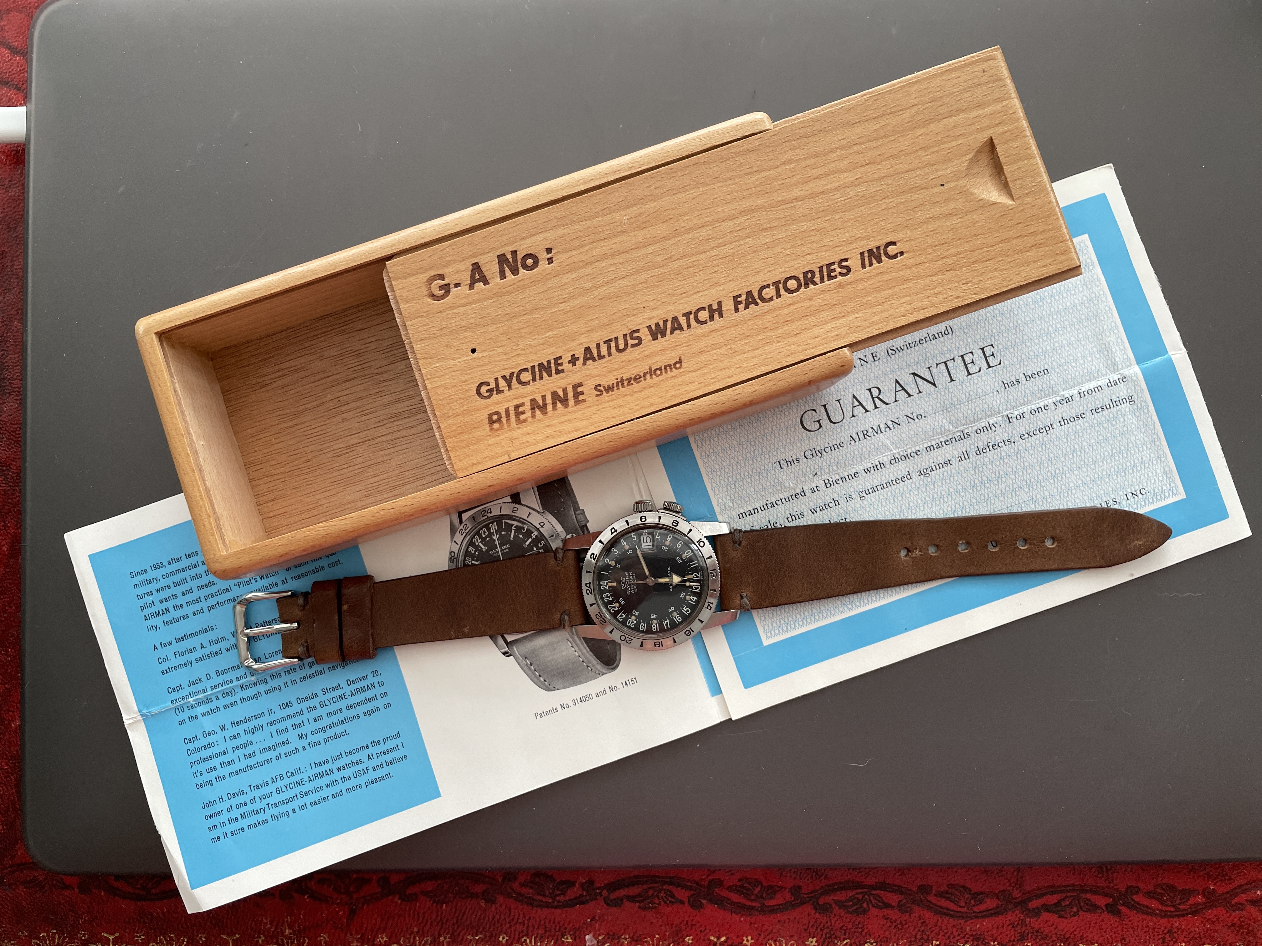 I am re-listing this Glycine Airman now complete with original box and guarantee/manual booklet.