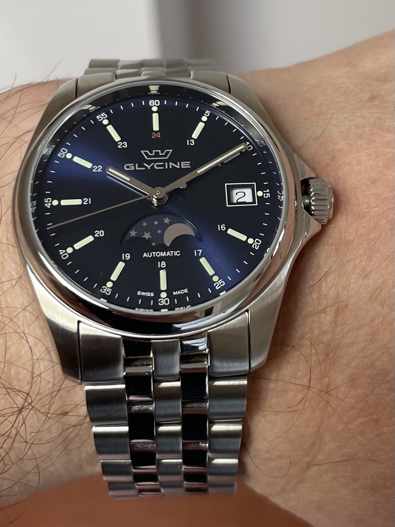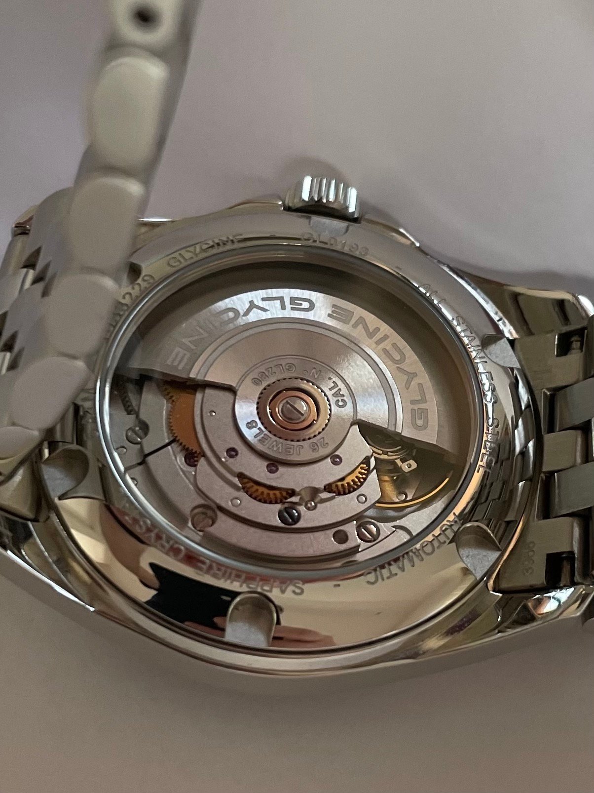 This beautiful Glycine (GL0193) is running well and keeping good time. It is like new, worn very seldom.