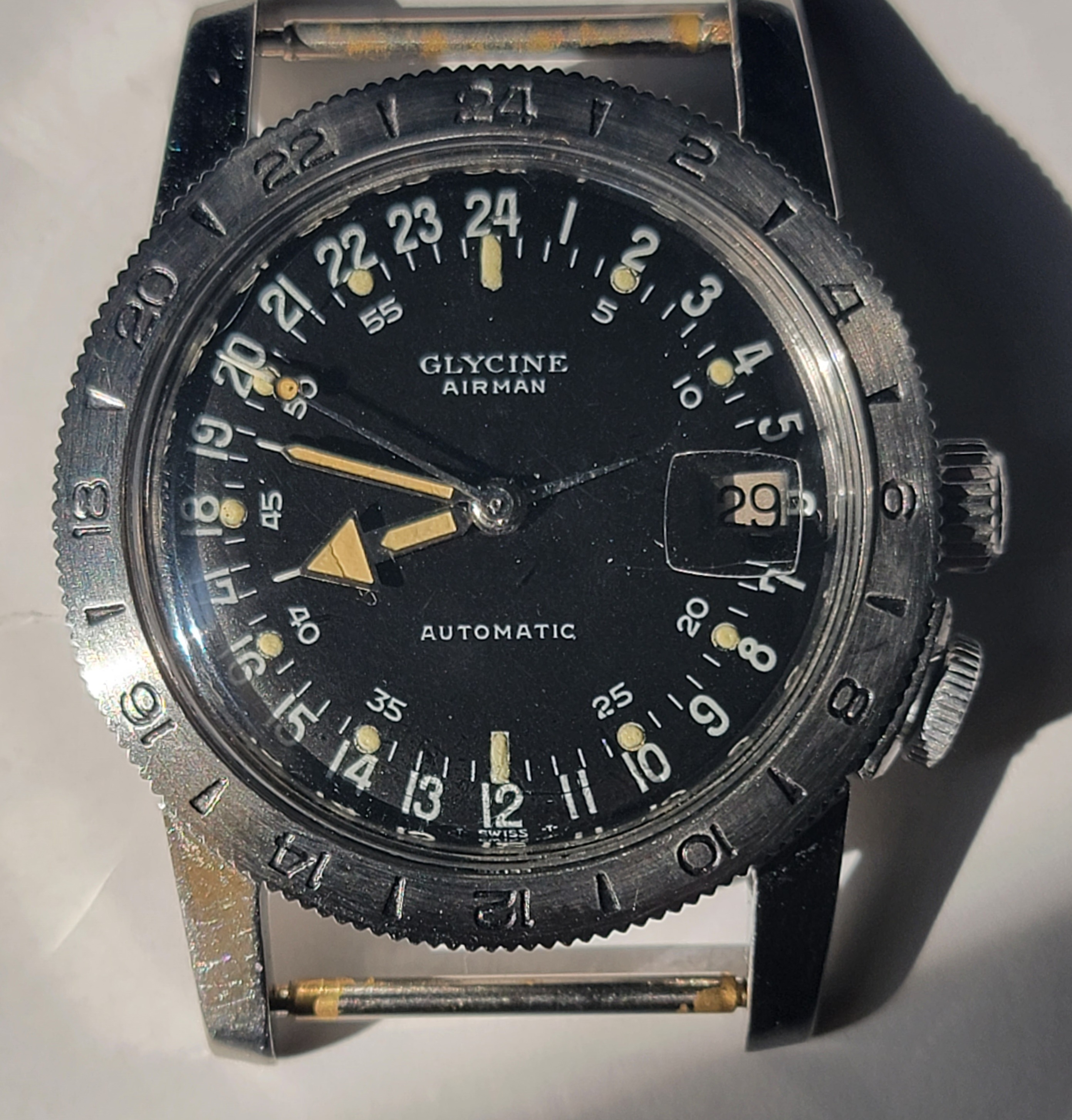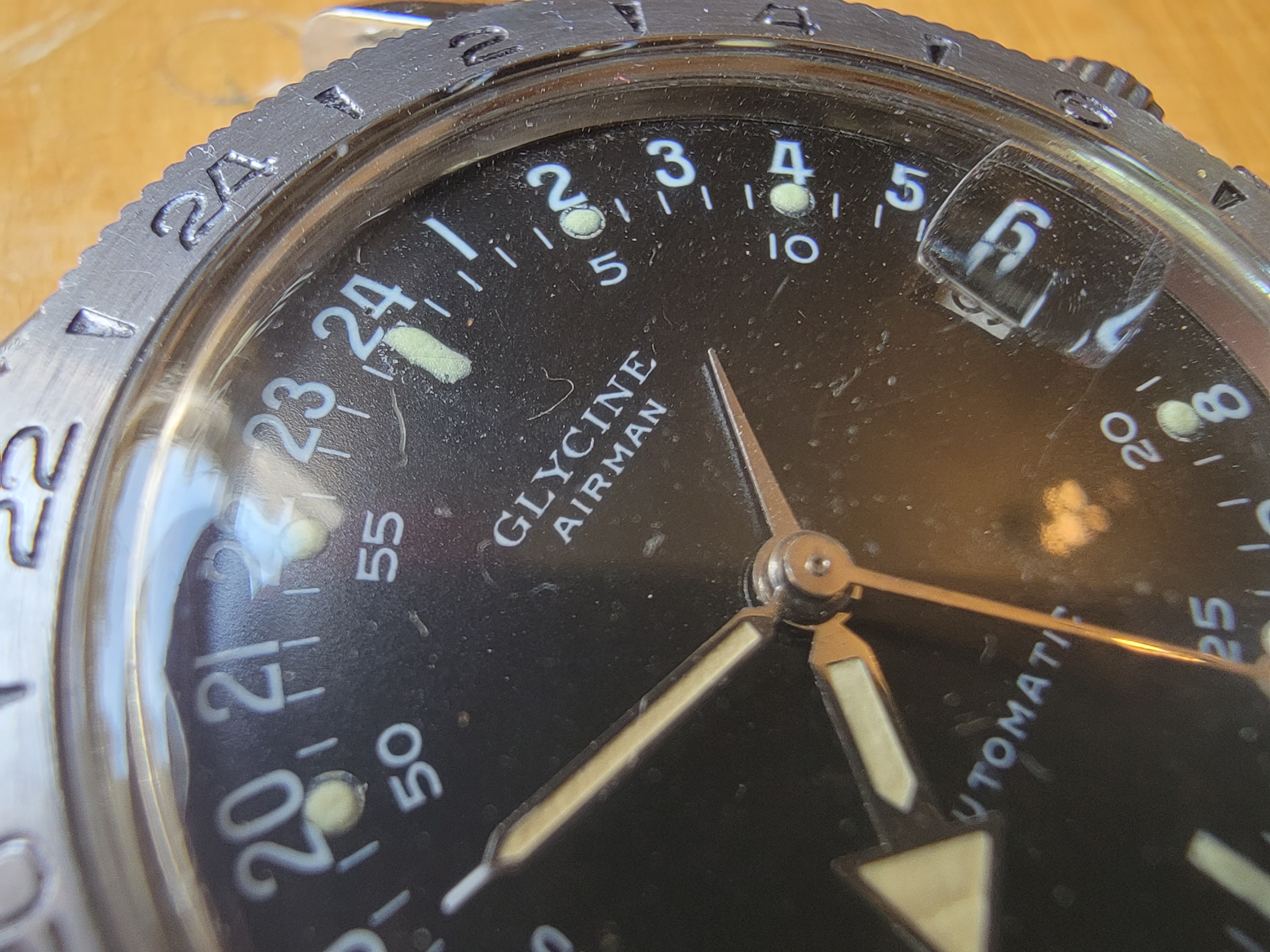 A quick polish of the crystal and it's looking good. The case is sharp but was polished by Glycine during previous services.