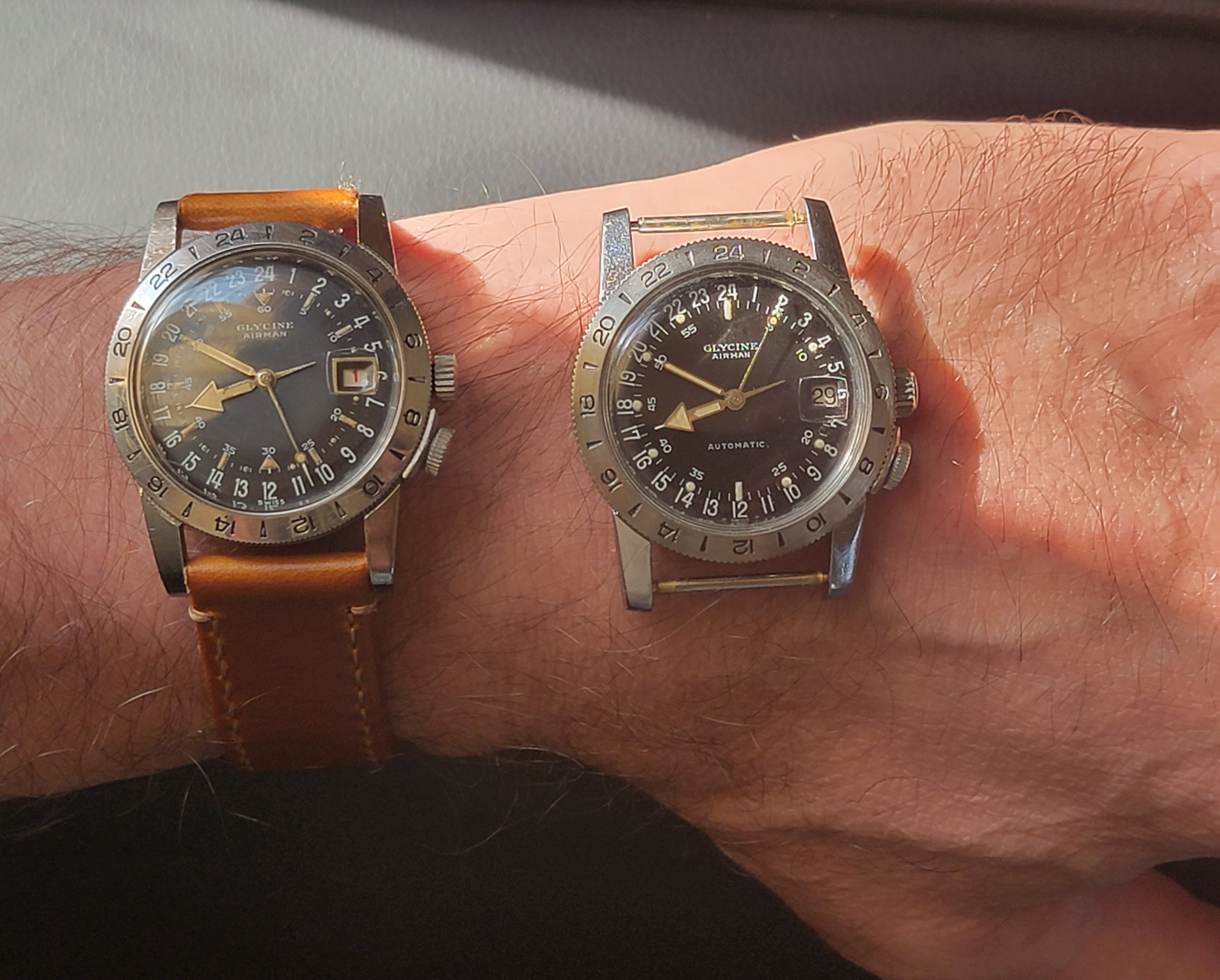 I know vintage Glycines are not strictly relevant to the OP but I can never resist chiming in about the handsomeness of the Airman model. The 36mm model's massive lugs makes the watch wear bigger than the specs would seem to indicate.