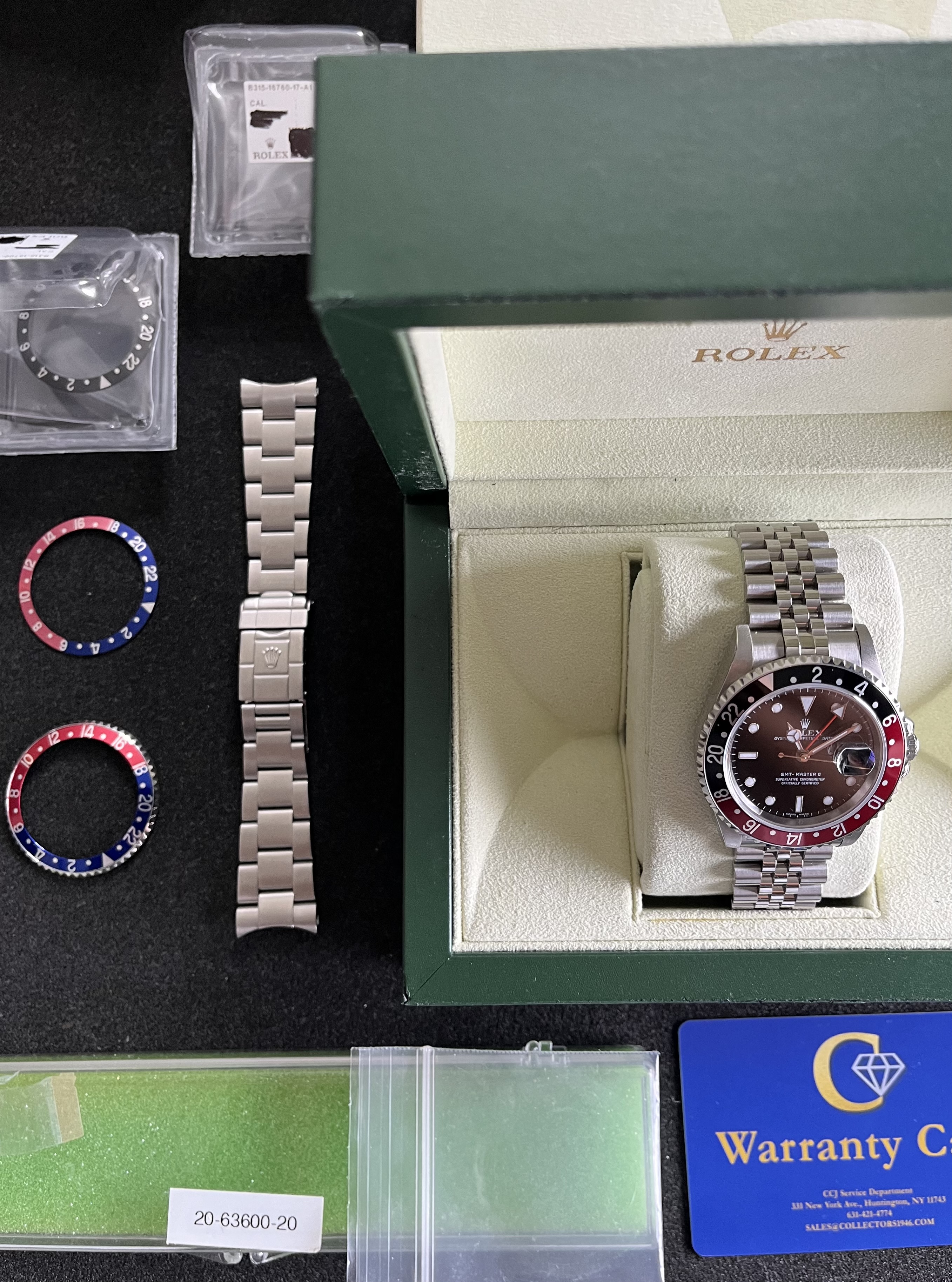 I have a Rolex GMT 16710T in mint condition. I have all OEM bezel variants(Coke,Black, & Pepsi, OEM Super Jubilee!, and OEM Oyster). Pretty much everything you would want from a 16710 (except for the 3186 movement). Unfortunately I only have the box no papers.