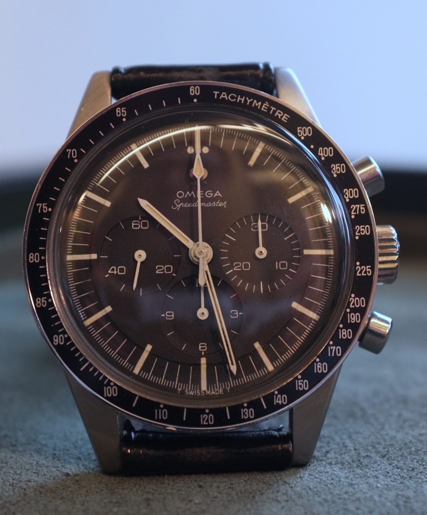 Antique Watch, a tiny place, and as Tony mentioned, on a bridge. There were about two dozen vintage Omegas in generally good condition. The owner is very friendly and his watches seem to be all original. Three watches caught my eye: a Connie, Seamaster and Speedy (not much of a Speedmaster fiend, but I thought OF members would like a picture). The owner seems very honest. For instance he said, without me inquiring, that the Speedmaster bezel was a replacement.