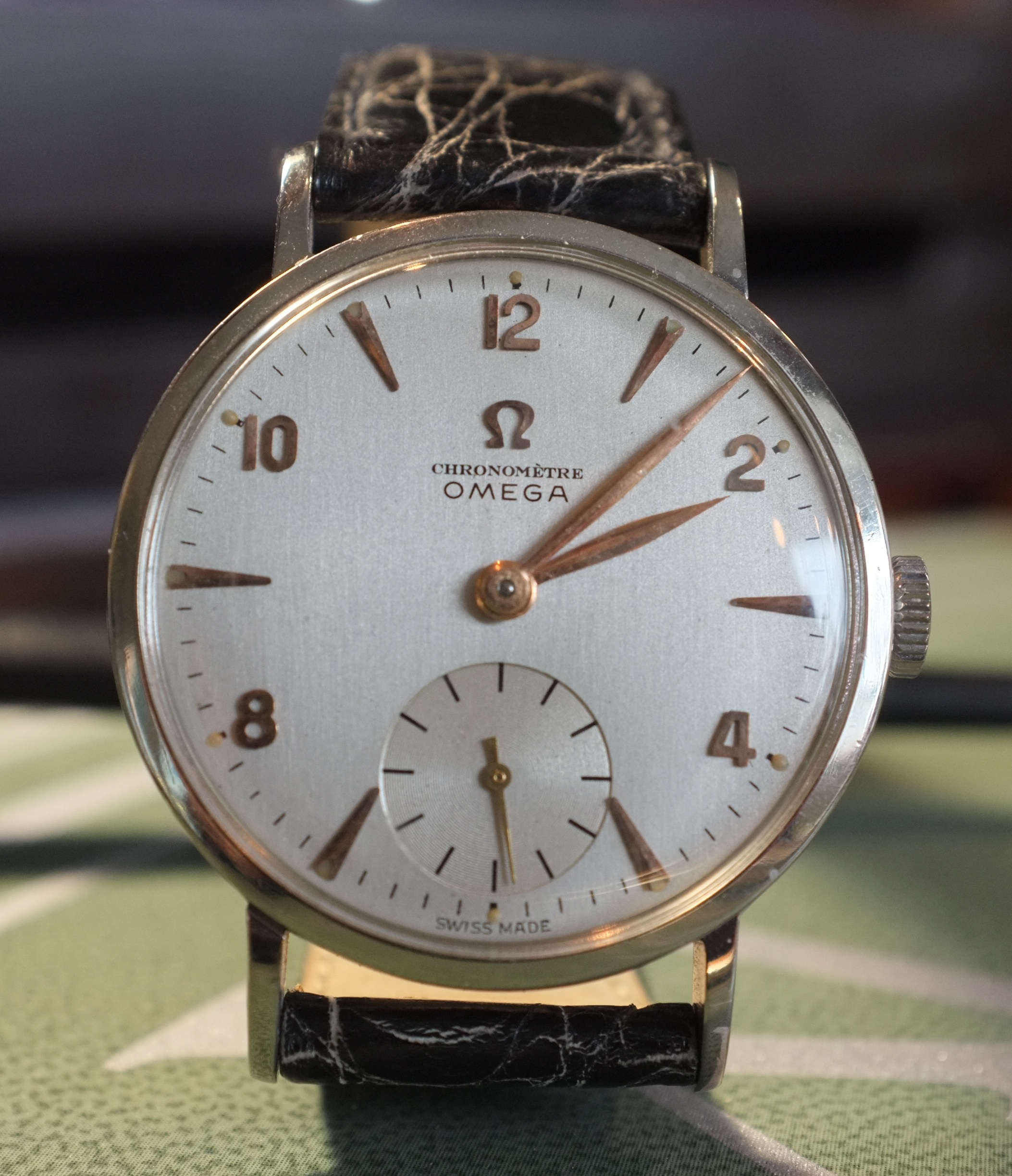 Timeless Galery. I spent a good amount of time discussing with the colorful owner., Carsten. He sells vintage watches and table clocks (Atmos, retro, etc.). Not a huge selection but he seems very knowledgeable and honest. Here is a Seamaster and Connie. Looking at the Seamaster I'm sure about the originality of the dial and hands.