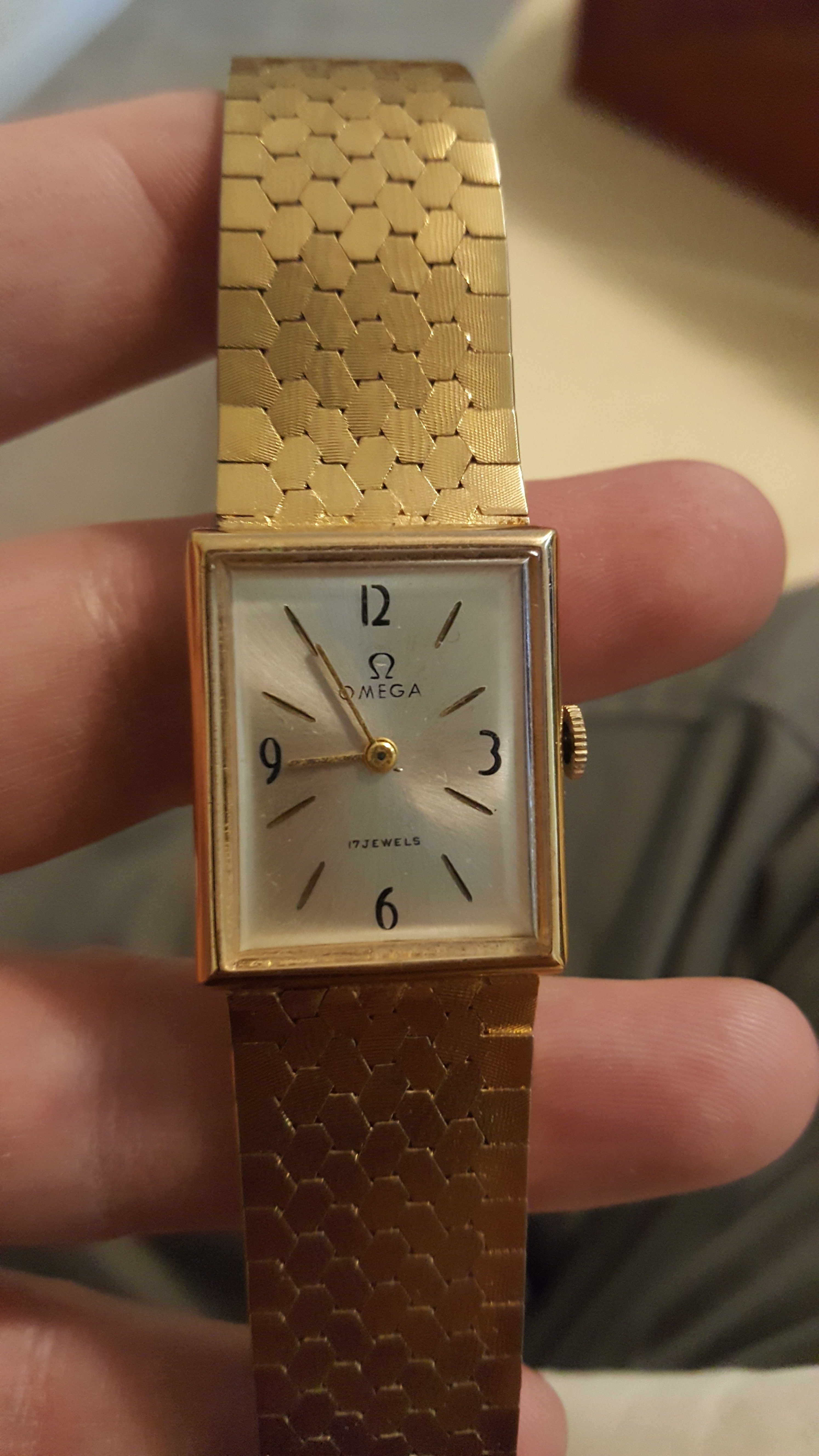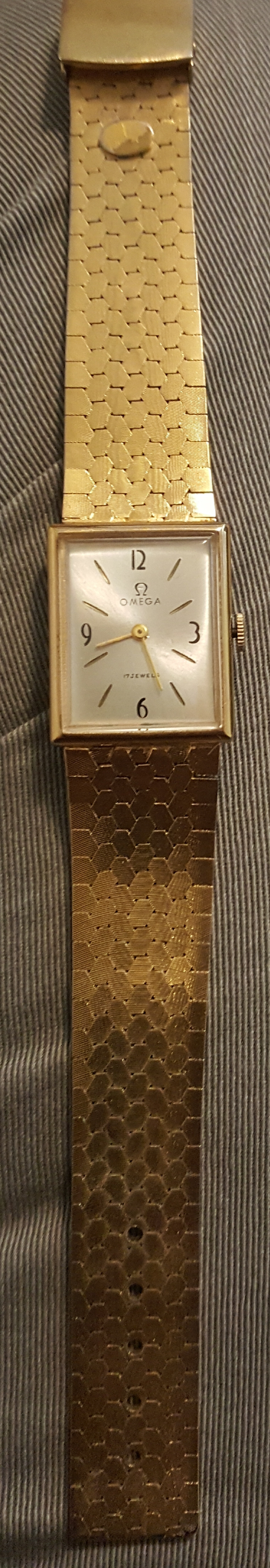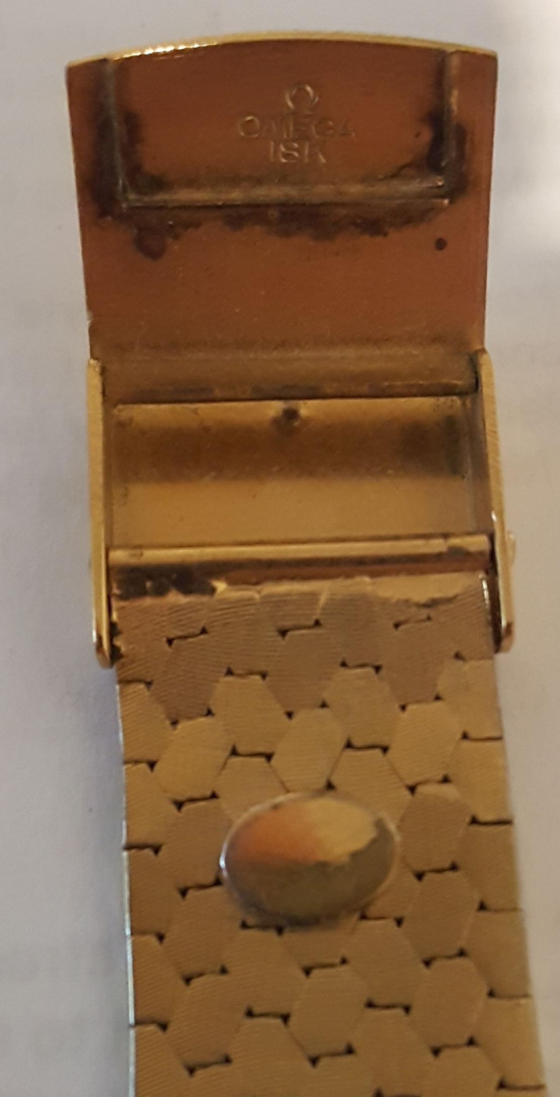 -Omega symbol and "Omega 18k" inside buckle.