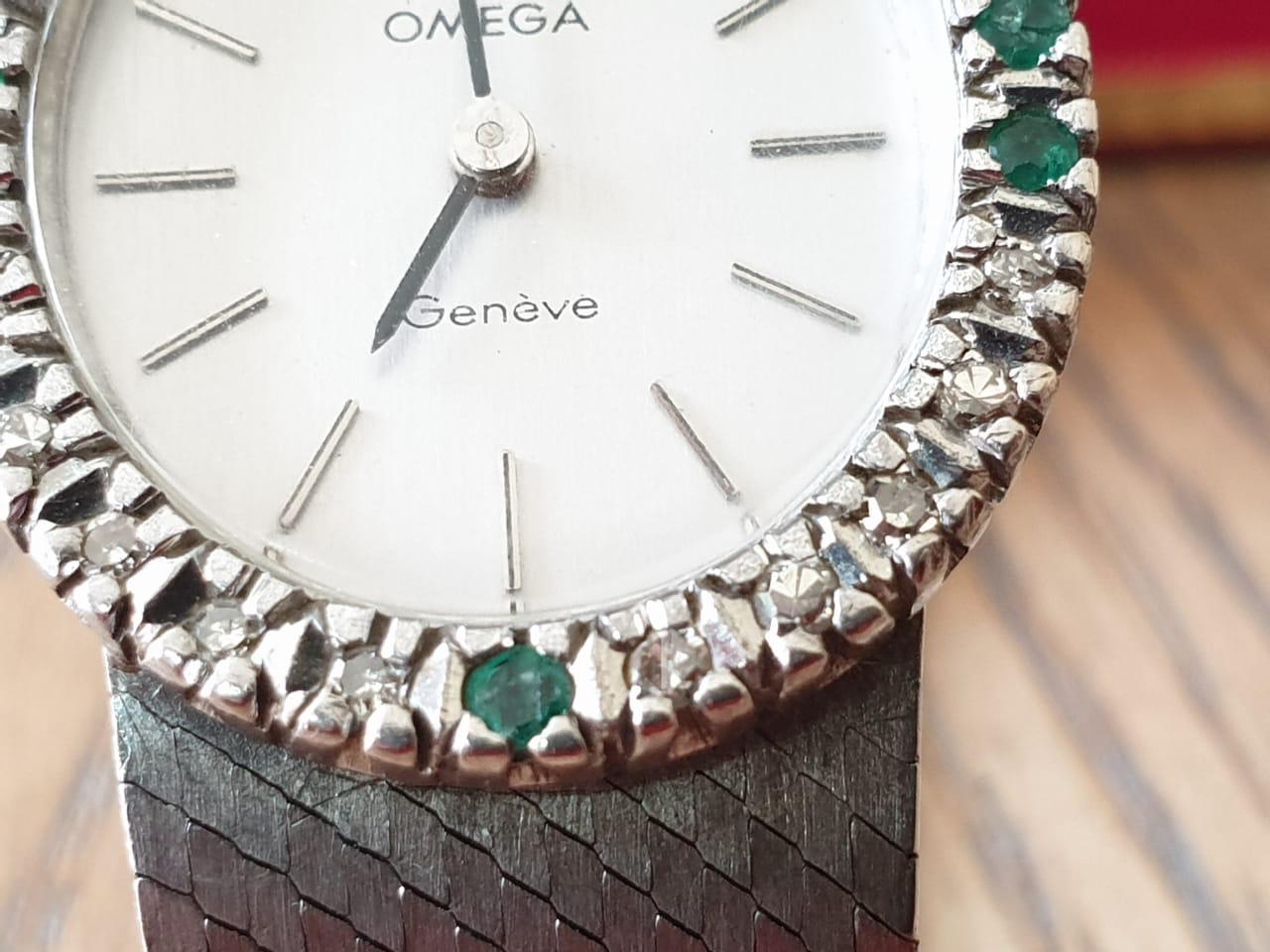 Caseback says it has a gold plated bezel but is otherwise steel which is strange as it’s not yellow. If you google Omega 511.0411 you get a vaguely similar but different looking watch with lugs using a very different looking 620 movement. I would say a few parts of this are real but it’s been heavily modified, and not particularly well. Since it has no value in the metal it has little value as a watch. Even if the stones are diamond which is doubtful, they have very little value, the market in melee diamonds is in the gutter at present.