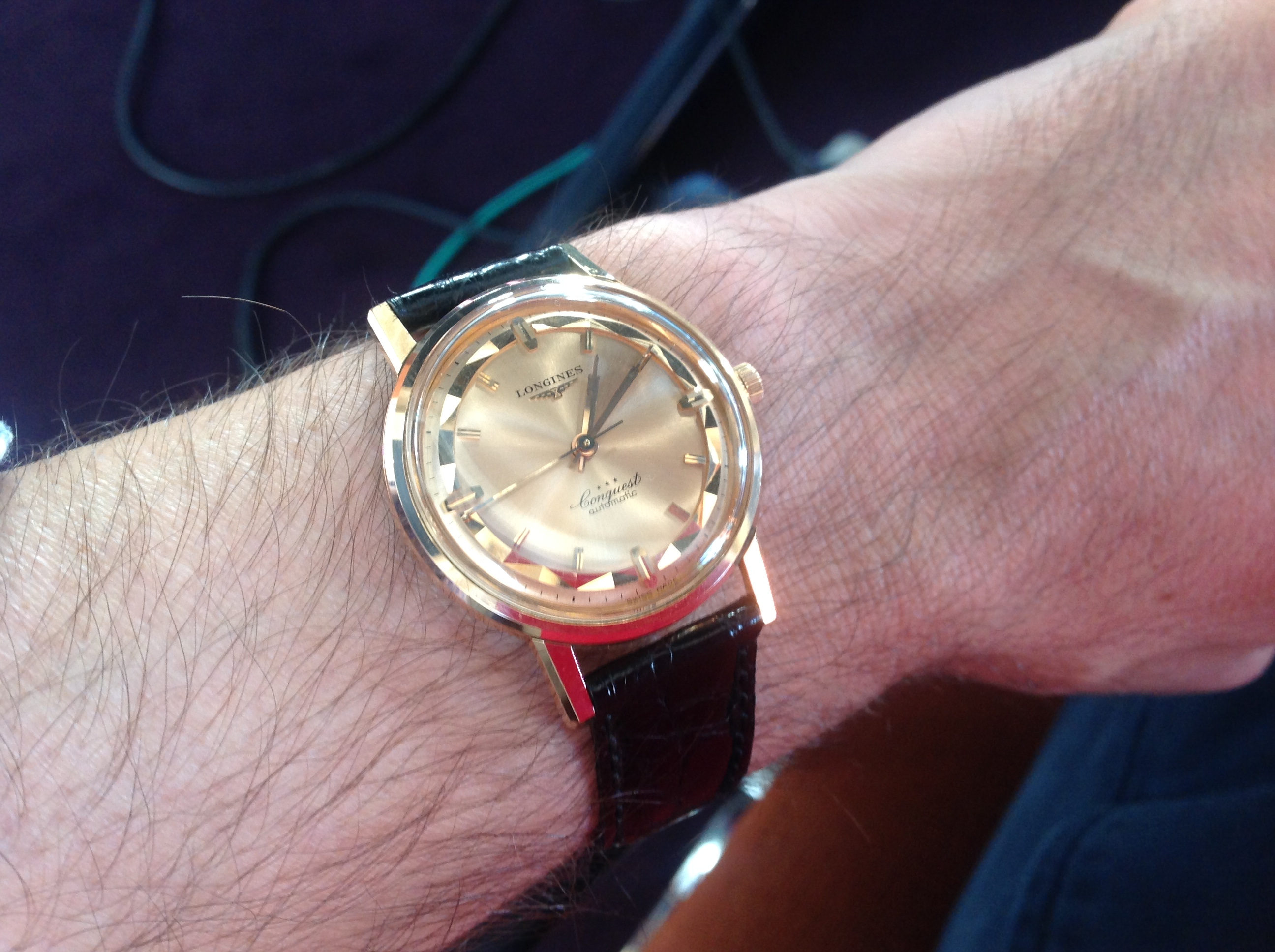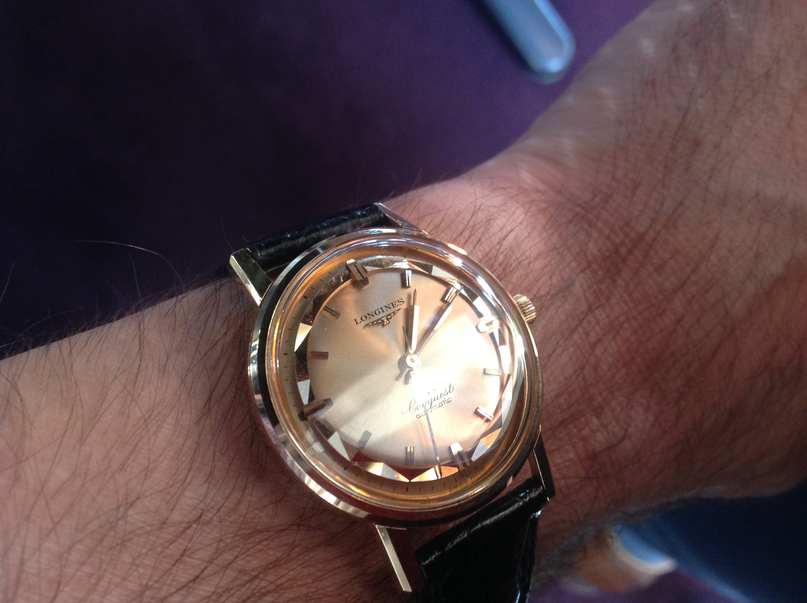 This is by far my favourite golden watch these days. The solid gold dial with sunburst effect and the golden faceted trim makes the goldie feel complete.