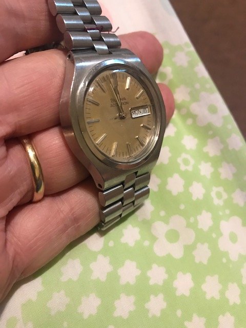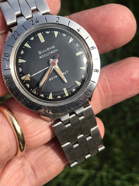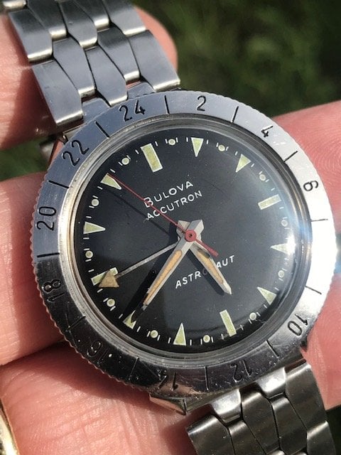 This Astronaut defies it's age as it is one of the typical drawer-queens we find here in Florida. Bought it, brought it to our watch guy who gave it a quick movement cleaning/service, popped in a new battery and it's purring like a kitten. Keeping great time and absolutely more gorgeous in person than my crappy pictures. Bracelet is nice and long to fit most wrists as well.