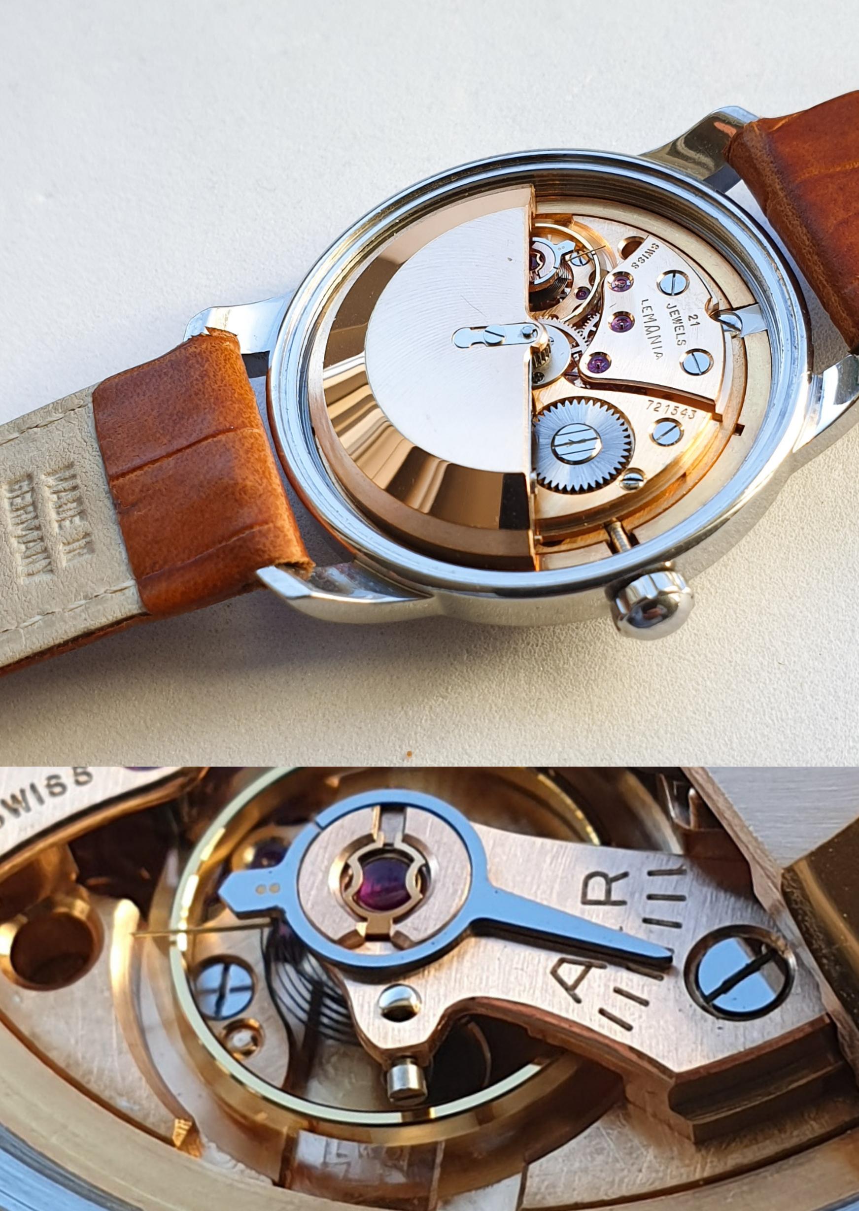 Strap: Blue or Brown NOS leather strap. Made in Germany.