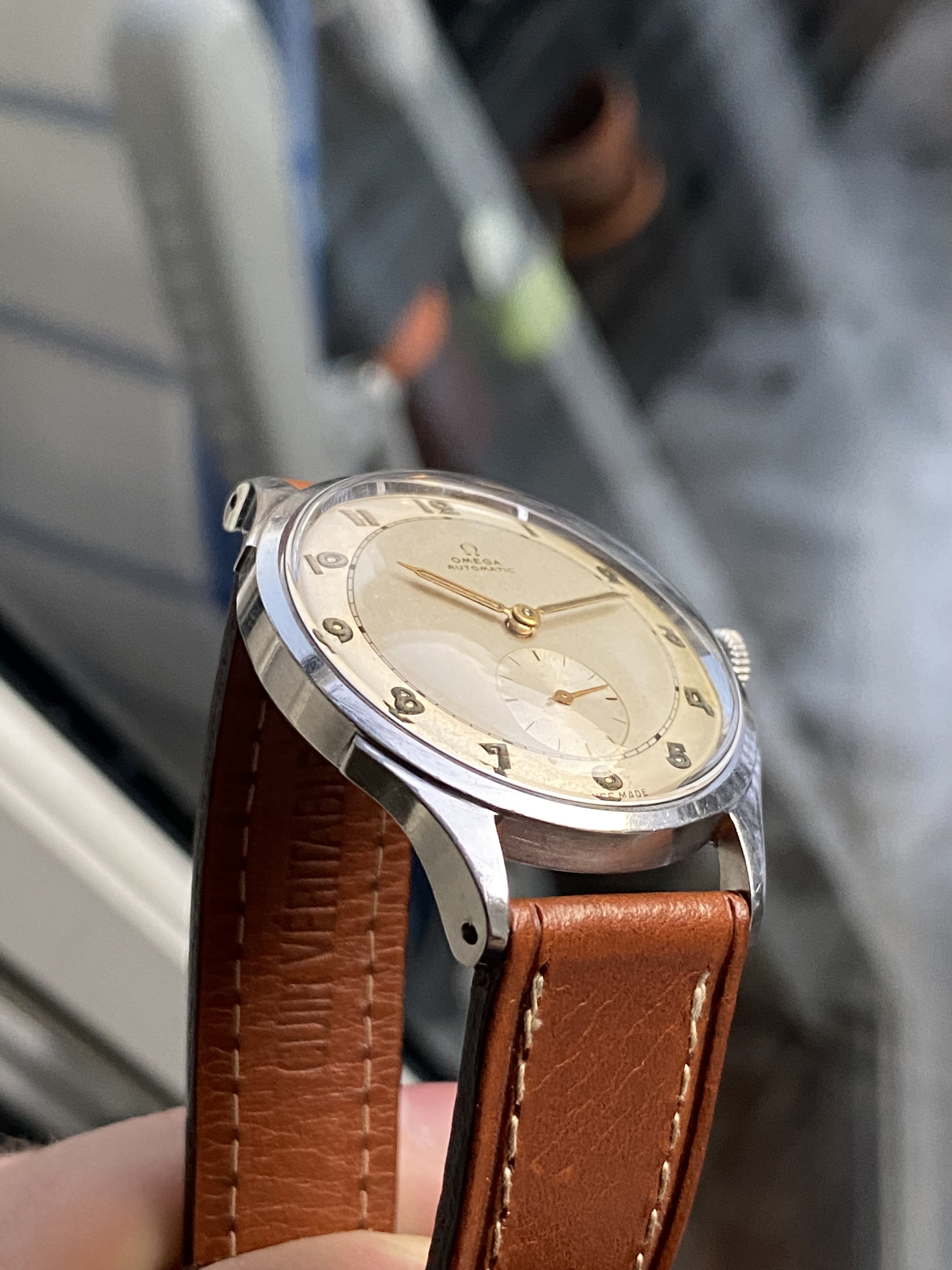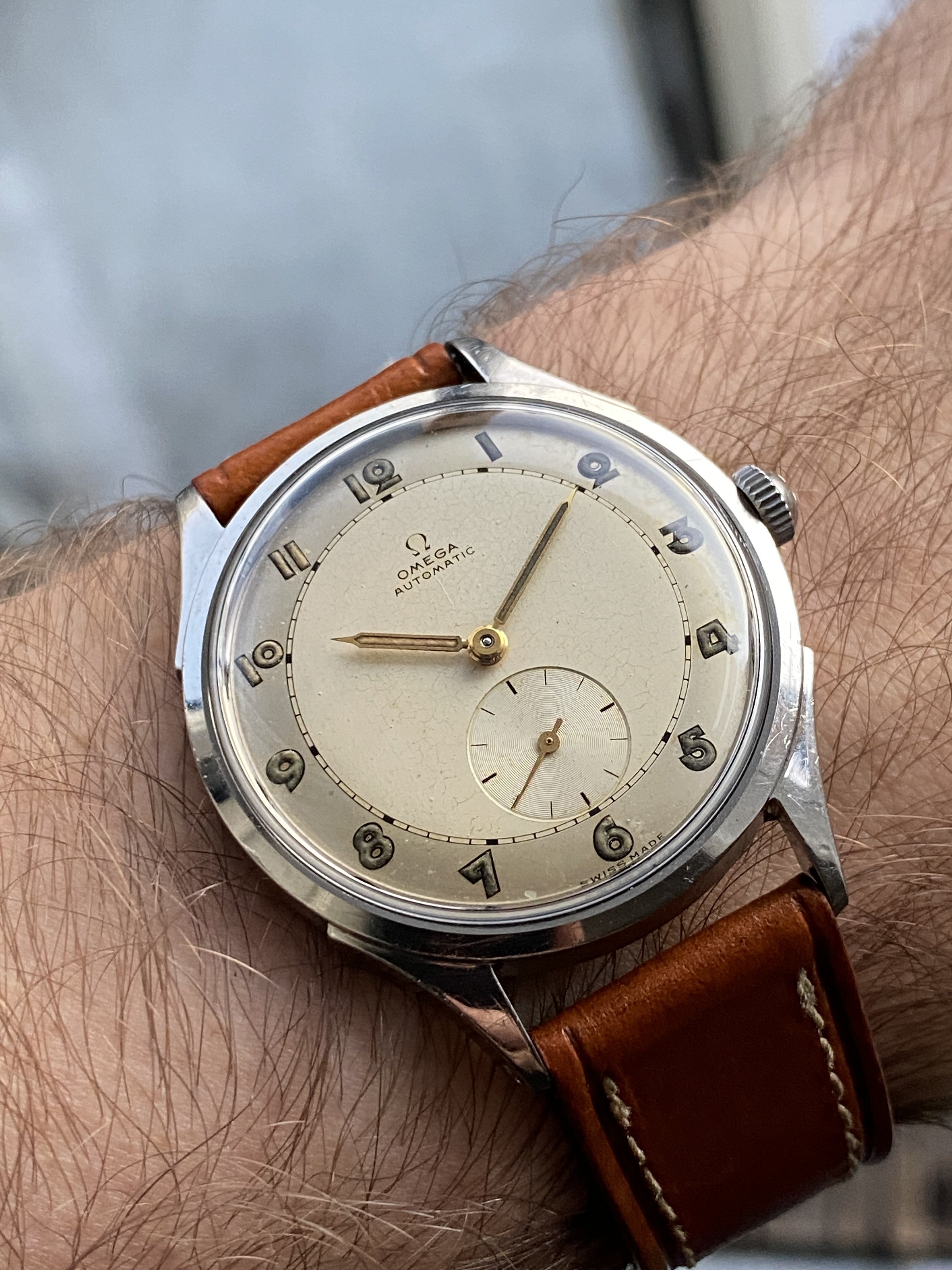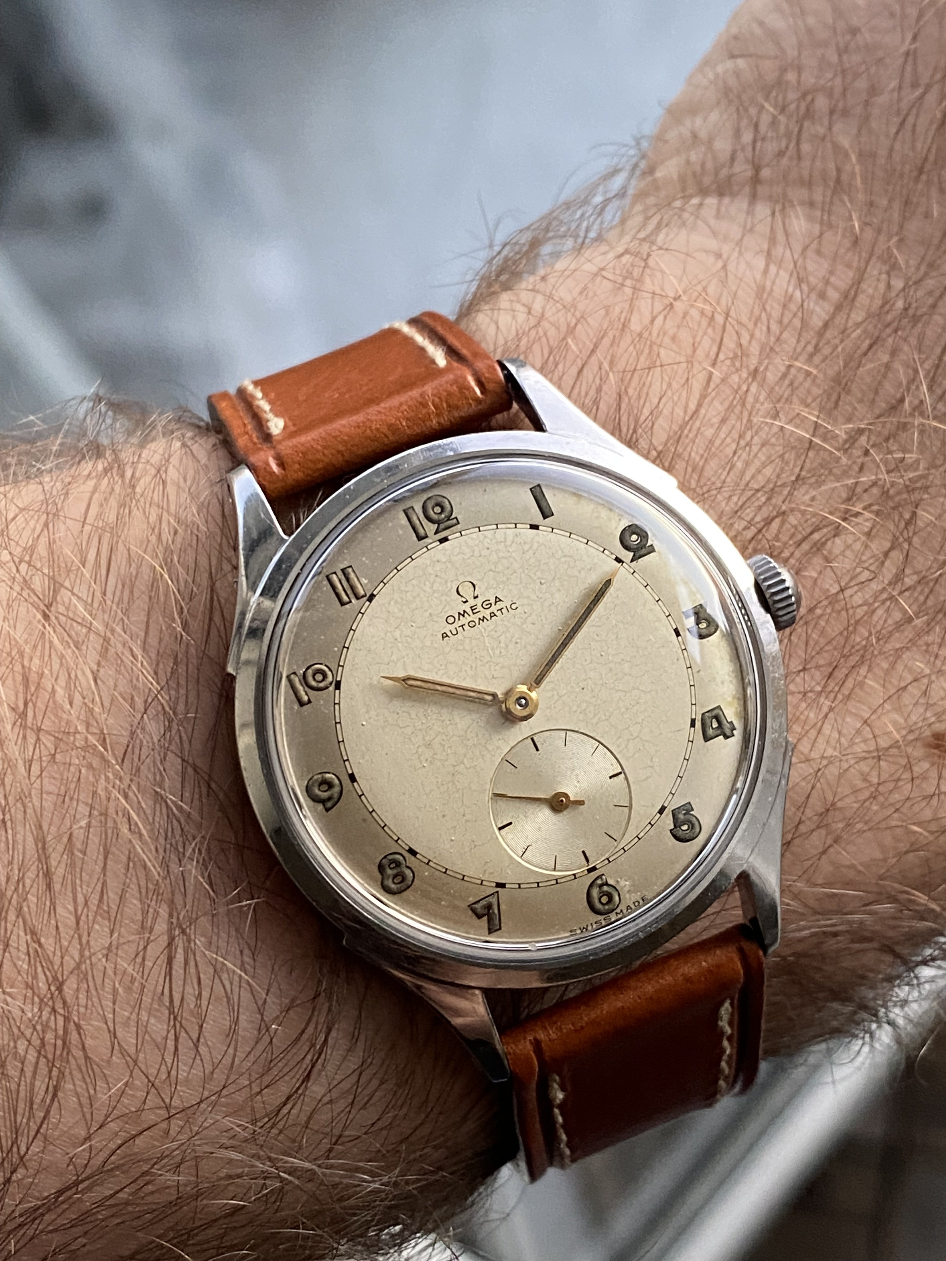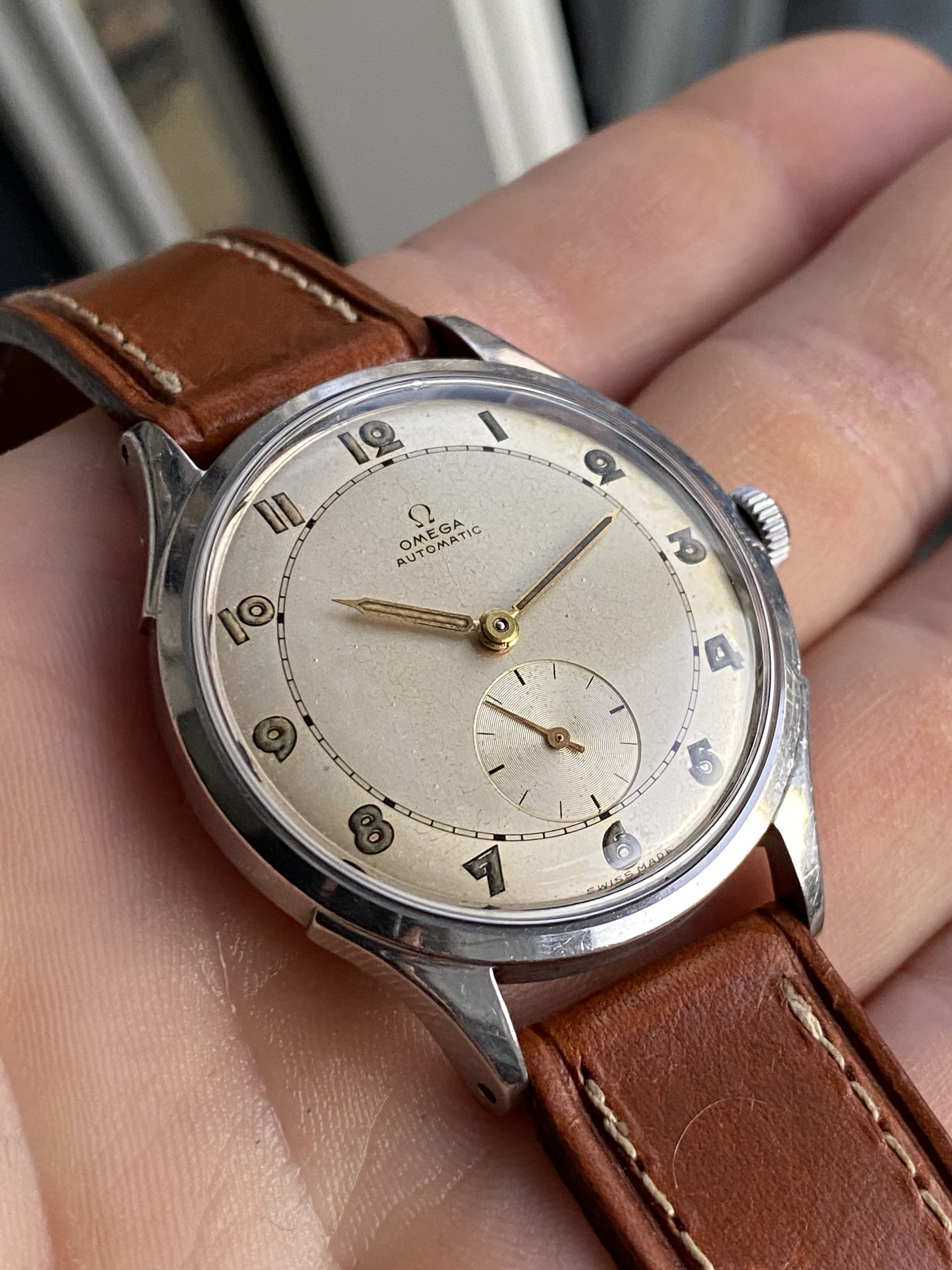 For sale is a gorgeous and freshly serviced two-tone Omega Automatic bumper ref. 2638-1 from circa 1949.