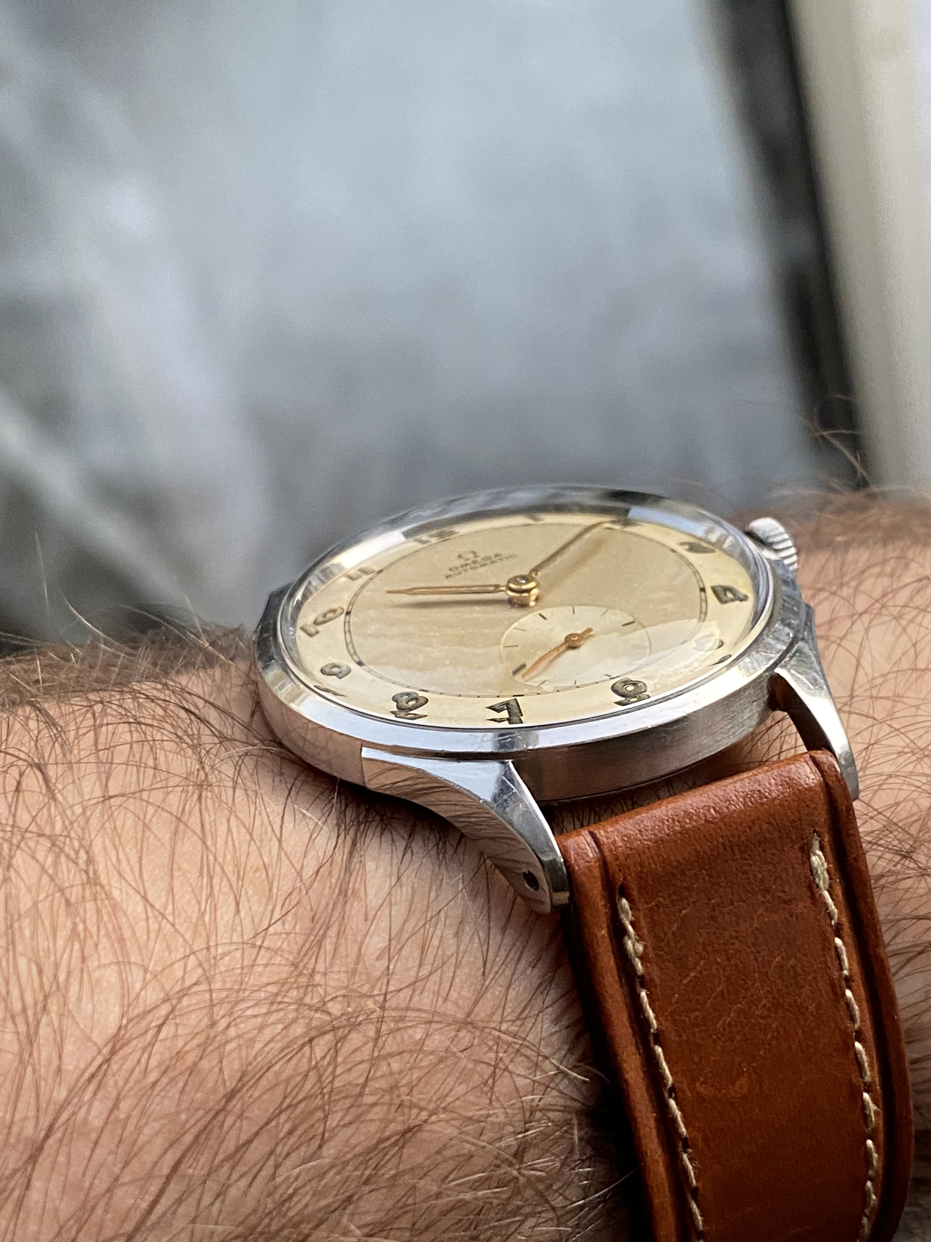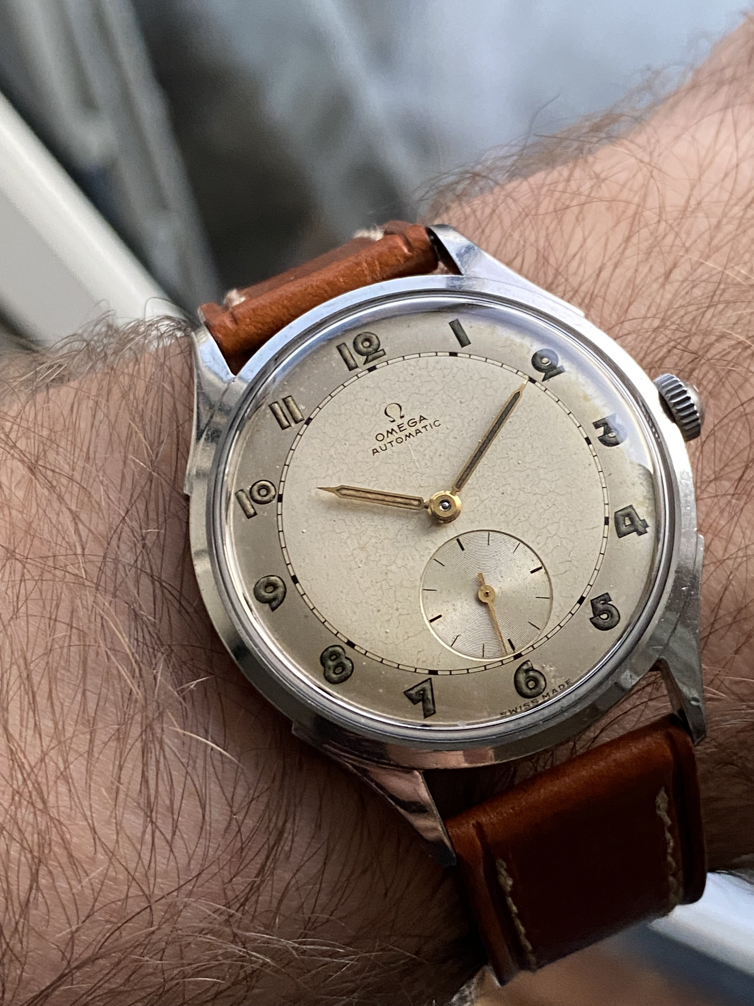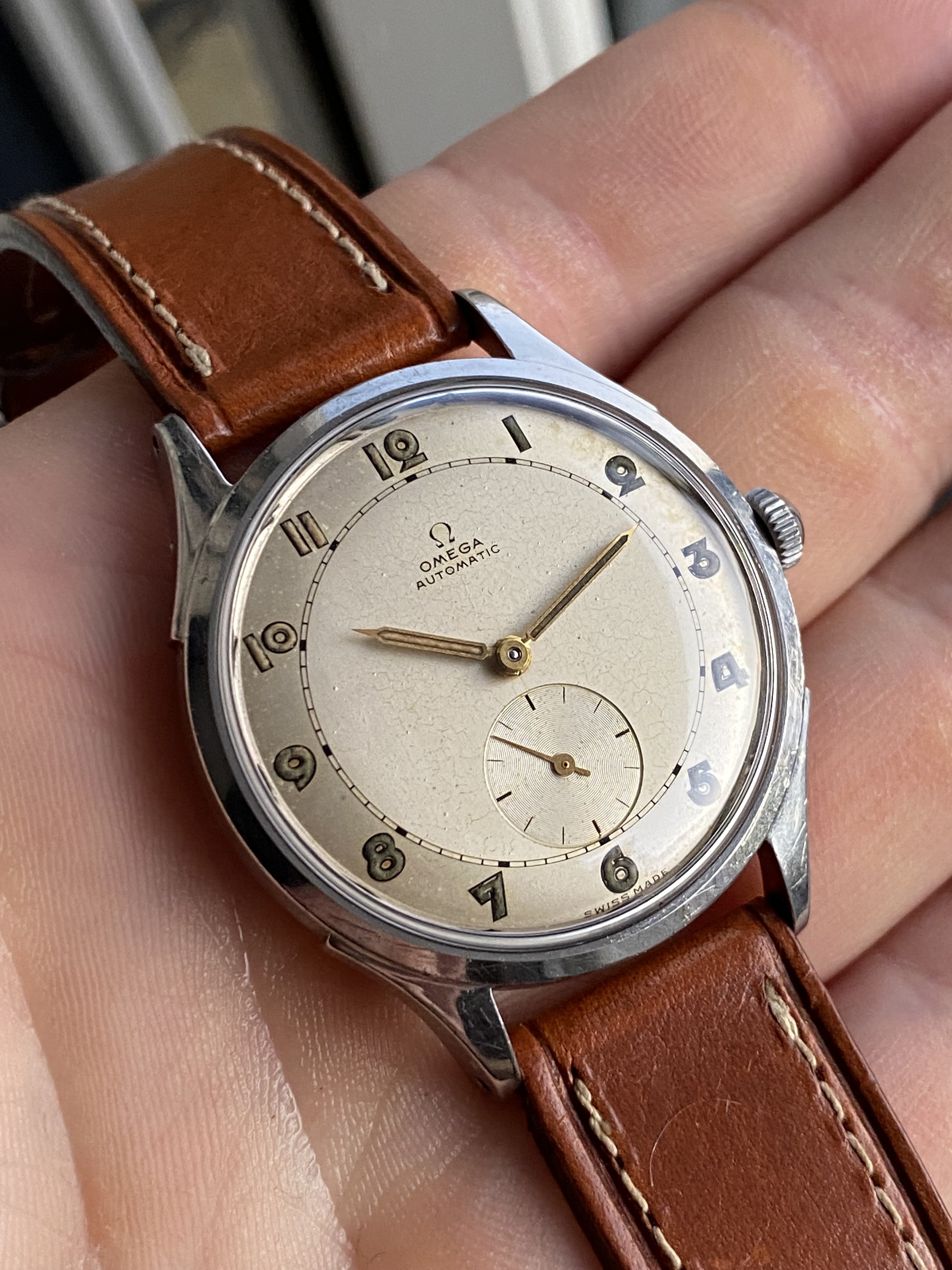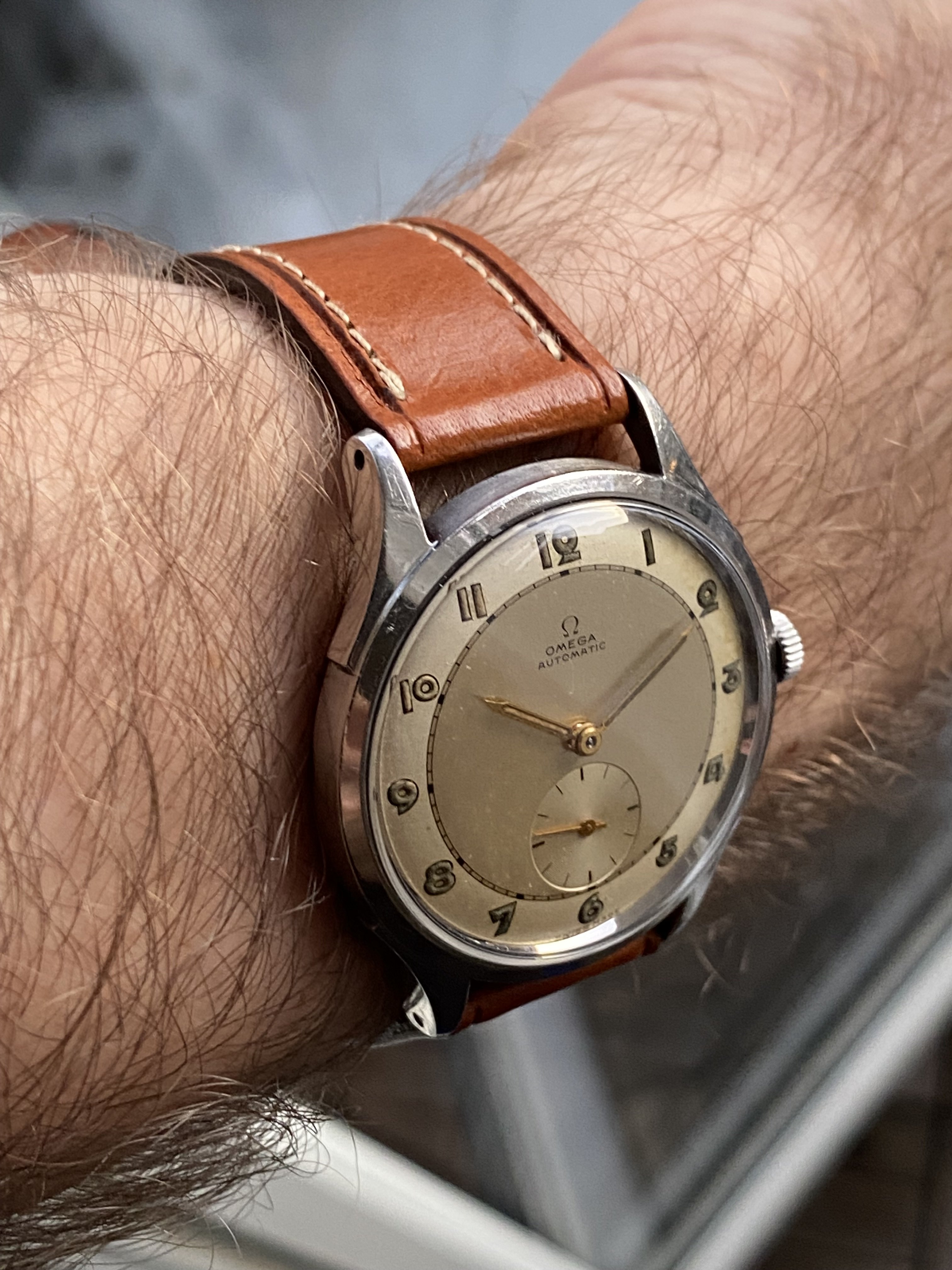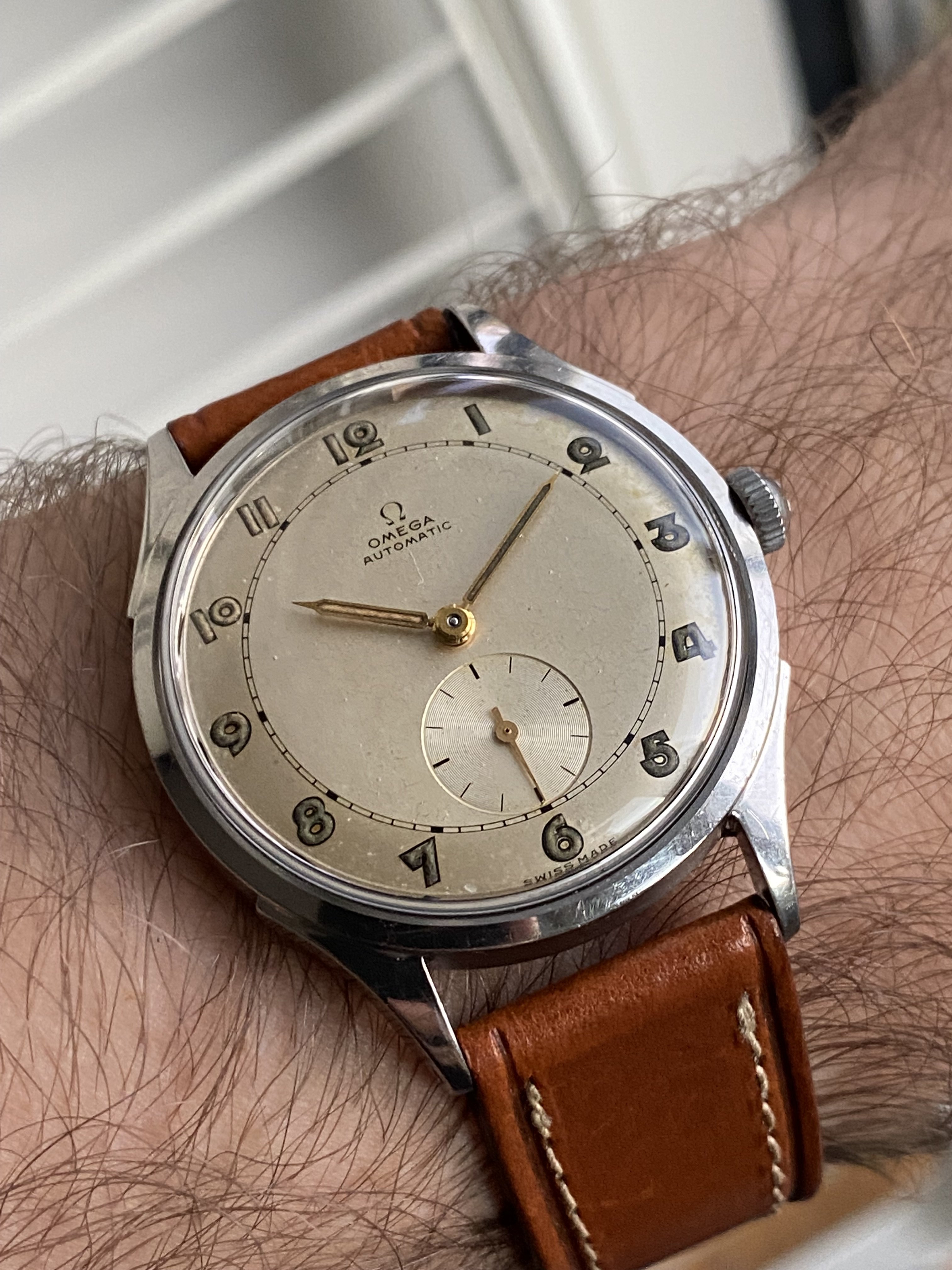 For sale is a gorgeous and freshly serviced two-tone Omega Automatic bumper ref. 2638-1 from circa 1949.