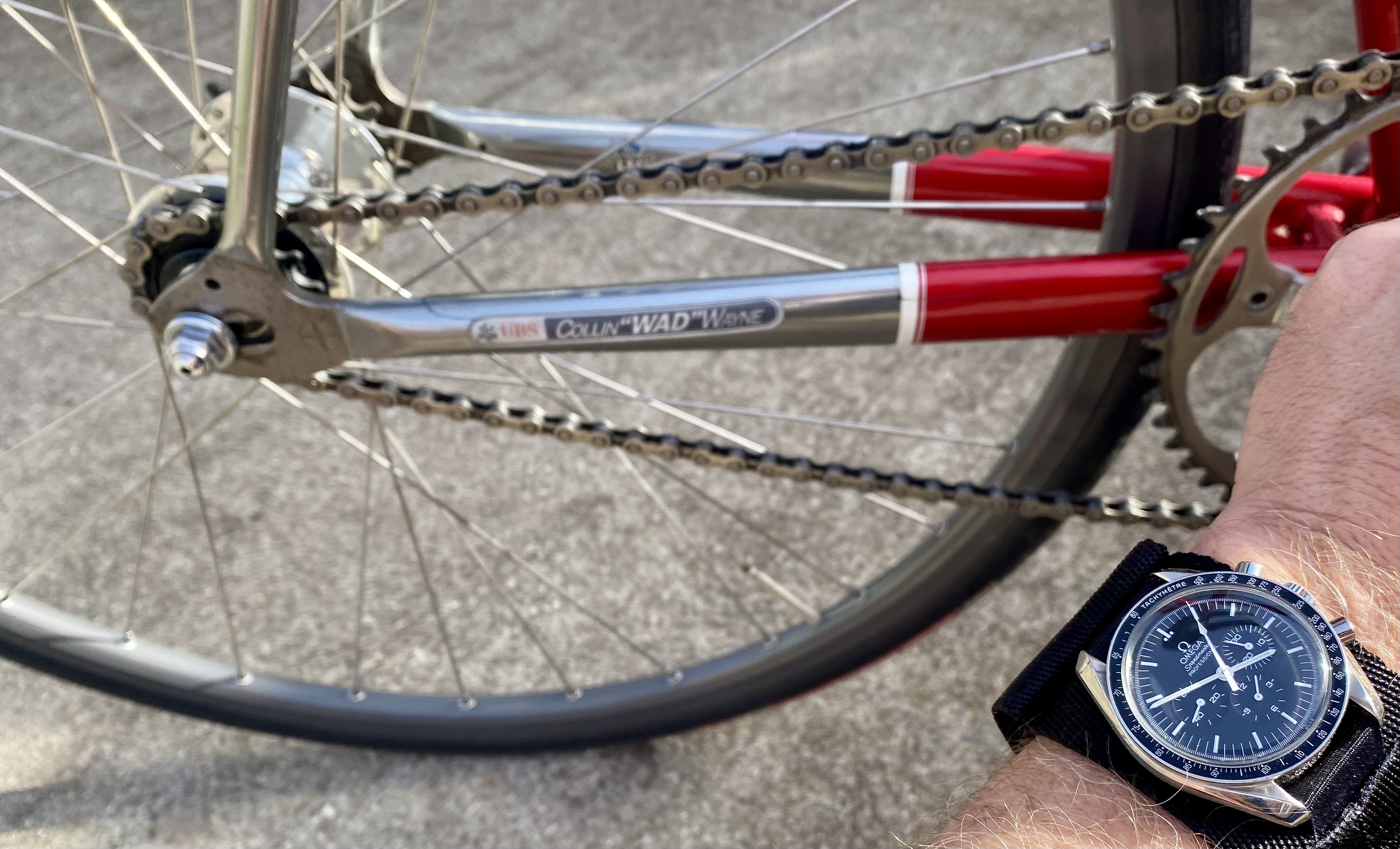 ·When I’m not working out with the DUNKIN’ BOX O’ JOE or the MWO book, I’m [recreationally] working out on one of my bikes…pictured below is my beloved 2010 Schwinn Sprint fixed gear which used to be my fixed gear time trialing bike back when I raced. The bike is heavily modified with Dura-Ace track drive train components…and I continue to ride it recreationally configured like this…like today where I did a 1:28:05 solo ride with some hillpeats. Also, you may notice our masters team sticker on the chain stay that’s placarded Collin “WAD” Wayne. I was nicknamed “WAD” by my masters teammates because during long road races and/or crits, I would usually blow my “WAD” fairly early in the race and be totally useless. 😁
