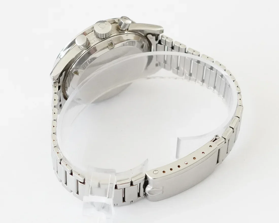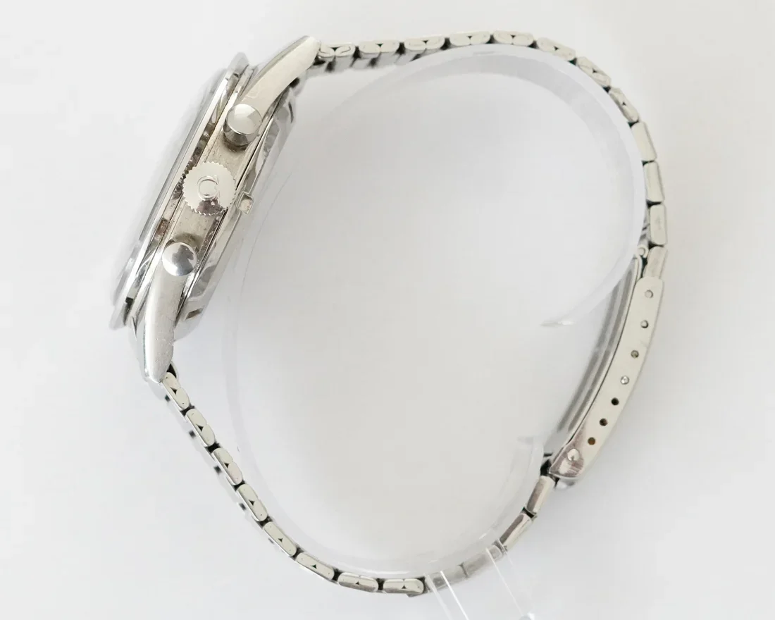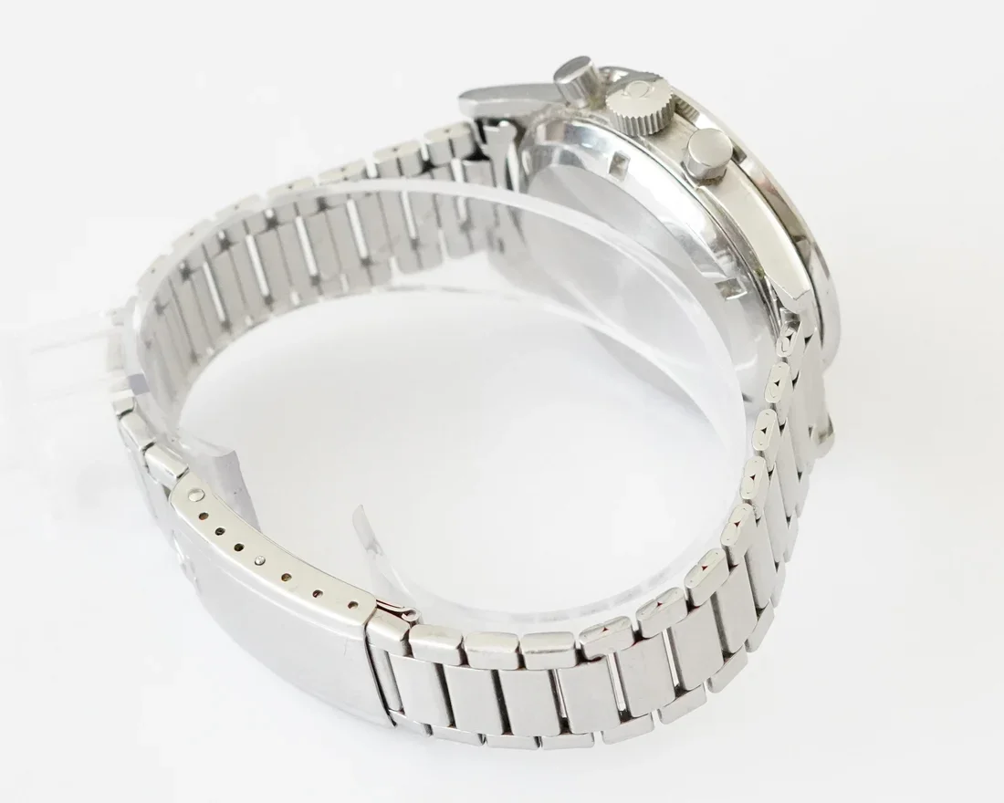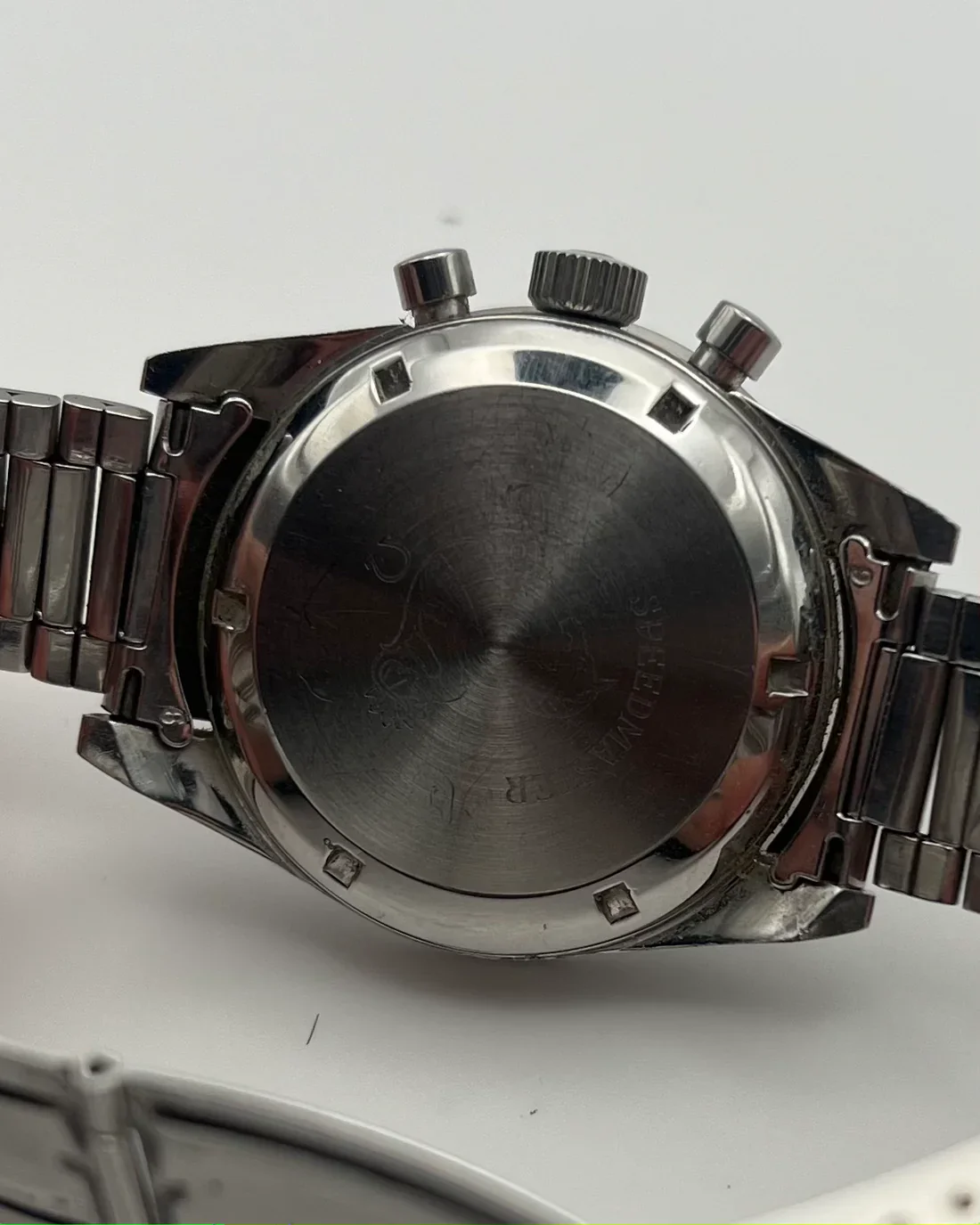 ·I just purchased this Ed White 105.003-65 after some research on Speedmaster 101. I love the NASA testing story, and I looked at the new Ed White 321 (which I think is a beautiful watch, and scanning Gene Cernan's watch to make it is a great detail), but my last Speedmaster sapphire sandwich was a bit heavy for my small wrist and sloshed around more than I like, particularly when on a leather strap. So I decided to get closer to the NASA story and hopefully a little lighter. I'm not looking to resell this one (it's going into the safe to be a 60th birthday present to myself in a few years), but I'd be interested in comments on whether I judged it correctly. I paid between Good and Very Good on the Speedmaster 101 price chart (a little to the Very Good side of middle). I haven't received the watch yet, but these are the pics with which it was marketed. No box or papers. #6 end links and #7912 bracelet. The outside of the case back isn't very clear in the pics, but the hippocampus logo looks like the most worn part of the watch from what I can see. The crown has 32 teeth (ridges?); I think an original crown may have only had 24. A few scuffs on the hesalite. That brings up an another question for the forum: If I have Omega service this, will they honor my requests to not polish it or replace anything visible (other than the hesalite), so not mess with the case, dial, hands, crown or pushers, or do I need to go to an independent watchmaker for that instruction to not get lost in a more corporate process?
