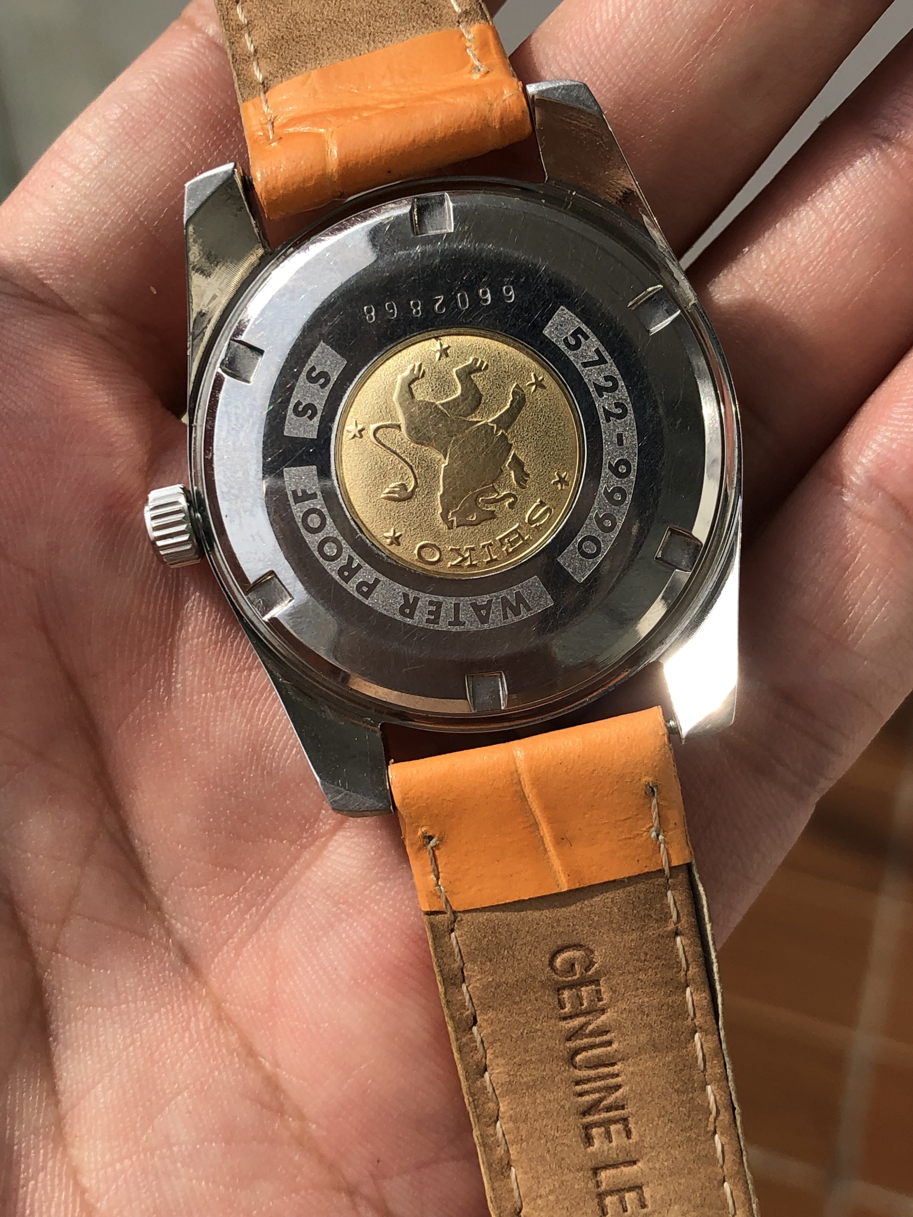 Caseback is also signed 5722-9990 matching with the dial. All letters on the case back are still clearly visible, the gold medalion is in good condition. Based on the Serial numbers on the back, it is probably from June 1966.