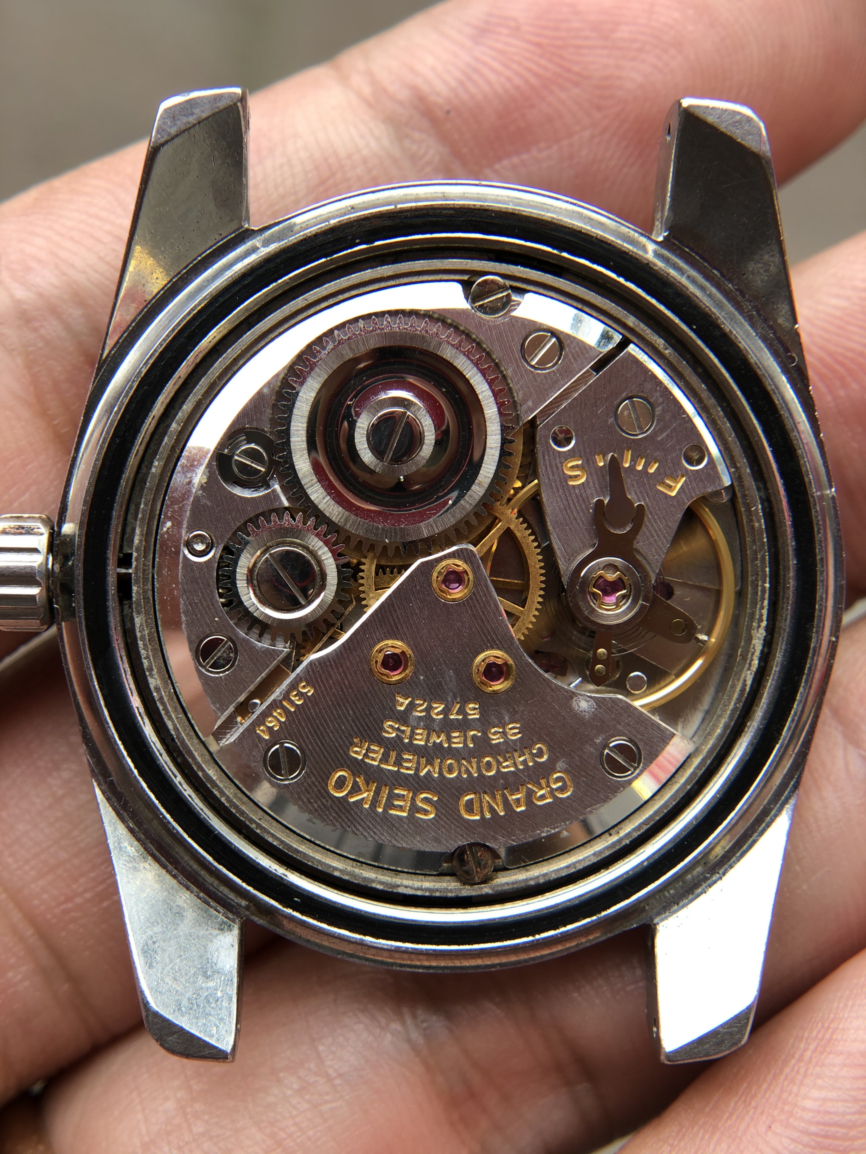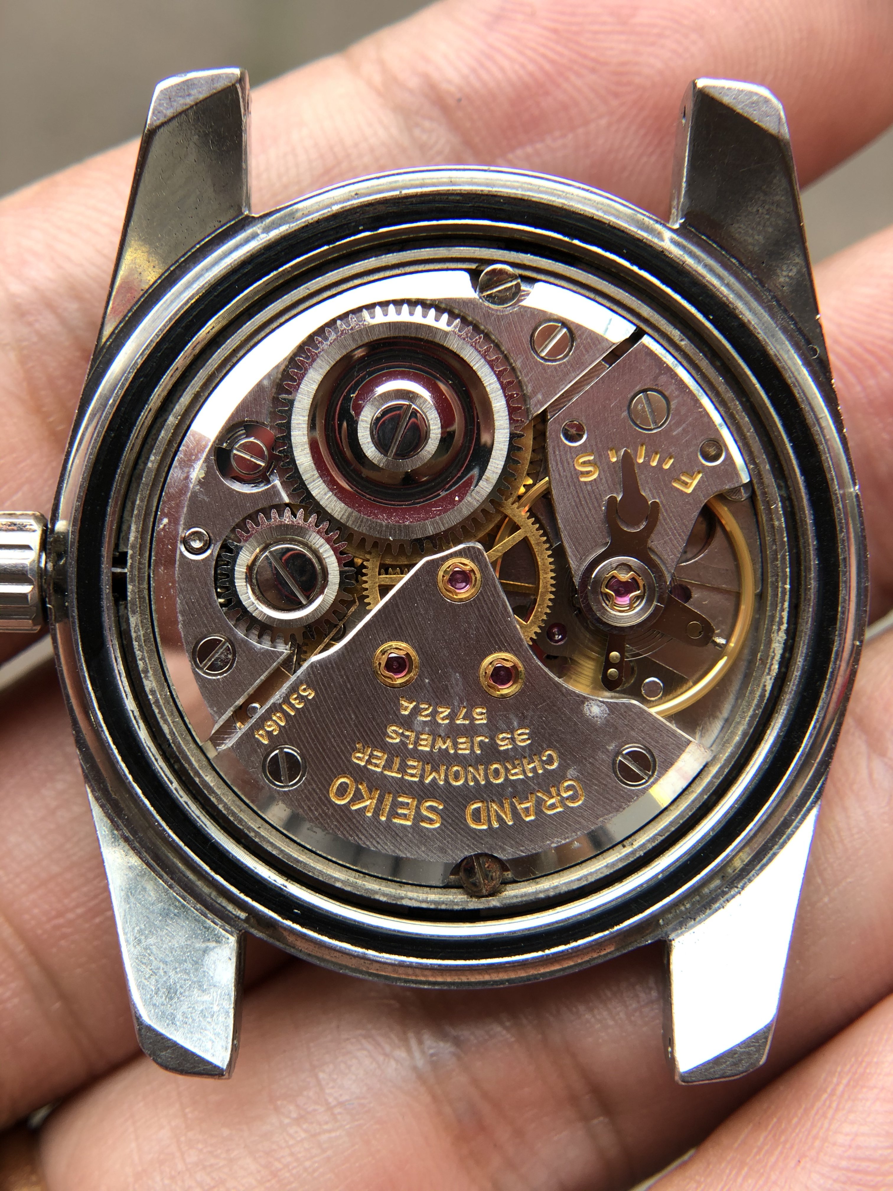 The movement is handwinding 5722a, unknown service but keeping time, winding smoothly. Untested for accuracy.