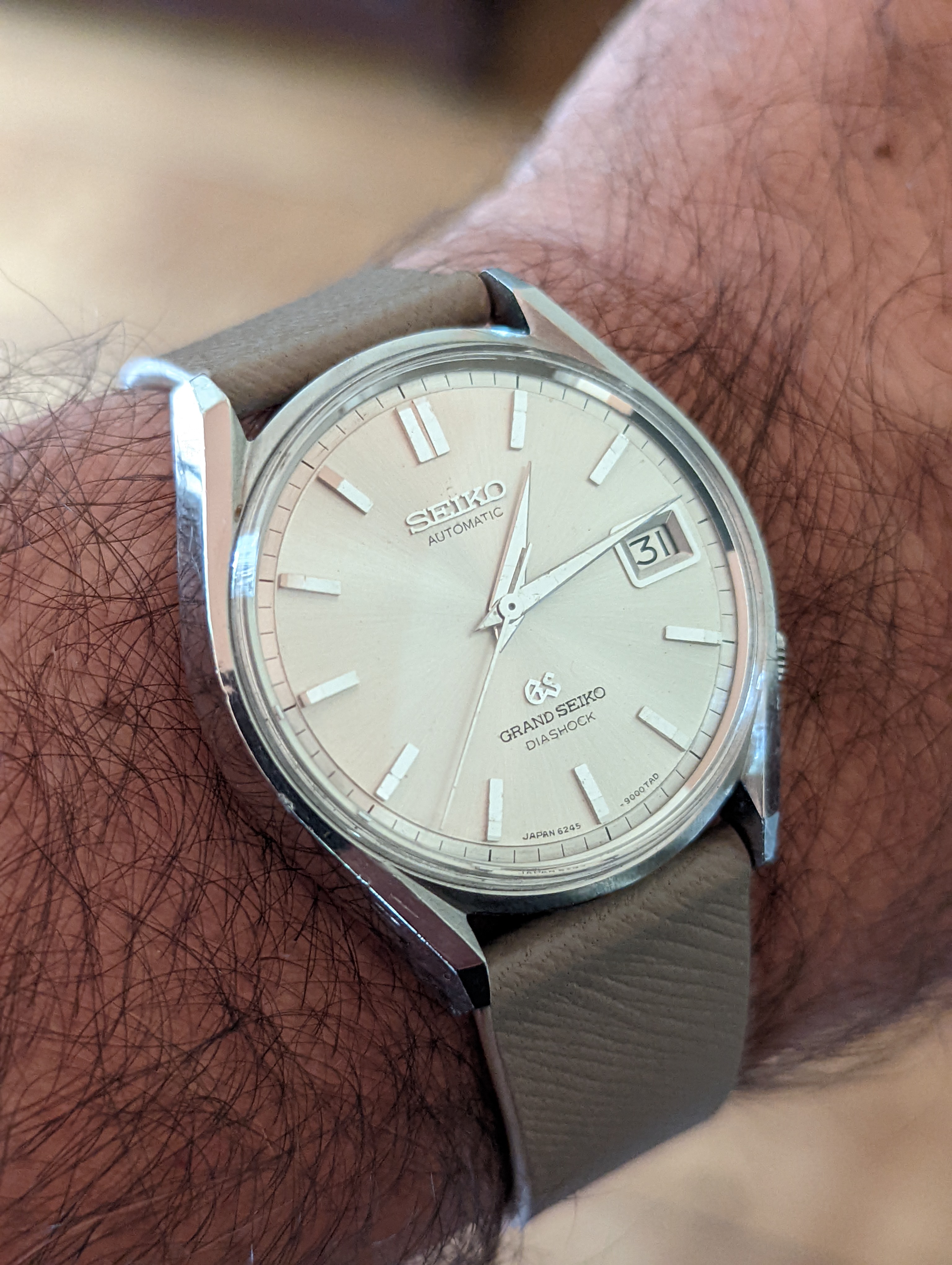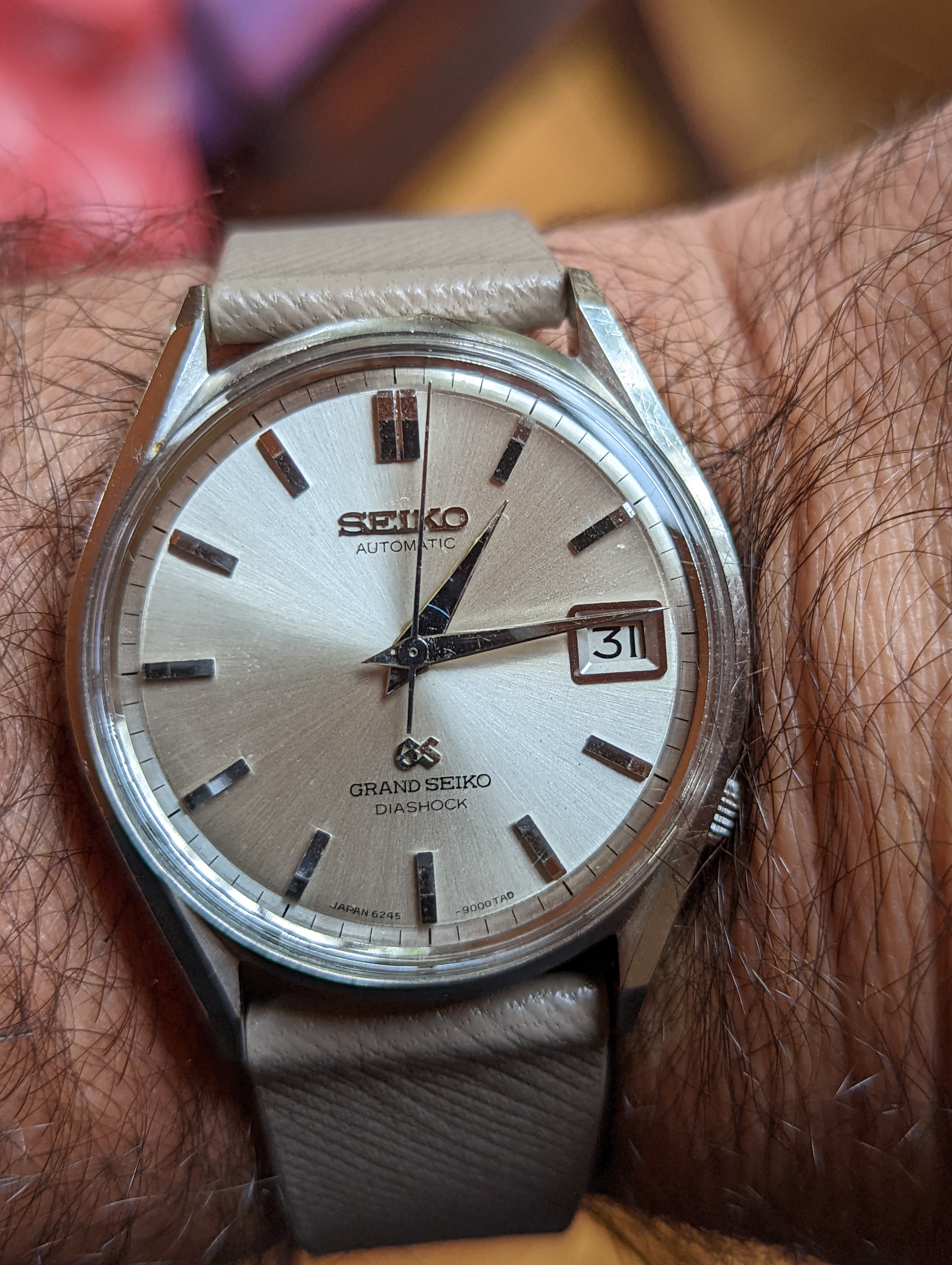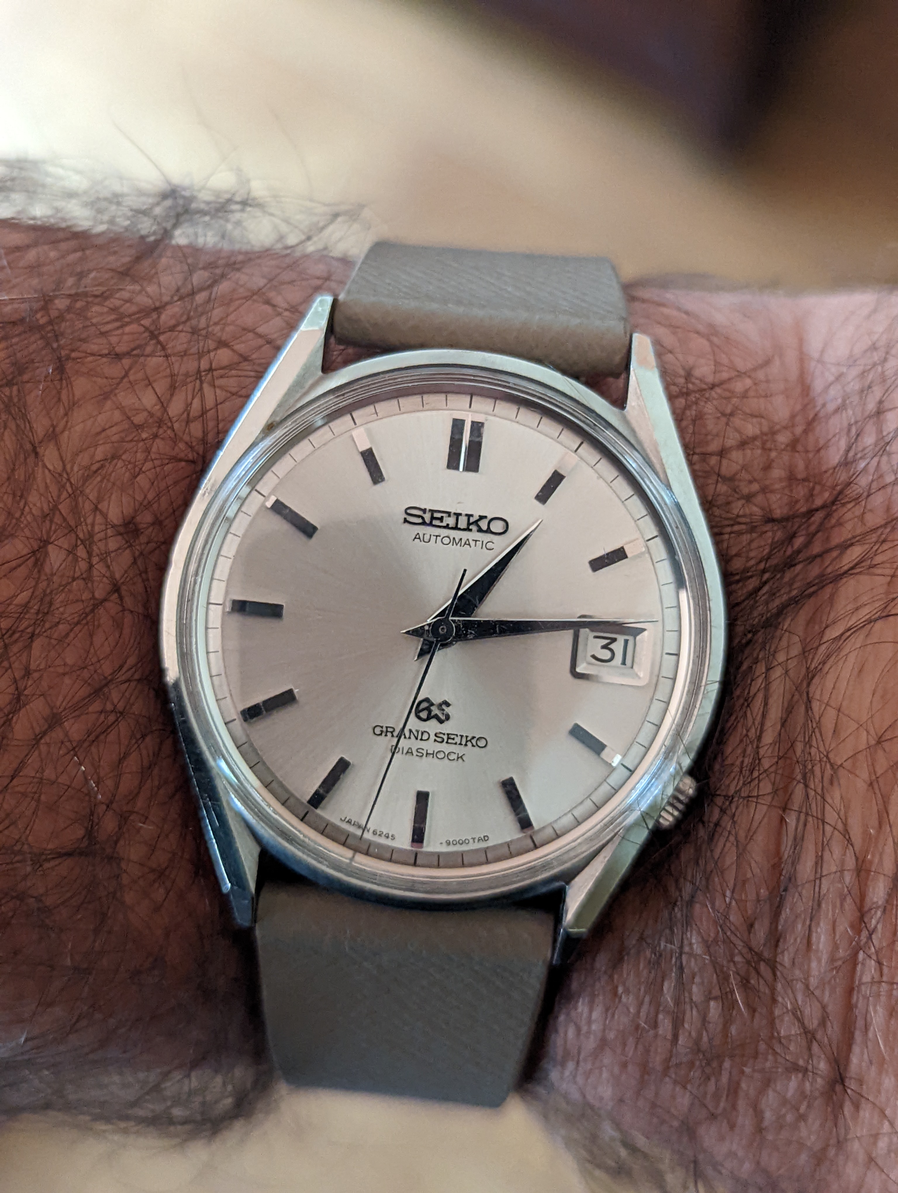 ·Doing a little consolidation this month and looking for a new home for my Grand Seiko 6245-9001 from April 1967. Made for just over a year in 1966-1967, this is the rare bird that inspired so many of the new Grand Seikos, including the Historical Collection reissues (SBGR models) and Seasons Collection (SBGA models). The angularity and play of light on the dial and plots make this one of the coolest Grand Seikos IMHO. I really love the aesthetics of this watch, but for whatever reason I don’t find myself wearing it often, so I’m hoping one of you nice people might like to have it.