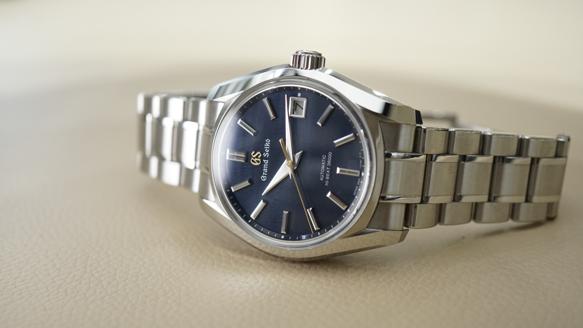 The dial is based off of Japan's Autumn evenings "Shubun" and is a beautiful navy blue textured dial with a gold seconds hand that accents the dial. The movement is the Hi-Beat 9S85 caliber with great accuracy, I've gotten between +3 to +5 per day.