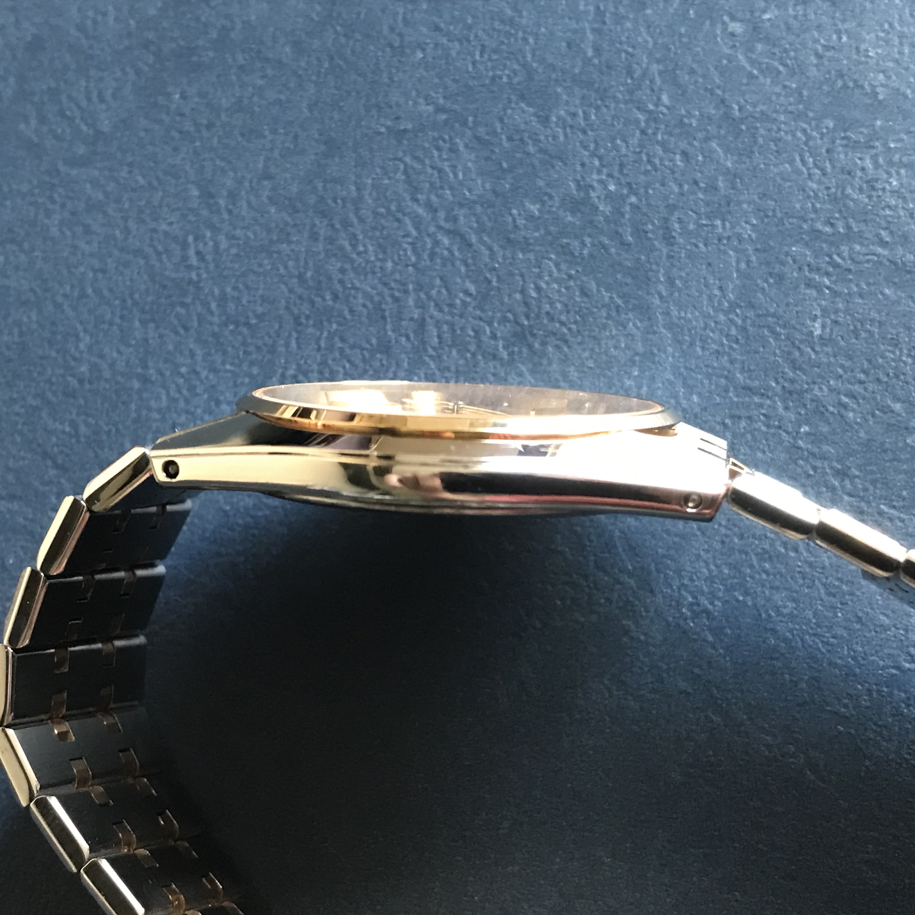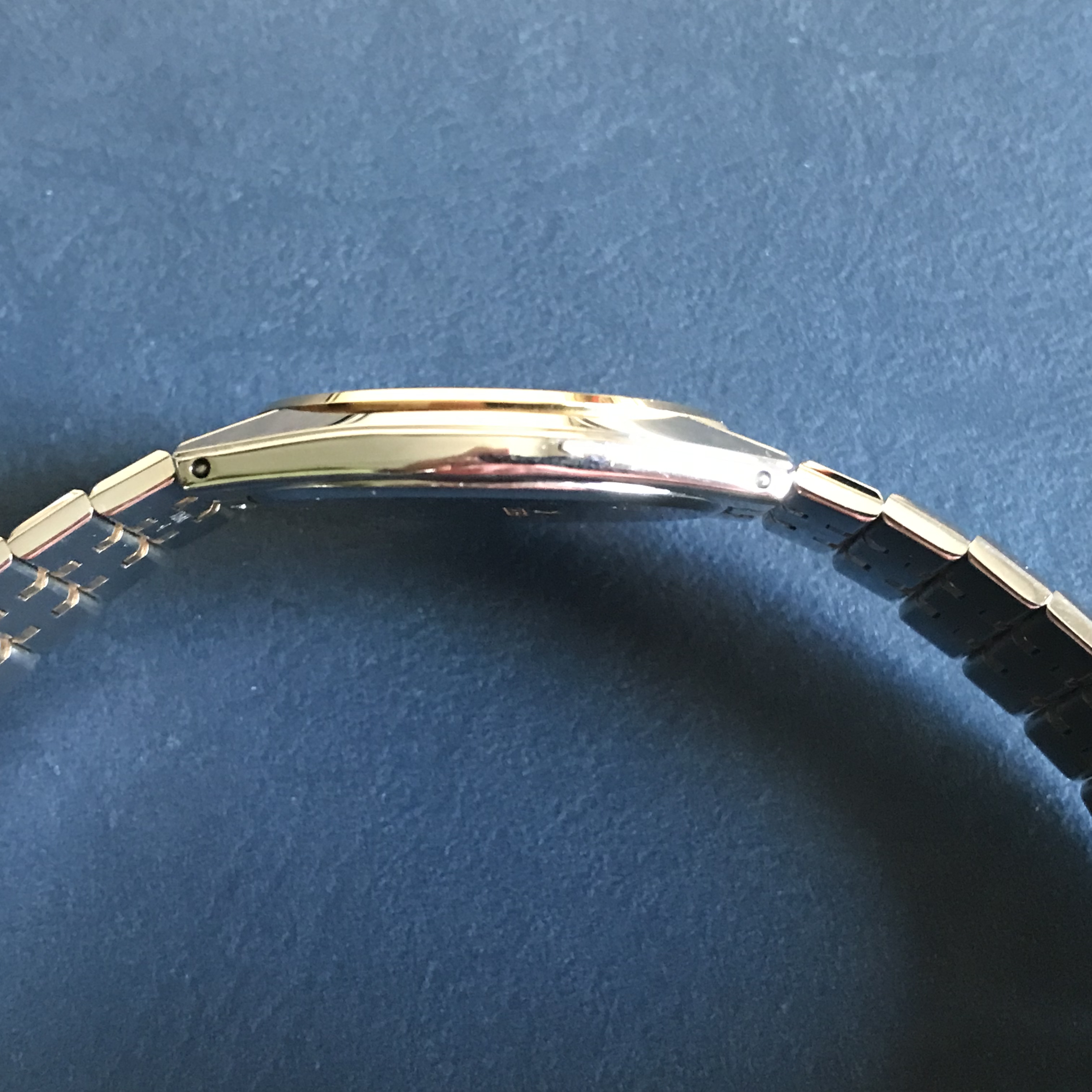 ·A great watch for office or formal wear, thin design, fits easily under the shirt cuff. In very good condition, with the typical swirls from use. Worn sparingly by me over the 3.5 years I have owned it. In-house quartz movement, battery replaced this month. Integrated bracelet fits a 7.5 inch wrist.