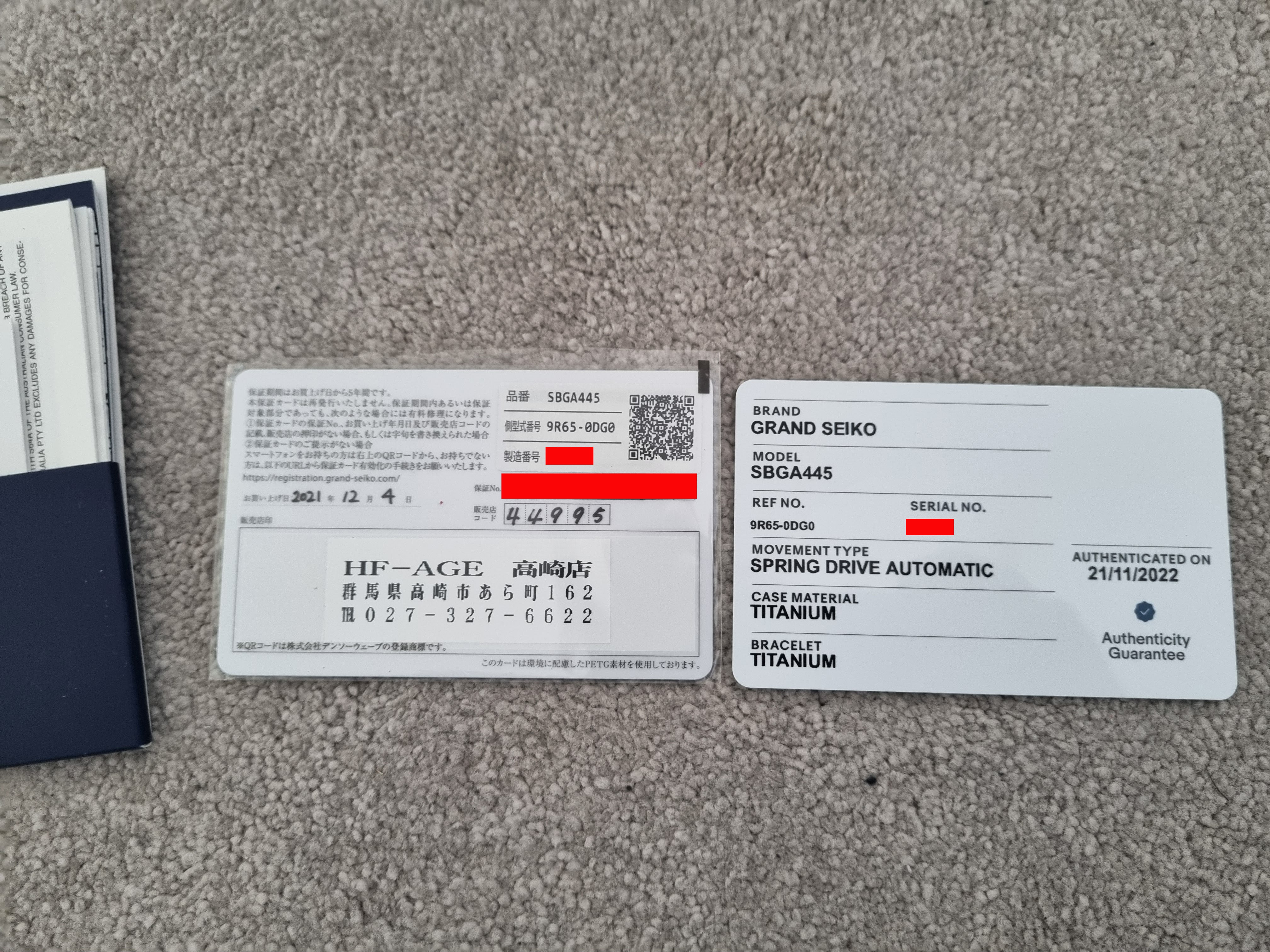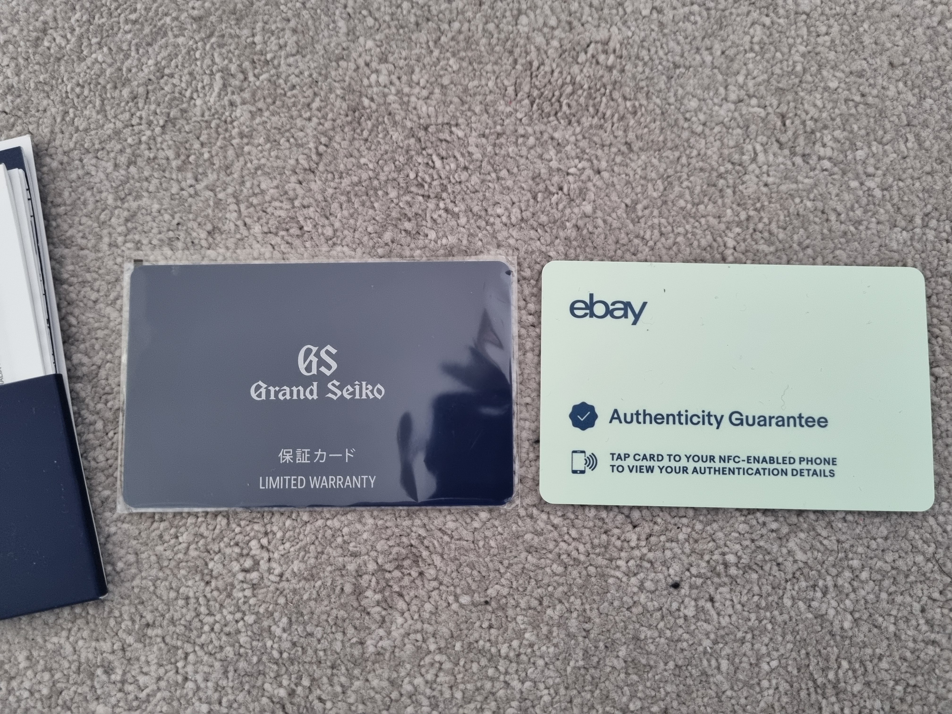 The watch comes with its original box and warranty papers, manual, all spare links and Grand Seiko cleaning cloth. I am the second owner and also pictured is the eBay authentication guarantee card I received when I bought it two years ago (it will obviously undergo authentication again to the new buyer).