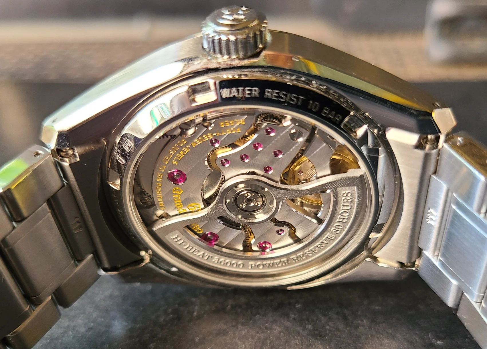 The exceptional Caliber 9SA5 is a high-beat movement operating at 36,000 vibrations per hour with an impressive 80-hour power reserve. Its Dual Impulse Escapement and twin-barrel design enhance efficiency, while the finely finished surfaces echo the rippling waves of the Shizukuishi River, seamlessly blending technical mastery with artistic elegance.
