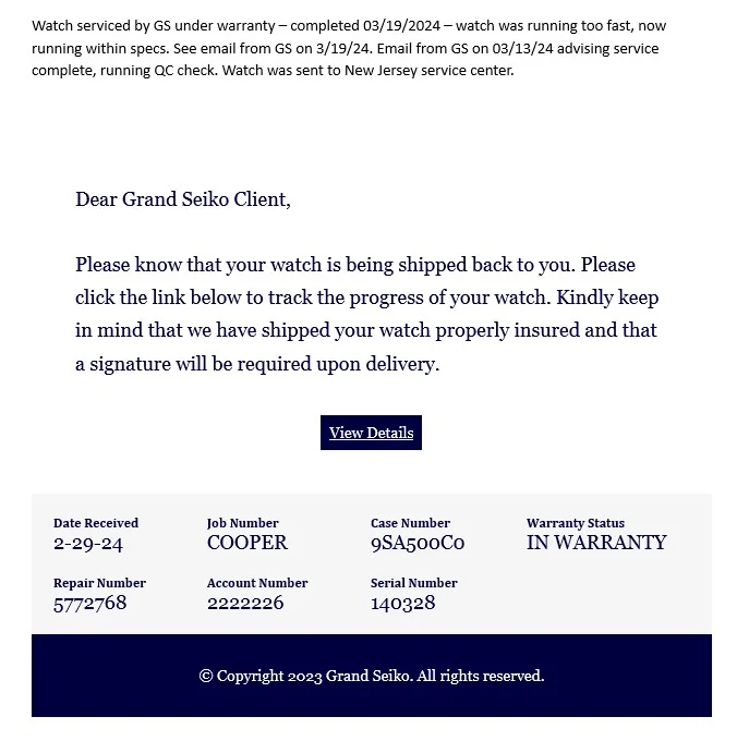A bonus is a recent service from the Grand Seiko New Jersey service center. I will also include an excellent condition blue Alligator strap and generic steel pin buckle at no charge.