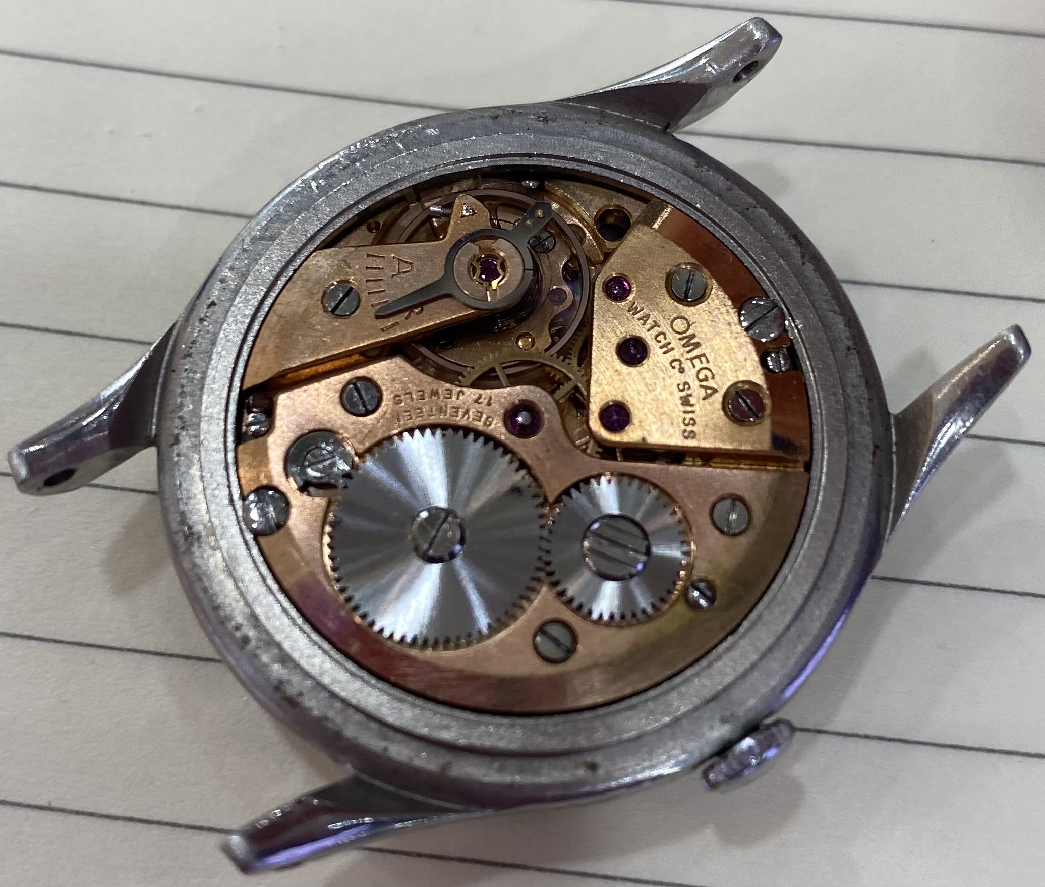 I’ve always had an interest in watches since I was a boy and my grandmother must have picked up on this because around the time I was a teenager in Toronto, Canada she gave me Grandpa’s old Omega watch. I wasn’t aware of the watch until she handed it to me as he had passed before I was born. I was always flattered and honored that the watch ended up in my hands and I think Grandma knew it had gone to a good home. I kept the watch in various bedside drawers for the last 25 years and would take it out to admire it from time to time. I never once dared to wind it though for fear of breaking it and I always intended to have it serviced and brought back to life.