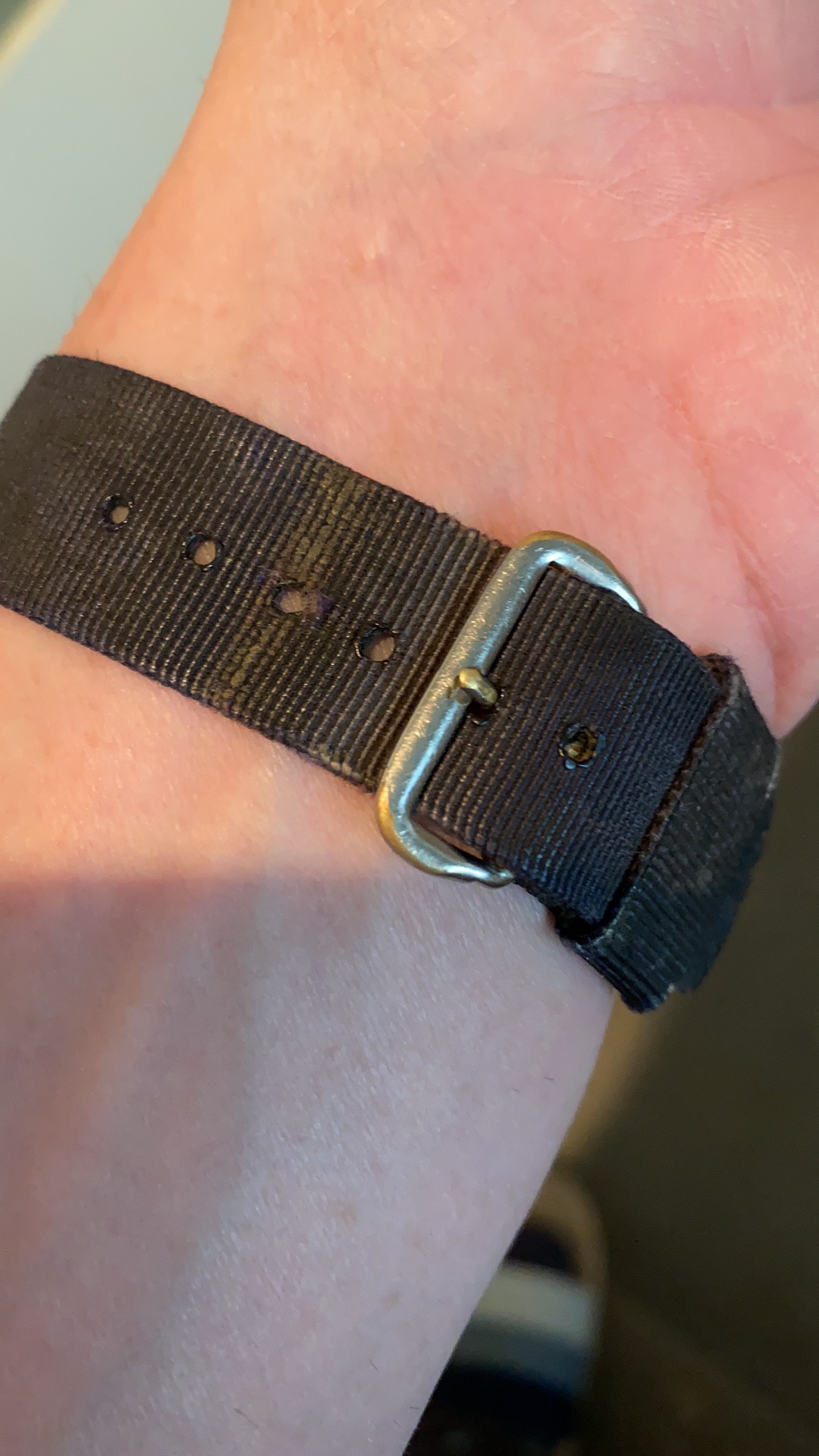 I remarked to my mother once that Grandpa must have had very small wrists because I could see from rust marks on the nylon strap indicating which hole was used, that whoever wore it last was not a large person. She told me she remembered Grandma wearing the watch after Grandpa’s passing and so that explained that. She also told me that while Grandpa was a commanding presence he didn’t have the same physical stature as myself and that he wasn’t a tall man. I never would have learned this if it weren’t for the rust markings on that cheap little nylon strap Grandma put on Grandpa’s old watch.