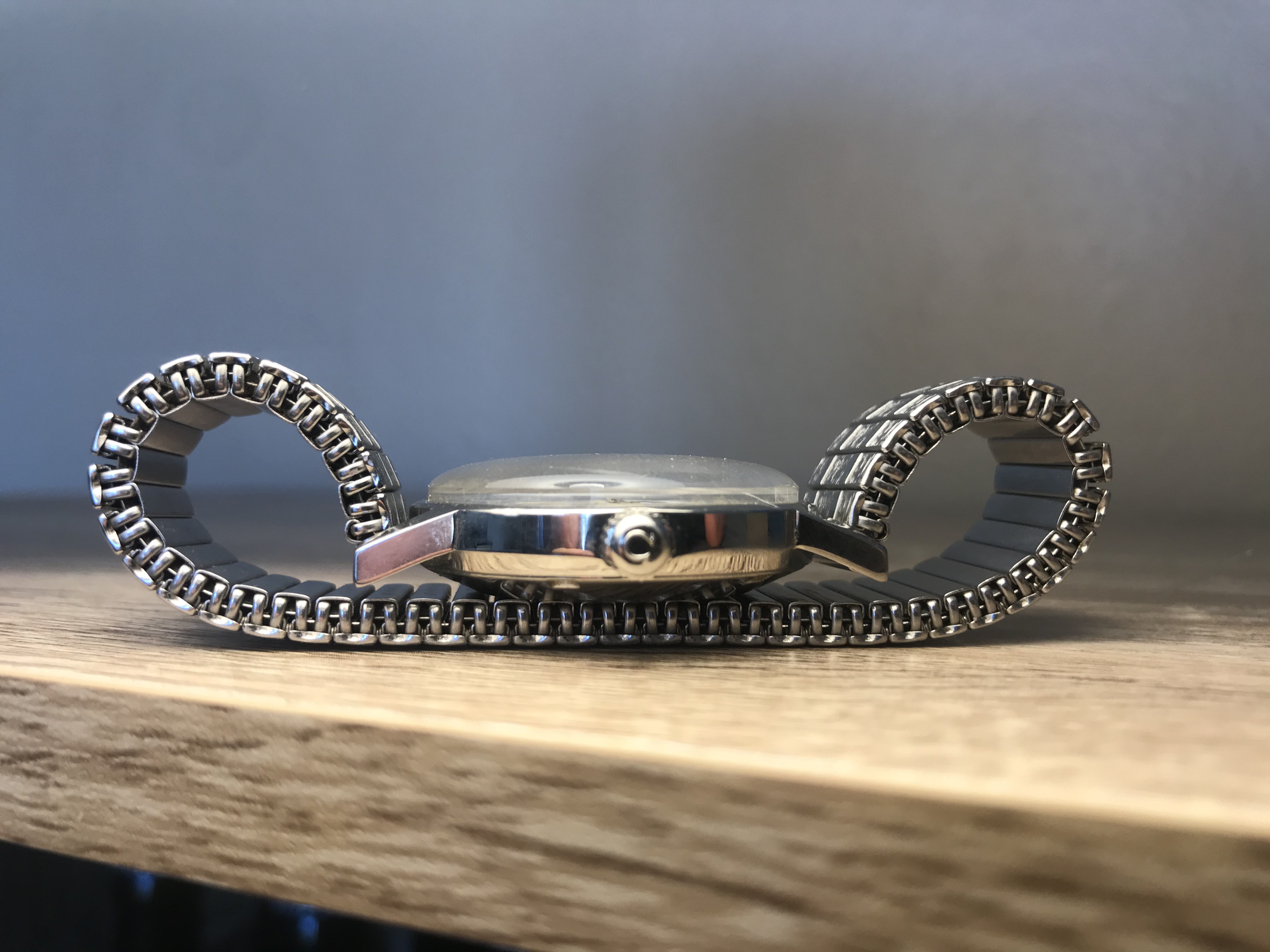 There is a stainless steel wristband which I'm pretty sure is not original.