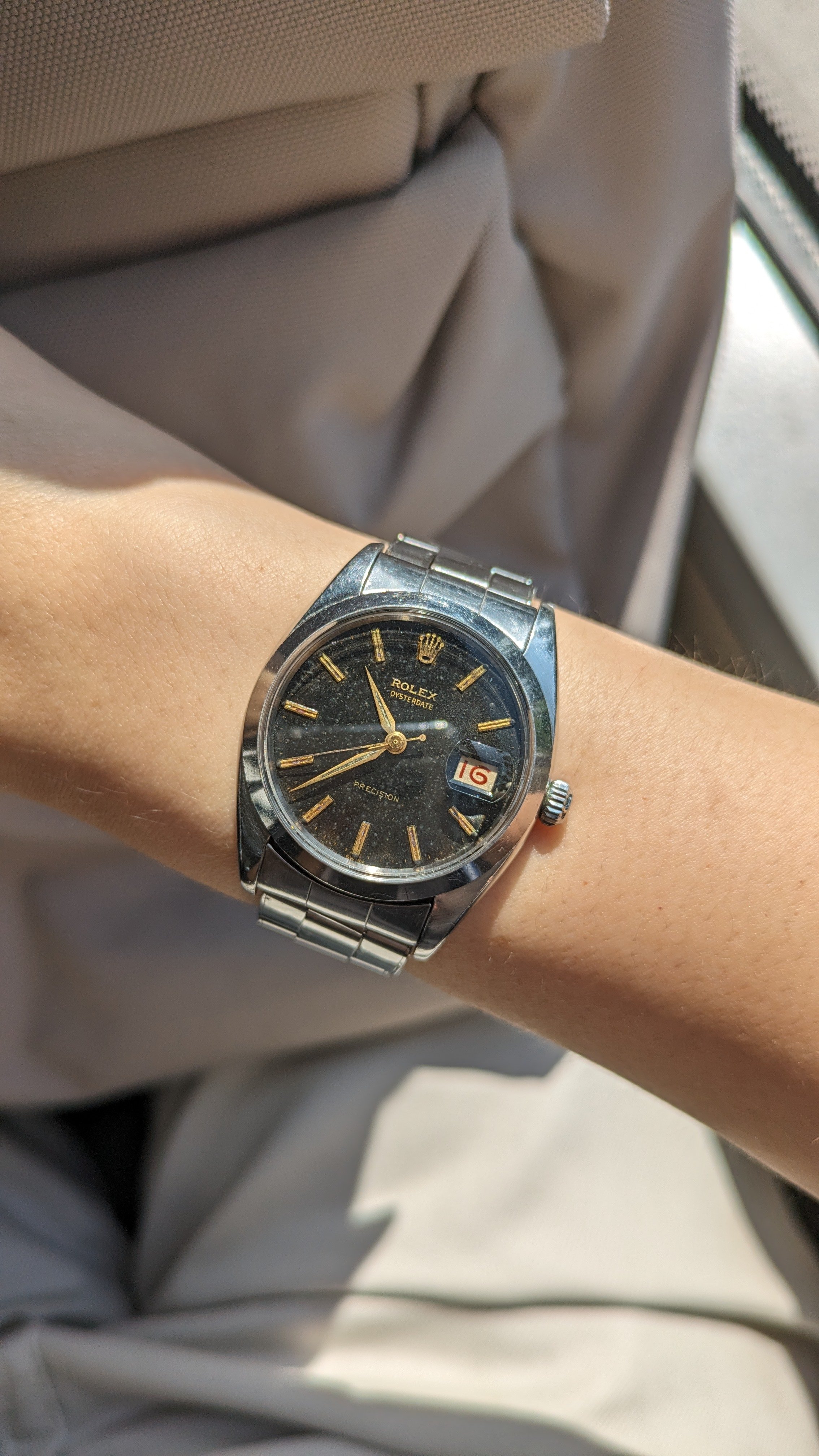 The watch is not working and I don't know how to open the case back, but from what I can see, at least the date lettering seems right and the markers look aligned. I'd like to seek more input from the group here, is there anything else you can conclude from the appearance? Happy to supply more photos if needed (except for the movement). Thanks!