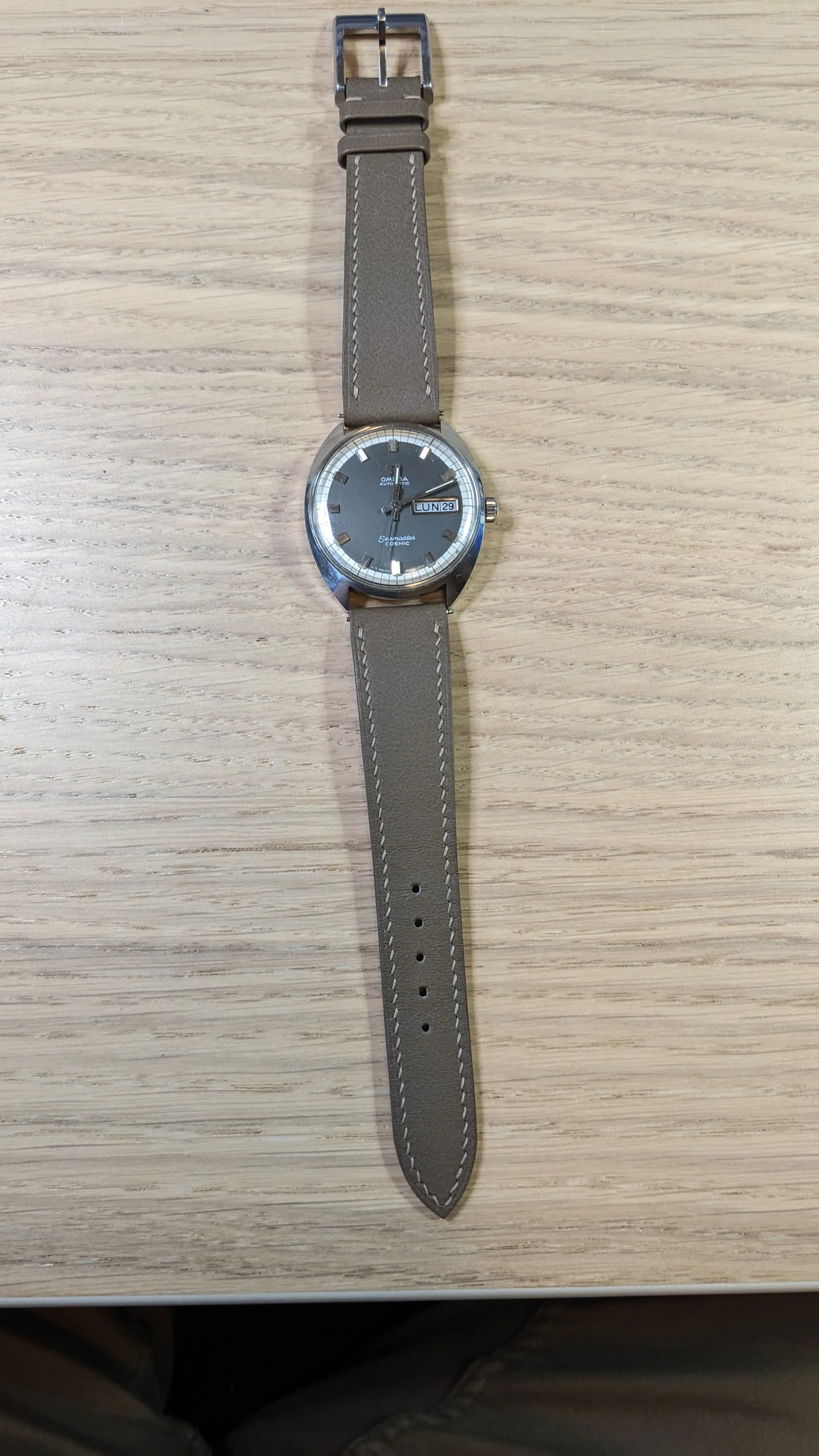 Posts 415 Likes 1,941 CalgaryJim ·Nov 8, 2024 My first purchase from a member here and I'm really happy with the watch's condition and the communication with Chris. I just happen to have had taupe 19mm straps and they work well with the dial colour. Jim