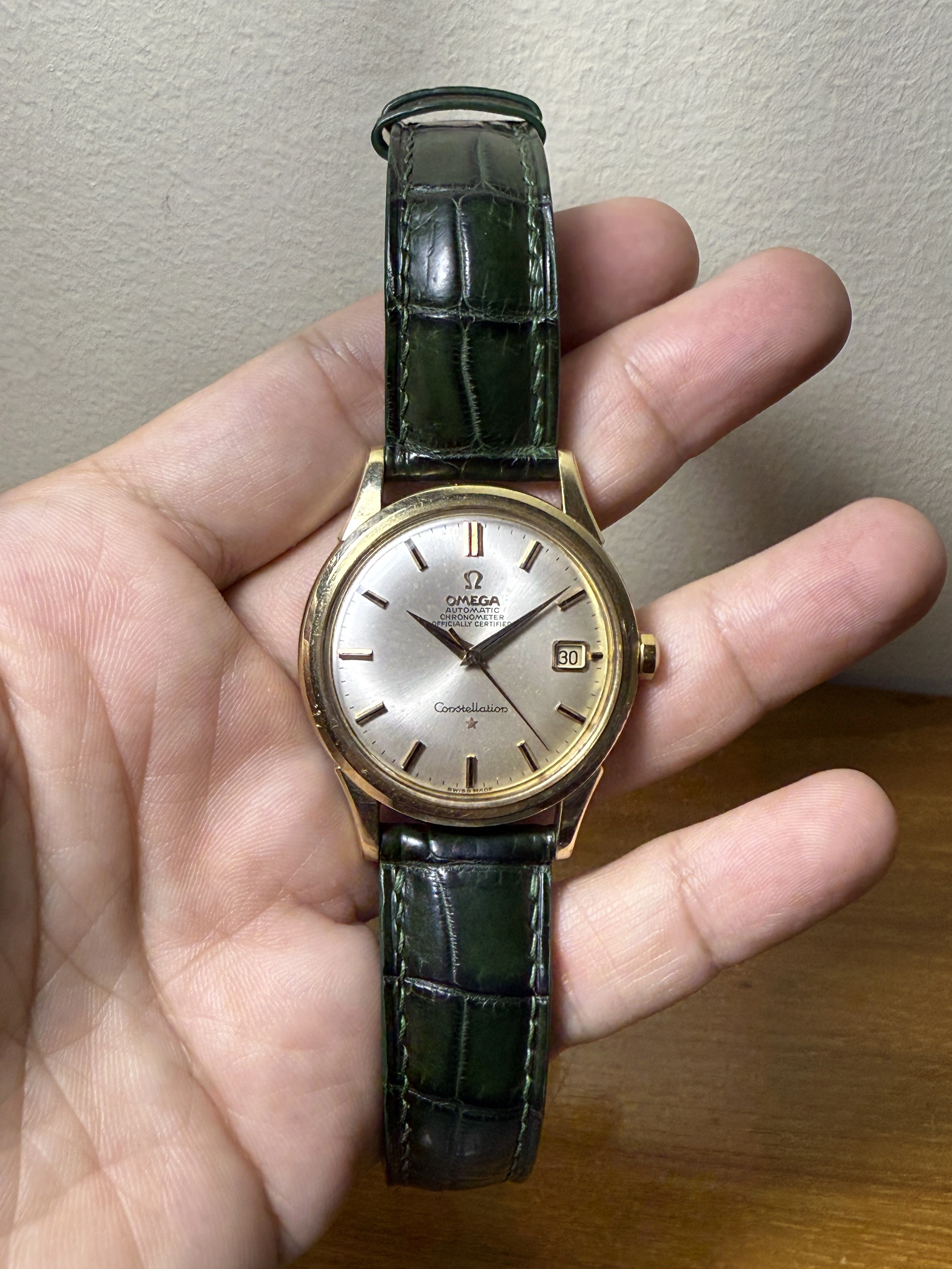 ·I think it’s a great combination for casual occasions and sunny weekends. I love the juxtaposition of luxurious alligator with a playful colour, as well as a serious gold watch with the same.