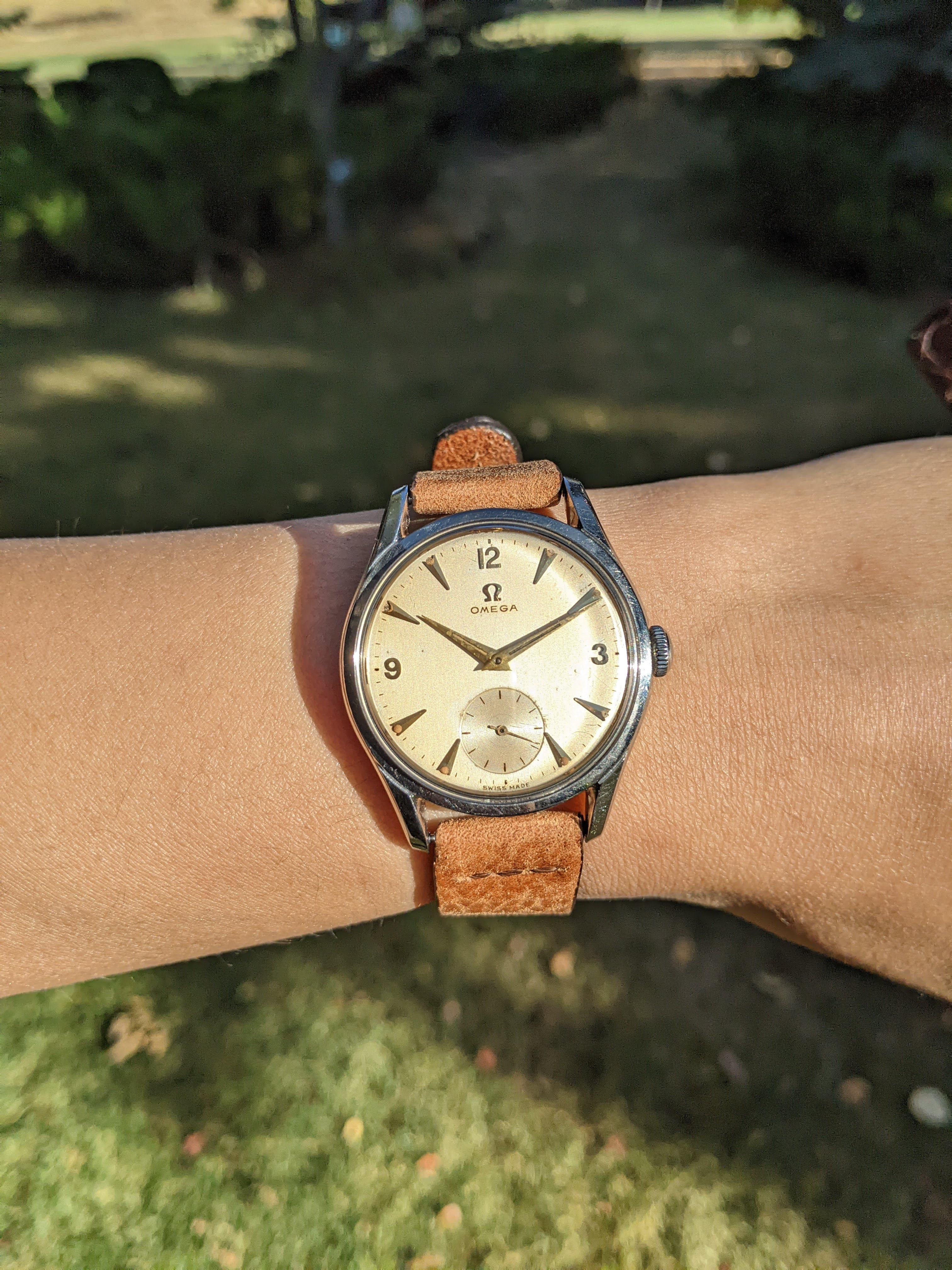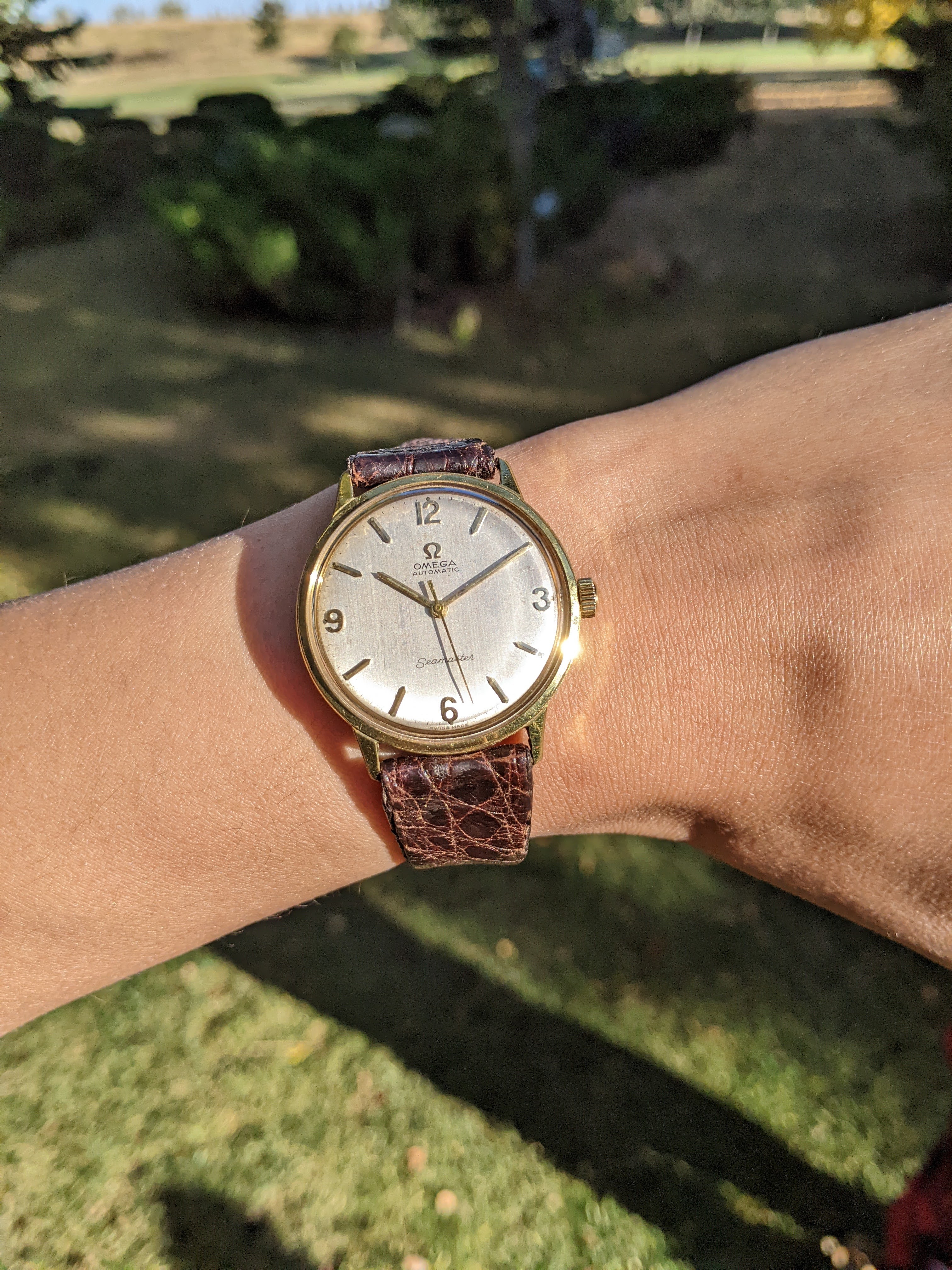 My 1965 165.002 Seamaster I've owned for about 5 years. This one's in a bit rougher shape but it's the watch that got me into Omega. Purchased from a local hobbyist watchmaker, it still keeps good time and looks great in my opinion.