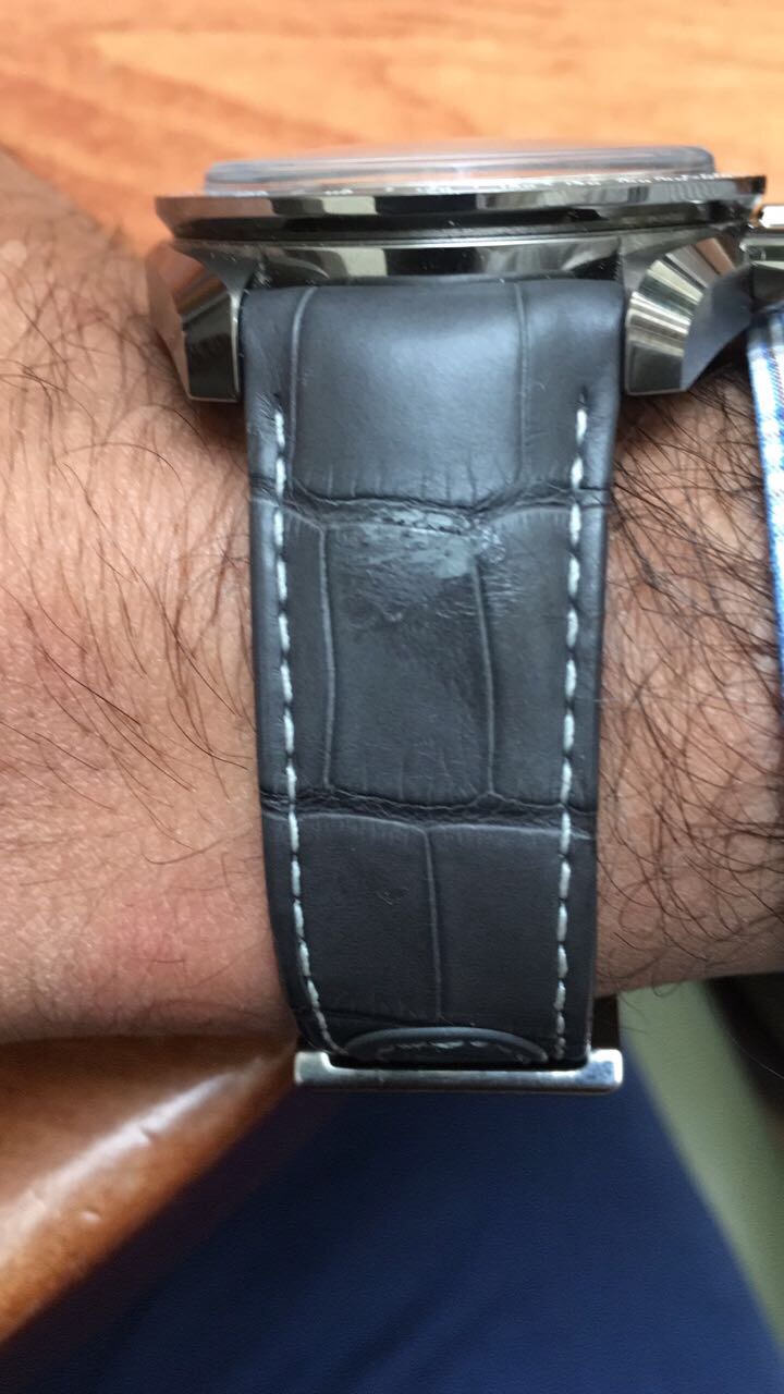 Watch strap comes with the omega buckle is in 85% due to a small blemish that i've tried to capture in the pics and is not really noticeable unless looked at directly.