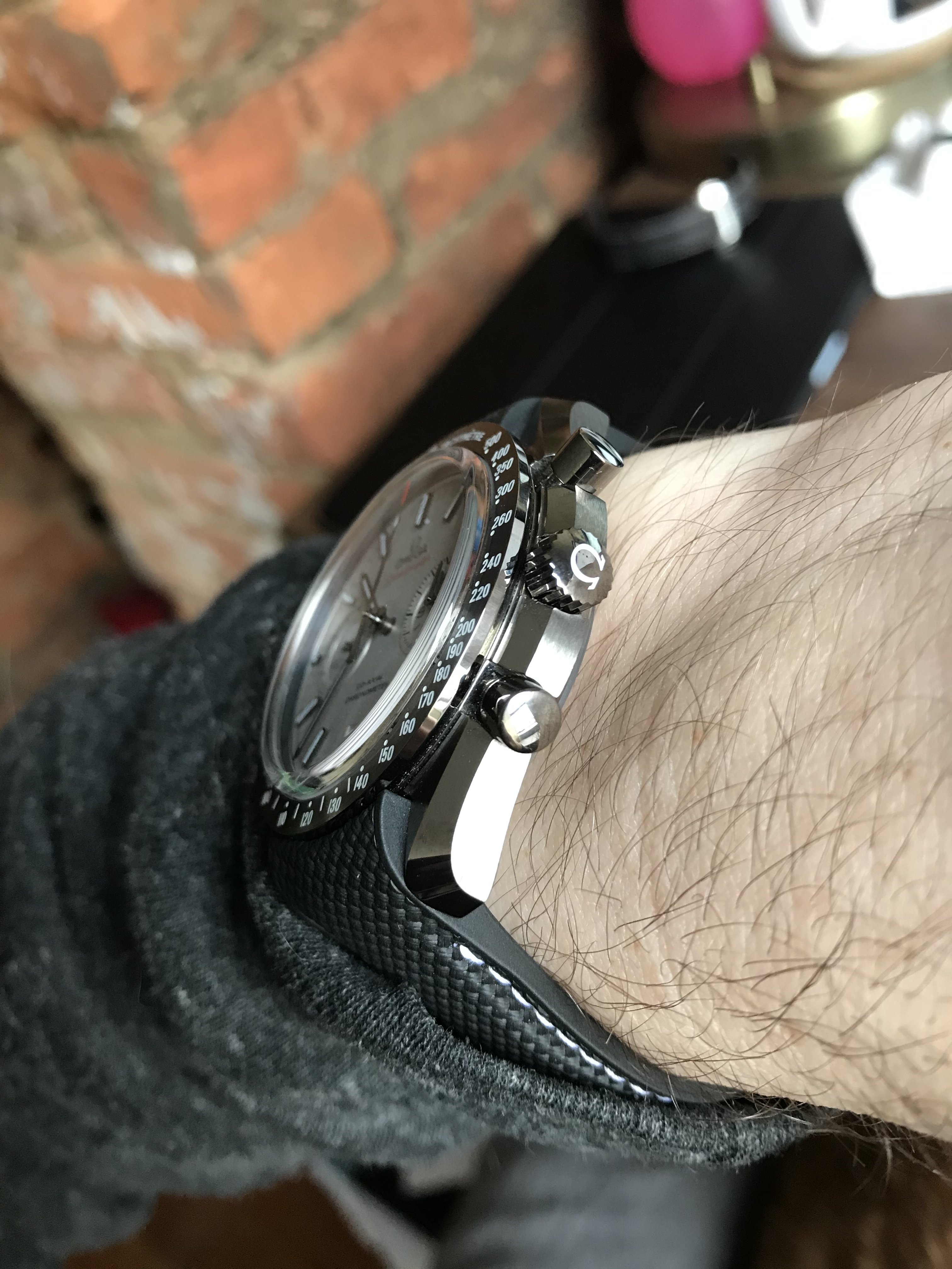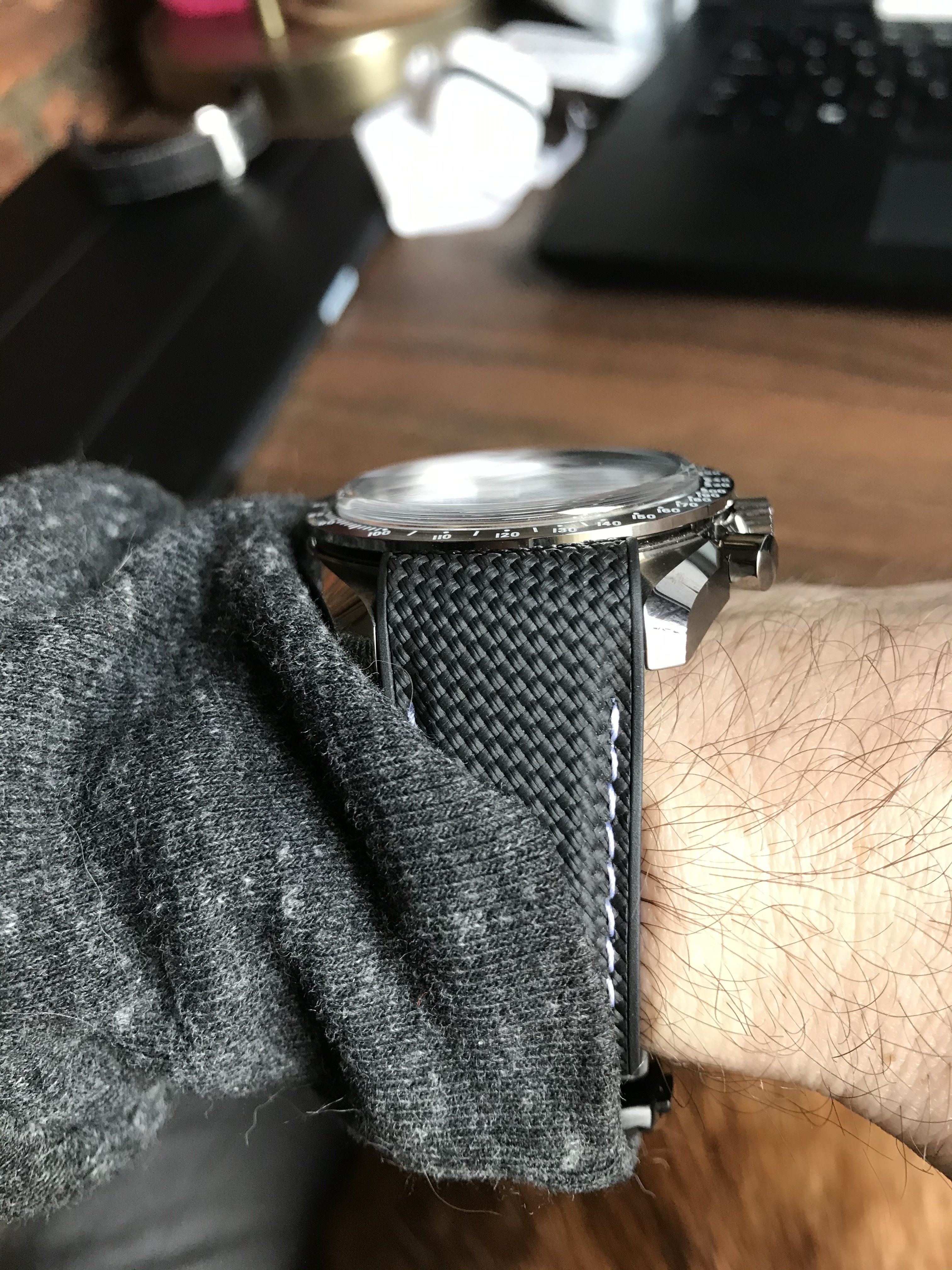 I like how this watch can look good on so many different straps! Of course the black is the most universal but I think it looks great on brown and blue, leaning more towards the blue. I think I would like to see it on a charcoal/grey strap. I think that it would just be the cleanest combination for me personally.