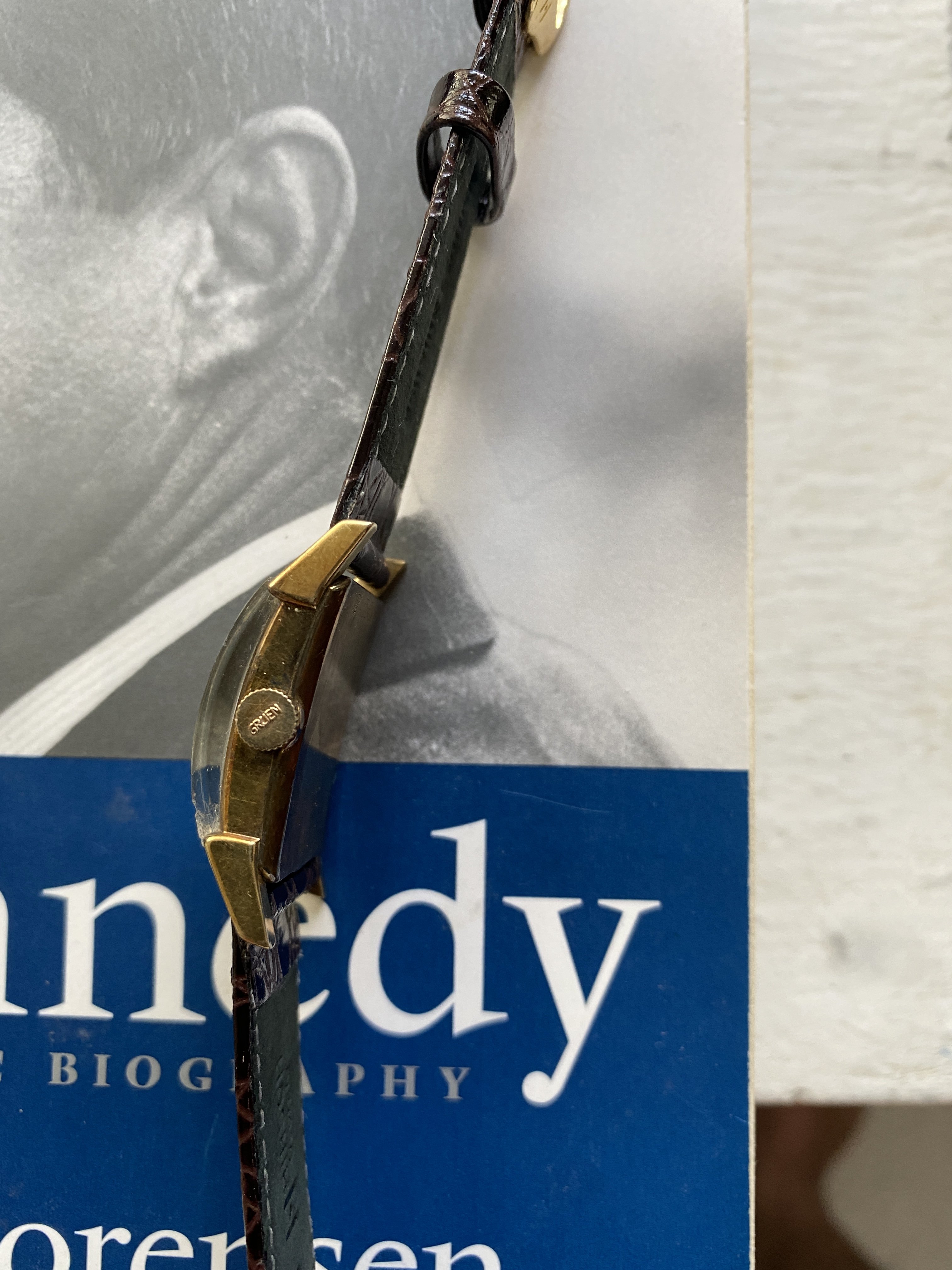 Case: The case is 10k gold filled. Over the years it seems to have tarnished. It looks like there may be a 1mm spot of wear through on the edge of the 4 o clock lug. There are light scratches.