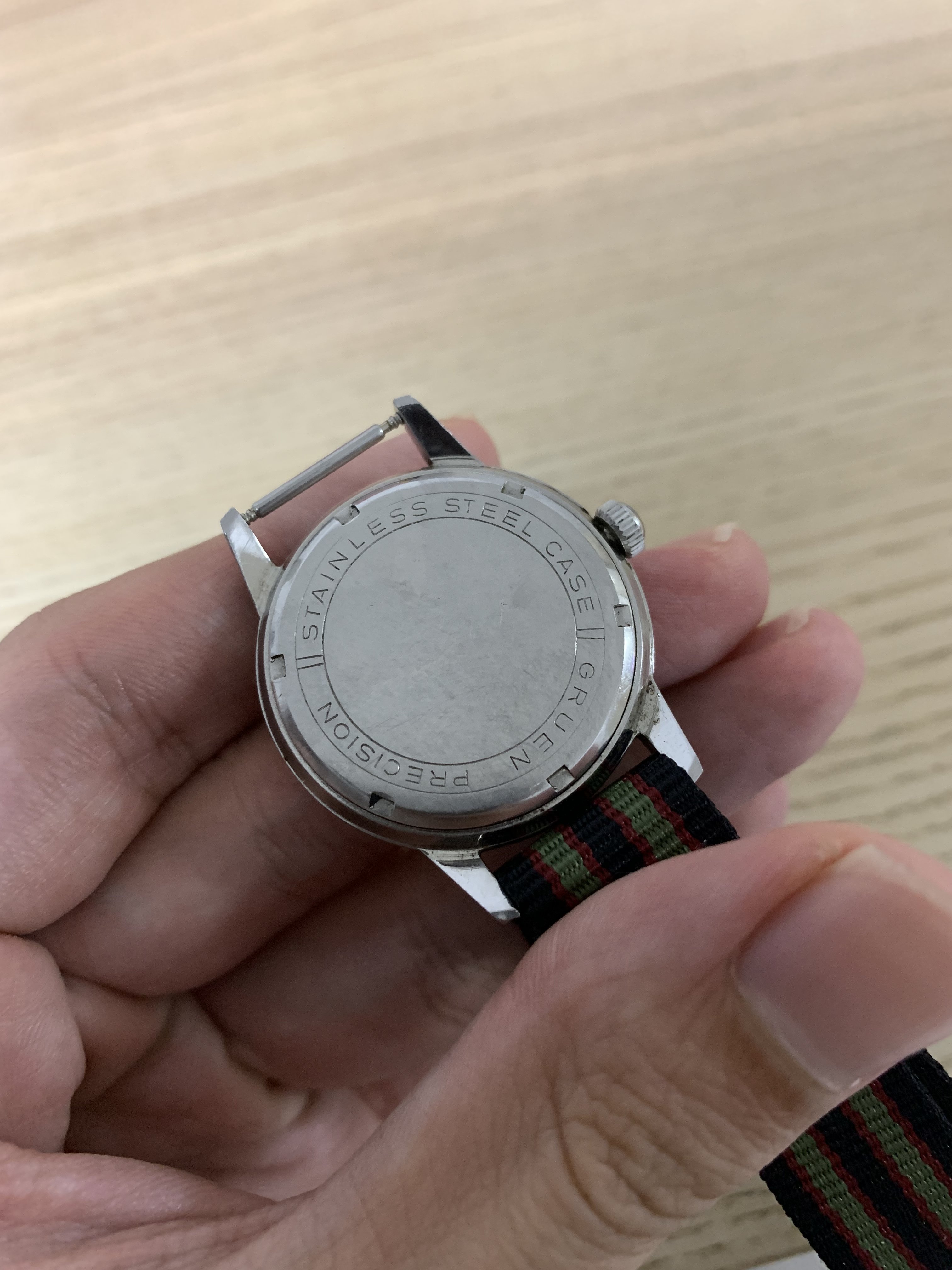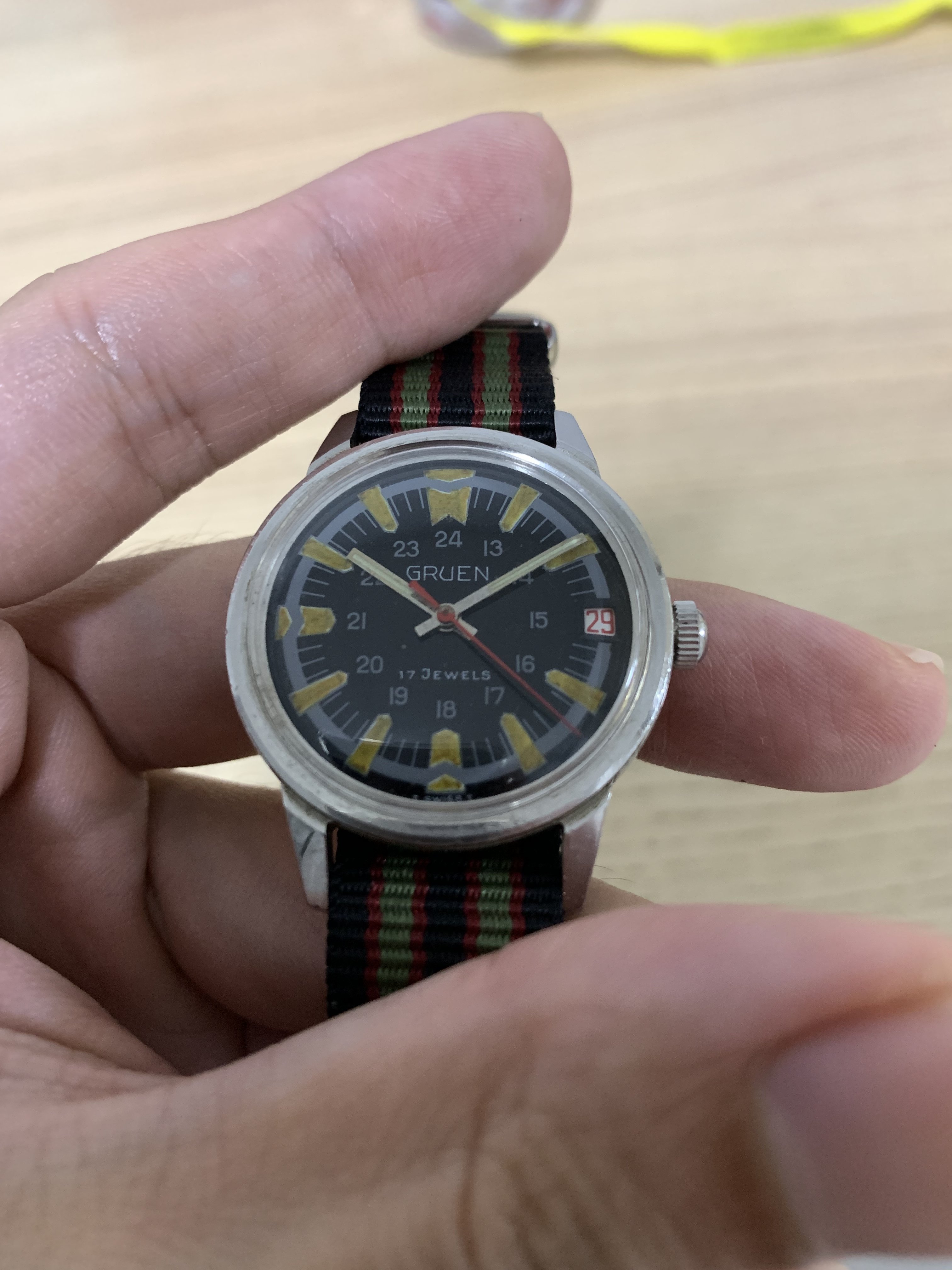 Posts 539 Likes 724 jerryct ·Aug 30, 2022 Another one on the chopping board. Gruen precision military dial. 33mm diameter 41mm lug to lug 16mm lug width Dial has a glossy finish but there are some fine cracks that is only seen under certain lighting condition. only for a very reasonable 100 usd.